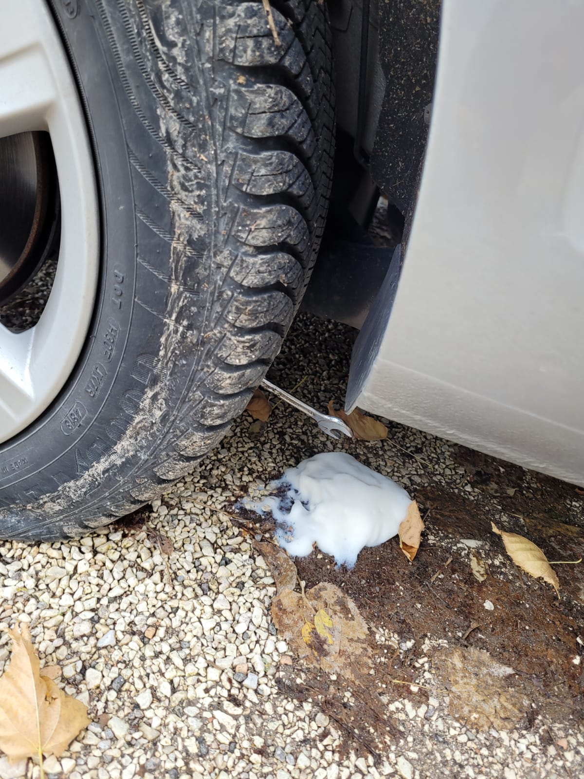 In un giorno di ferie possono capitare cose davvero strane. Io e Francesca andiamo da Maria a Pierosara a festeggiare il suo venticinquesimo compleanno a base di tartufo e funghi porcini. Poco prima di arrivare a destinazione, un rumore sinistro sotto la gomma posteriore destra ci impensierisce. Abbiamo bucato! A quel punto però è tardi, abbiamo fame e il pranzo ci aspetta. Quindi decidiamo di prenderla con filosofia e di non drammatizzare. Dopo pranzo, quando la gomma sarà totalmente sgonfia, la rimetteremo in sesto con la schiuma, come fanno tutti. Tornare a Jesi non sarà un problema. E così pranziamo, ce la godiamo, pensiamo a Zelda (la macchina) e non ci pensiamo, e poi usciamo per cercare di capire il da farsi. Agitiamo la bomboletta e spariamo la schiuma nello pneumatico. Ma diamine, non succede niente! Anzi la schiuma esce fuori allegramente da sotto. Spostiamo con cautela la macchina e ci accorgiamo con assoluta sorpresa che dentro la gomma c’è una chiave meccanica, di quelle che si utilizzano per avvitare e svitare dadi e bulloni.