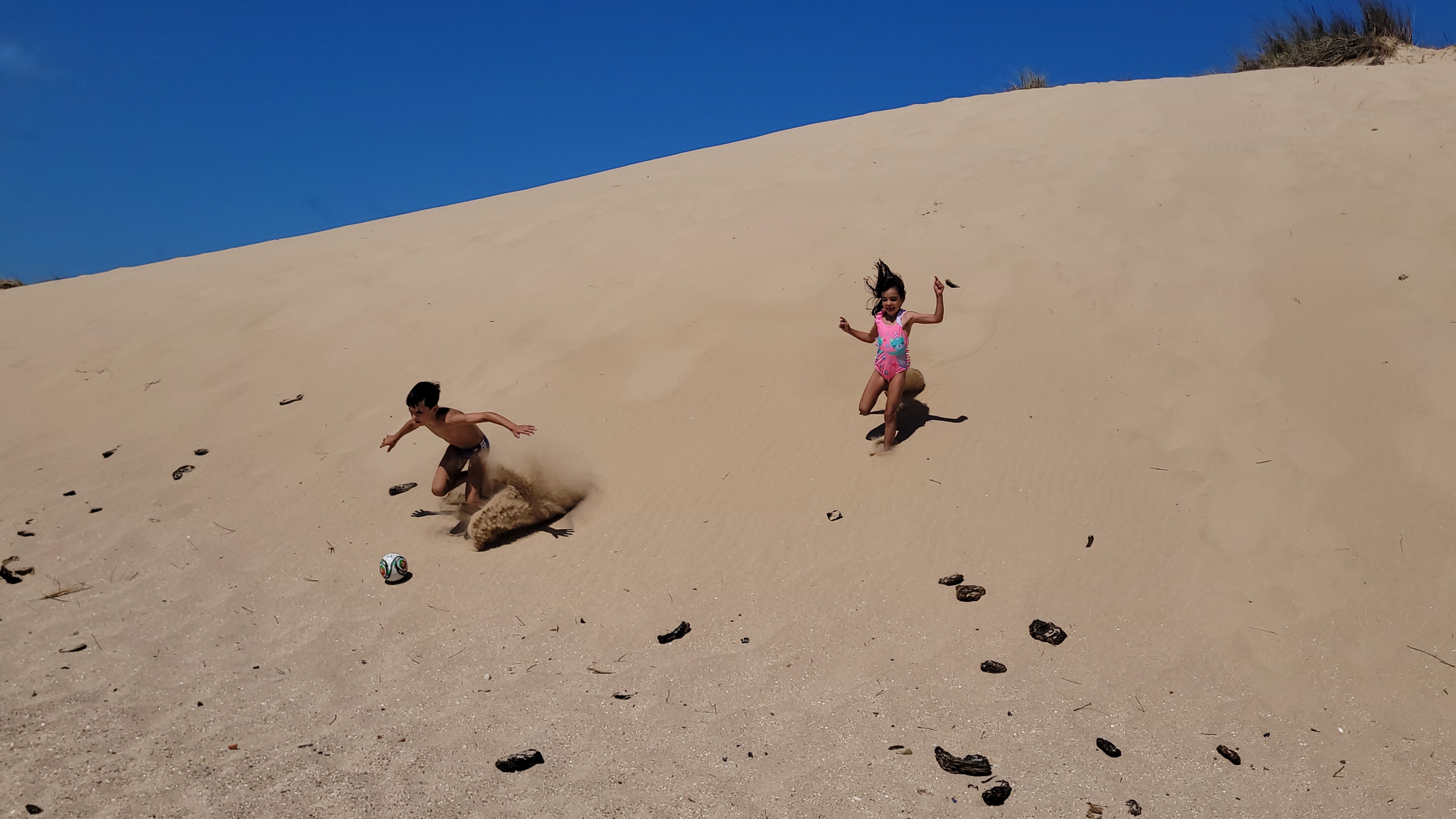 Poi persone e cani che vagano senza una direzione precisa, un po’ come il vento, bimbi che giocano e si rotolano, il blu intenso dell’Atlantico che quasi stordisce per la sua vastità. Il chiosco in cima al promontorio, in cui regna la felicità. Tutti ridono o sorridono, dai baristi agli avventori più o meno trasandati che si alternano a bancone alla rinfusa. Qui sembra non esistere alcuna forma d’ansia, qui non sembra esserci domani, è un oggi eterno, la cui consistenza, forse effimera, è dettata dal panorama che incanta e chiude chiunque dentro la bolla delle possibilità infinite. Nulla è precluso, forse nulla serve.