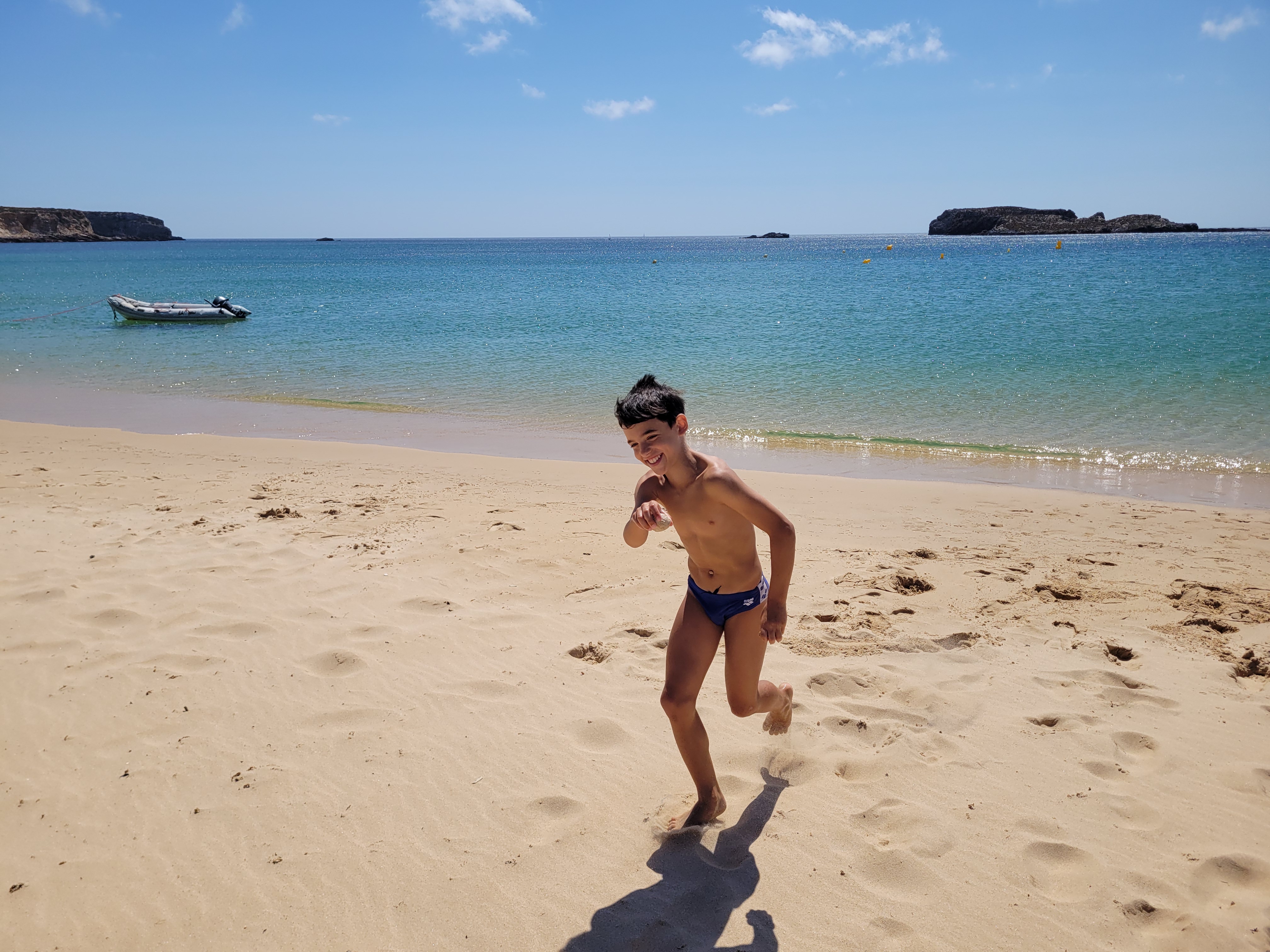 Mercoledì. Il gestore del b&b Andmar è un ragazzo gentilissimo e ci fermiamo spesso a fare due chiacchiere con lui. La colazione che propone è squisita, i prodotti sono freschi e variegati, la salsa guacamole è da urlo, e non manca una doggy bag da portare in spiaggia per pranzo. Per la prima mattinata in zona scegliamo due calette sotto Lagos, molto belle e ricche di passaggi da perlustrare.