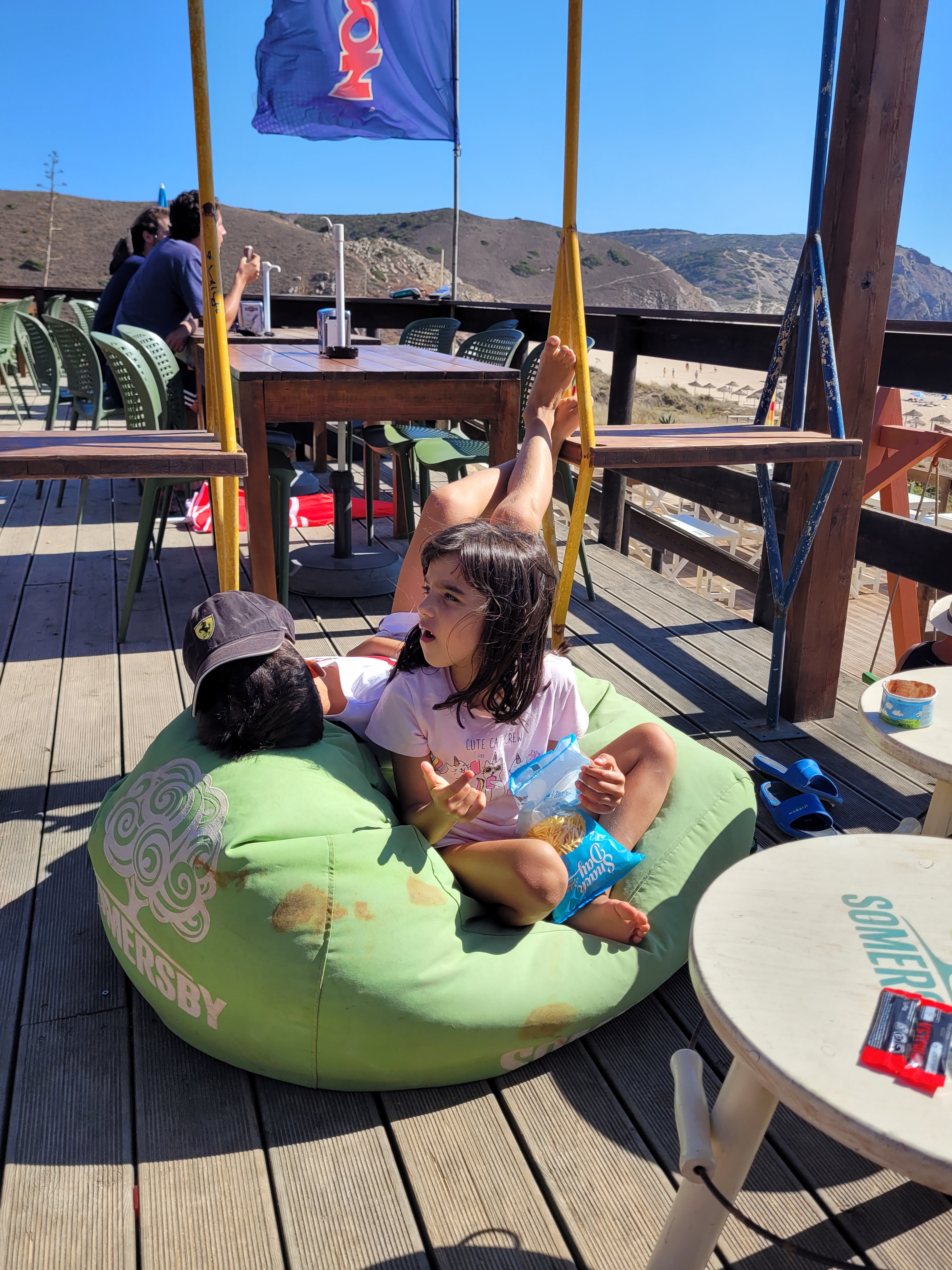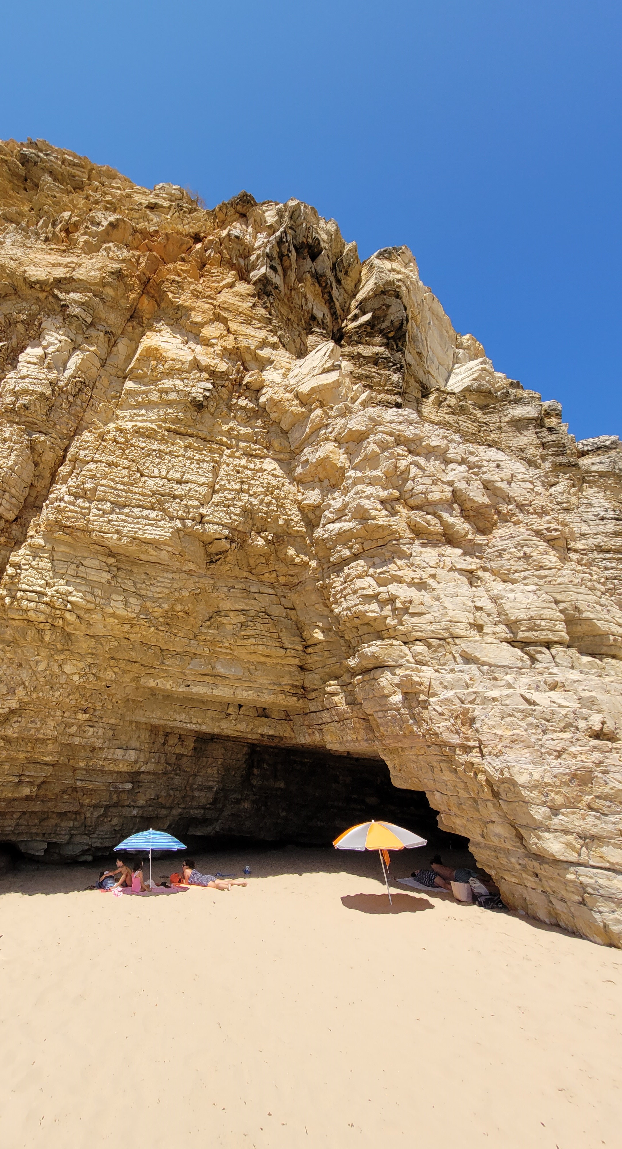 L’acqua è spesso freddissima, la temperatura atmosferica è godibile come del resto nel resto del Portogallo, ma qui il sole sembra stendersi e deflagrare sopra ogni cosa, fino a divorare in modo famelico ogni millimetro di superficie disponibile. Sole e vento spingono il viaggiatore a godersi un territorio a tratti ostile da punti di vista privilegiati, siano essi grotte, baracche, ristorantini, o caleidoscopici chiringuitos, che somigliano a visioni sciamaniche nel momento stesso in cui entrano nella dimensione dei ricordi.