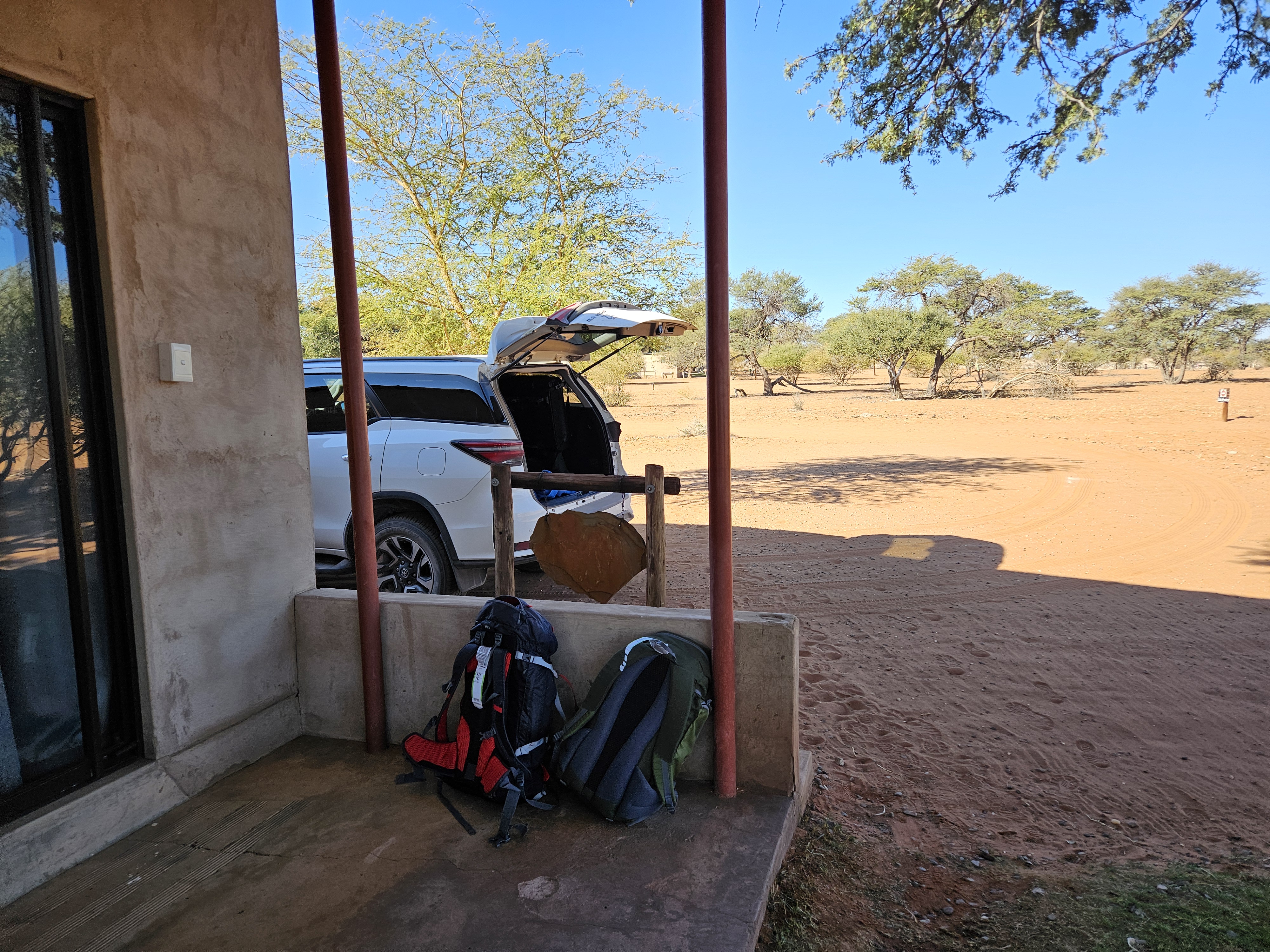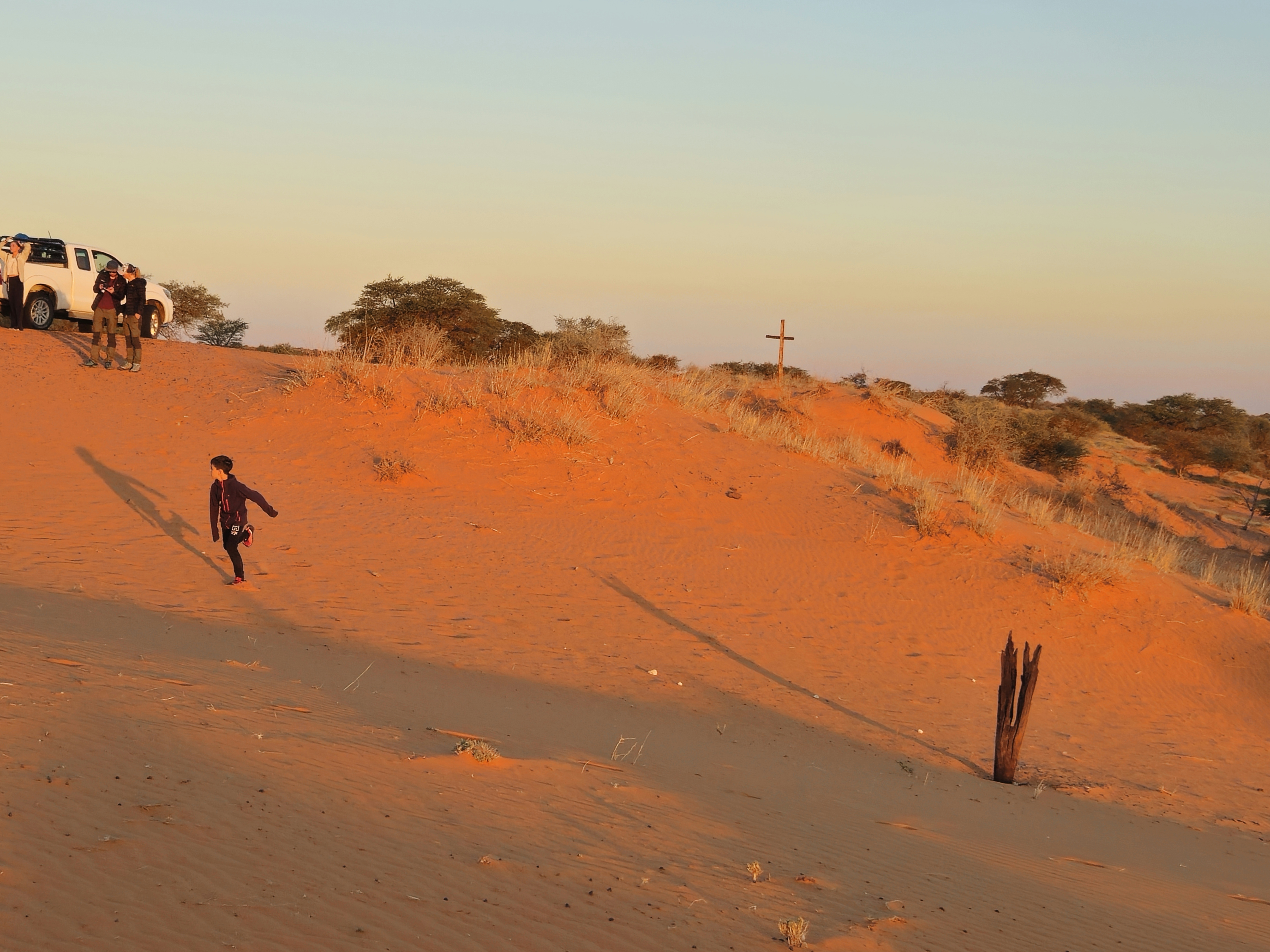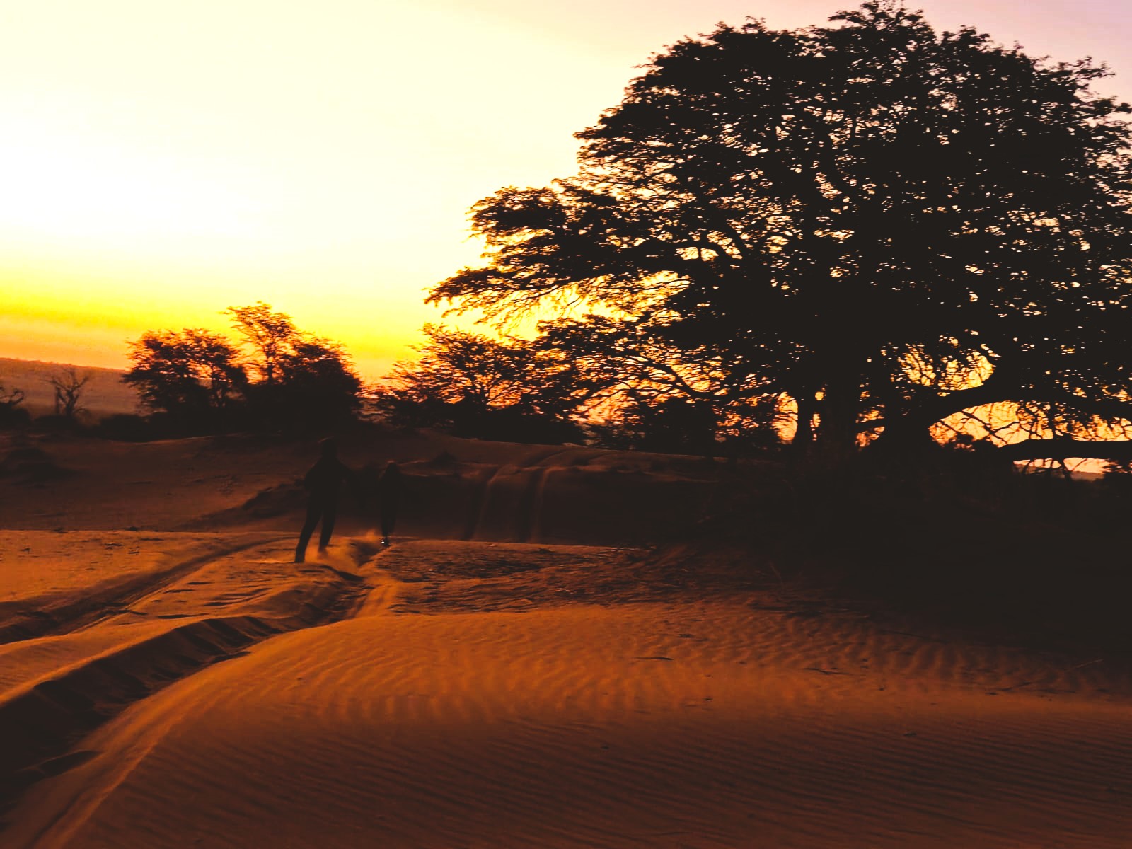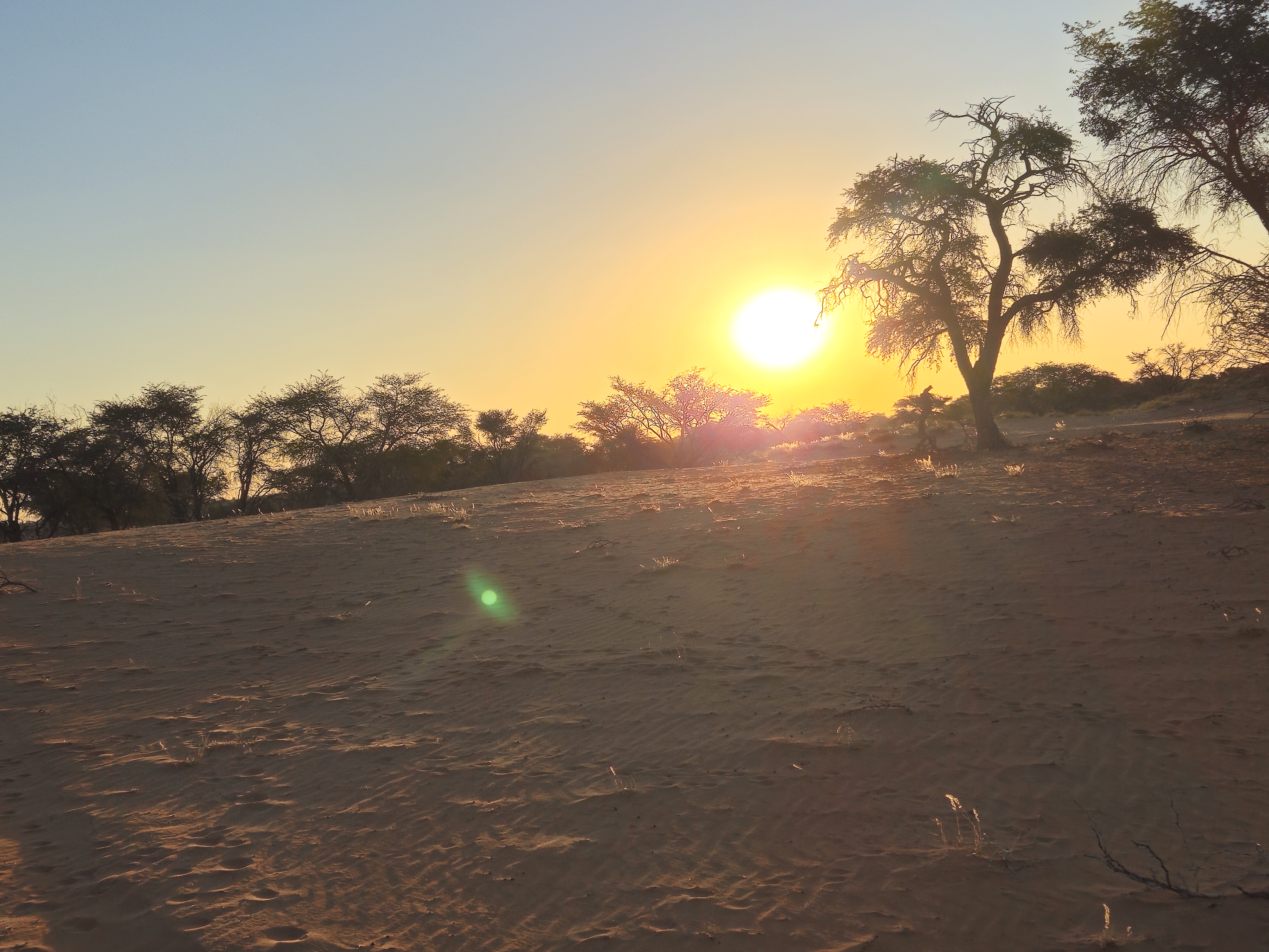 Una solare namibiana ci accoglie alla reception, ci indica il lodge, ci rifornisce di acqua e birra. Sistemiamo le nostre cose, ci rinfreschiamo, e io affondo nelle cavità più profonde dell’incoscienza, fino a perdermi in un sonno che è morte pro tempore, in un modo e in un mondo che mi rammenta la scena in cui uno dei protagonisti di Trainspotting viene inghiottito nel pavimento dopo un brutto viaggio. Il risveglio è altrettanto cinematografico: mezz’ora dopo, ma sembrano due giorni, uno dei miei mi scuote e mi dice: dobbiamo andare! E io mi vedo come Jim a LA nel film di Stone, quando Ray o chi per lui lo scuote dal sonno dicendogli: Jim, così perderai l’aereo! Non c’è nessun aereo, ma una jeep che alle 17 ci condurrà nel Kalahari.