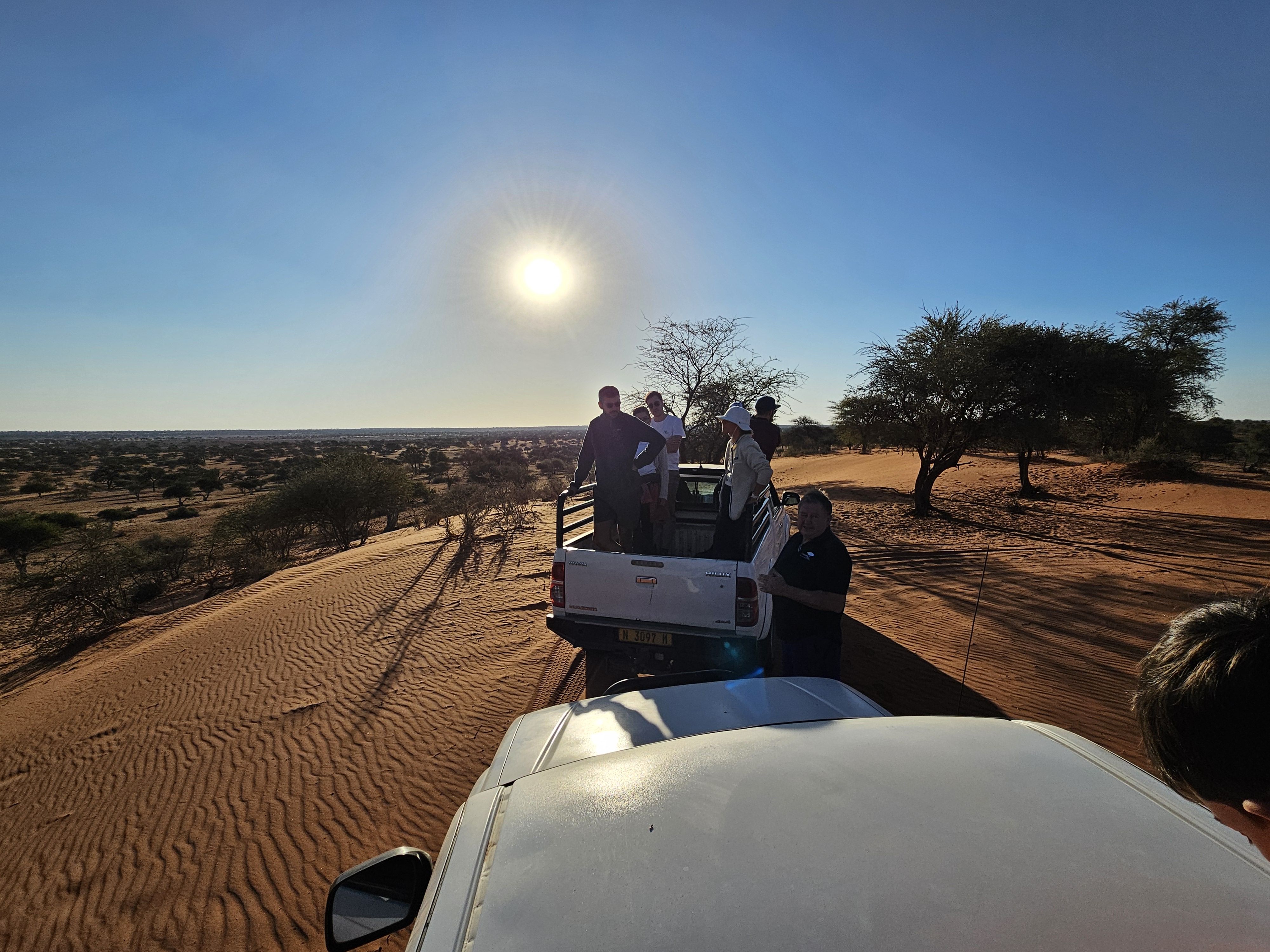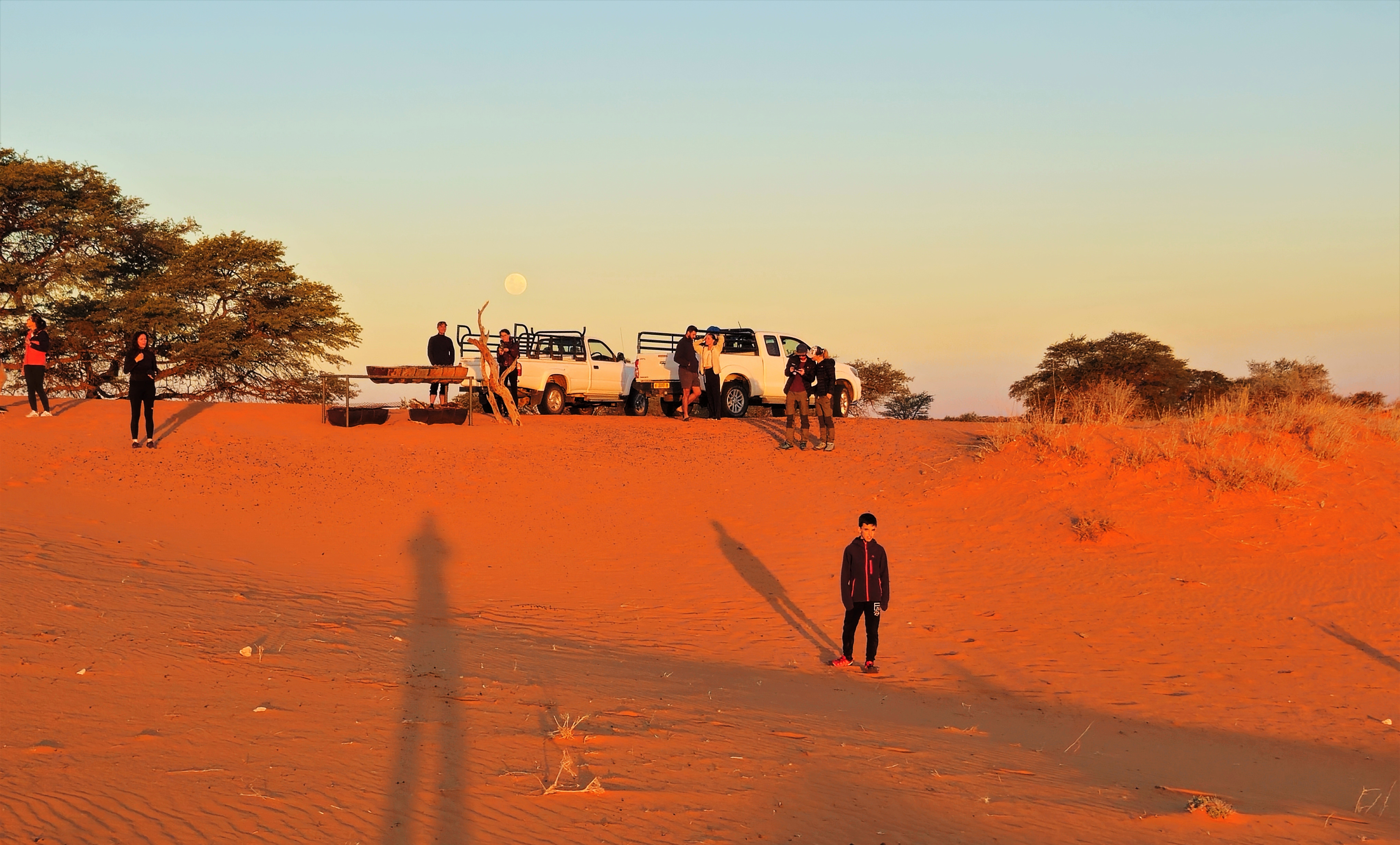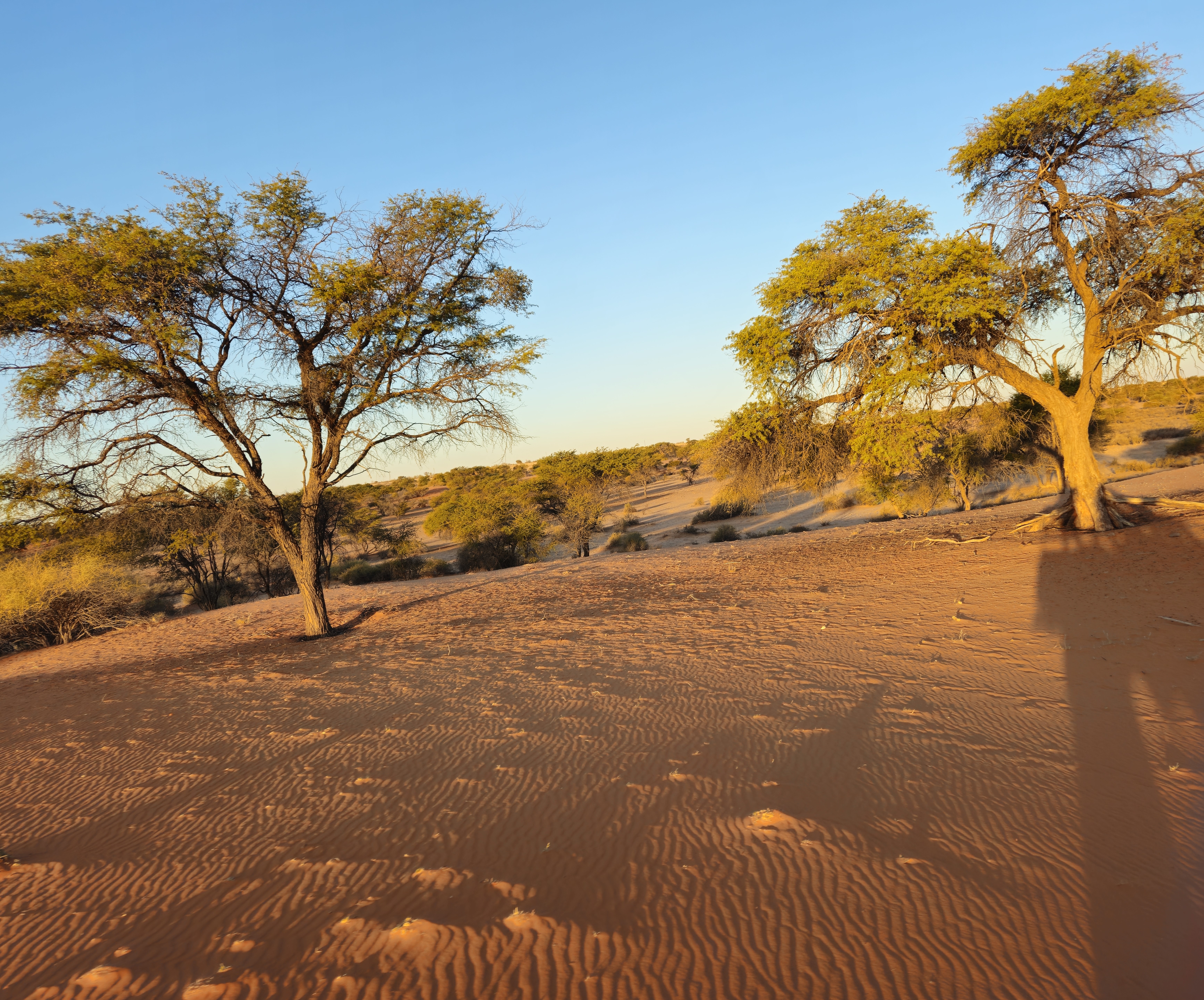 Una solare namibiana ci accoglie alla reception, ci indica il lodge, ci rifornisce di acqua e birra. Sistemiamo le nostre cose, ci rinfreschiamo, e io affondo nelle cavità più profonde dell’incoscienza, fino a perdermi in un sonno che è morte pro tempore, in un modo e in un mondo che mi rammenta la scena in cui uno dei protagonisti di Trainspotting viene inghiottito nel pavimento dopo un brutto viaggio. Il risveglio è altrettanto cinematografico: mezz’ora dopo, ma sembrano due giorni, uno dei miei mi scuote e mi dice: dobbiamo andare! E io mi vedo come Jim a LA nel film di Stone, quando Ray o chi per lui lo scuote dal sonno dicendogli: Jim, così perderai l’aereo! Non c’è nessun aereo, ma una jeep che alle 17 ci condurrà nel Kalahari.