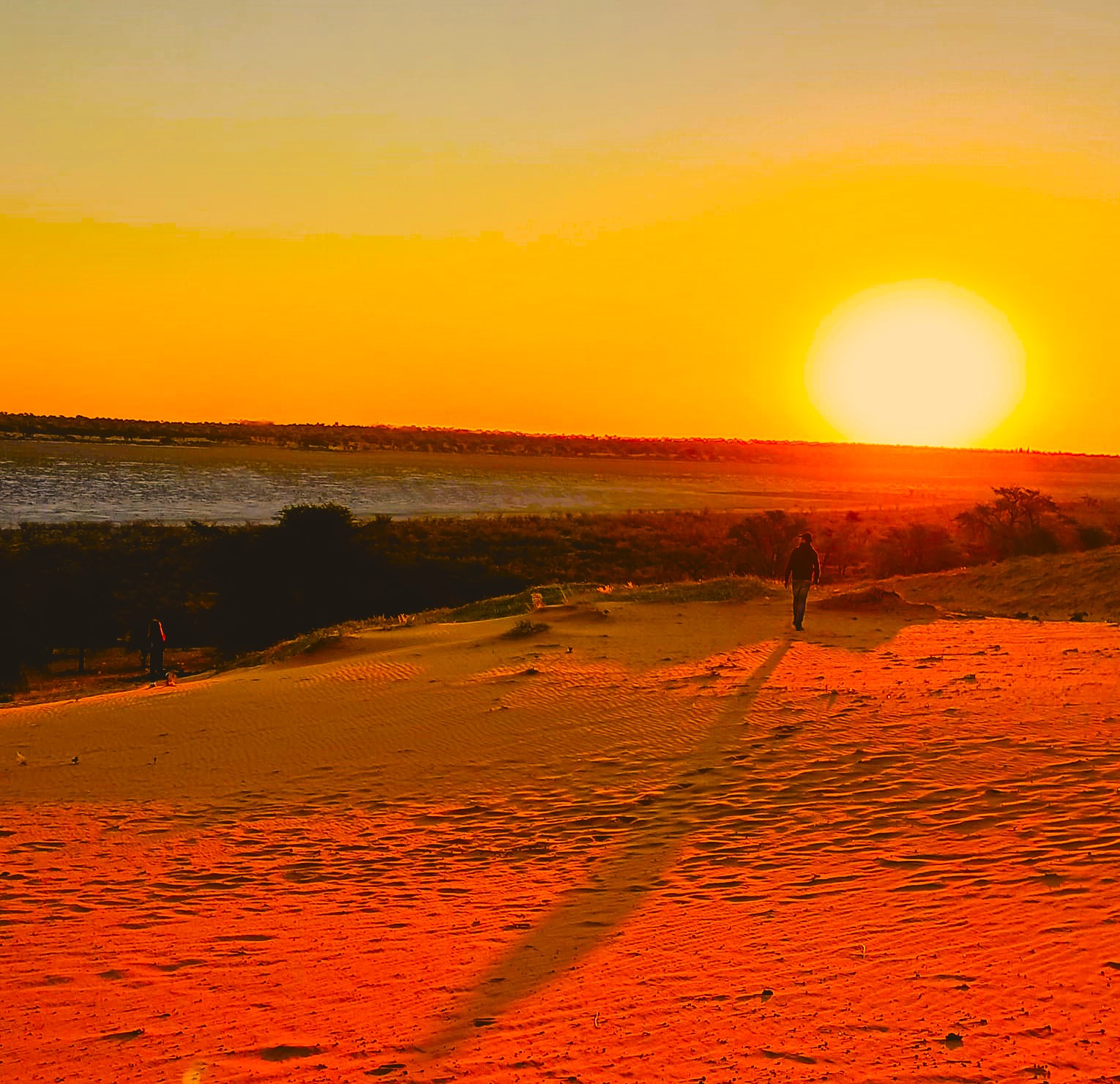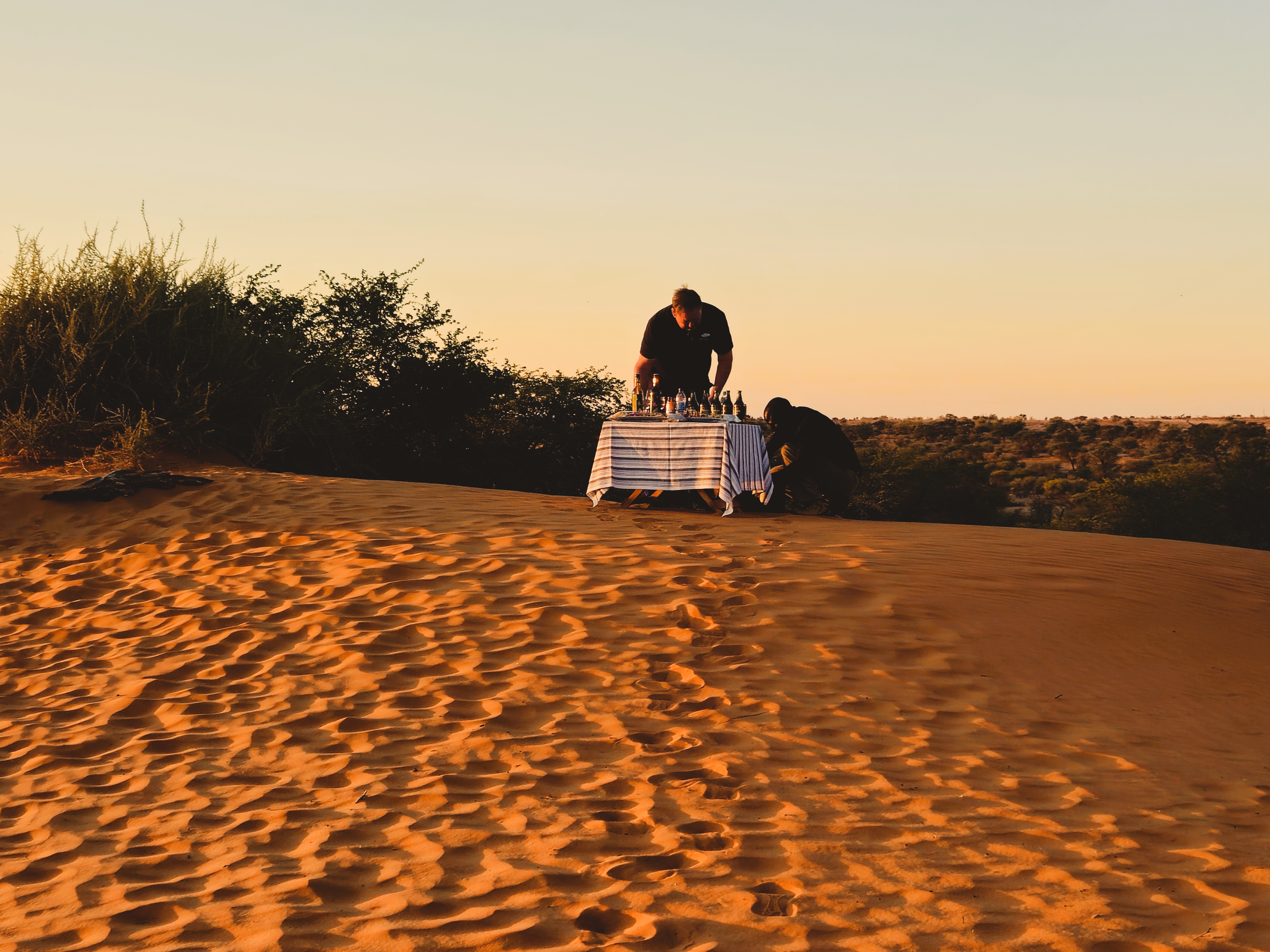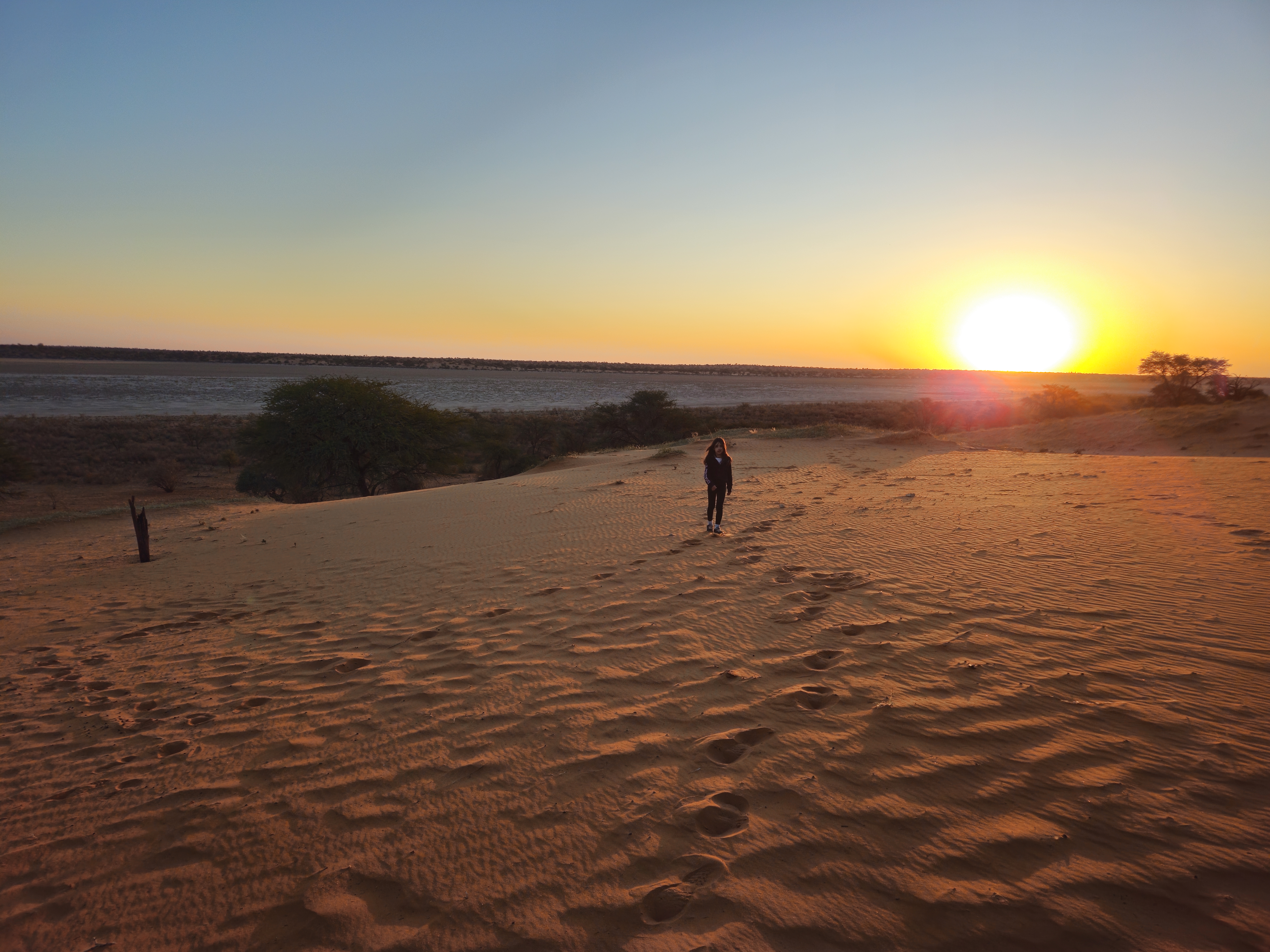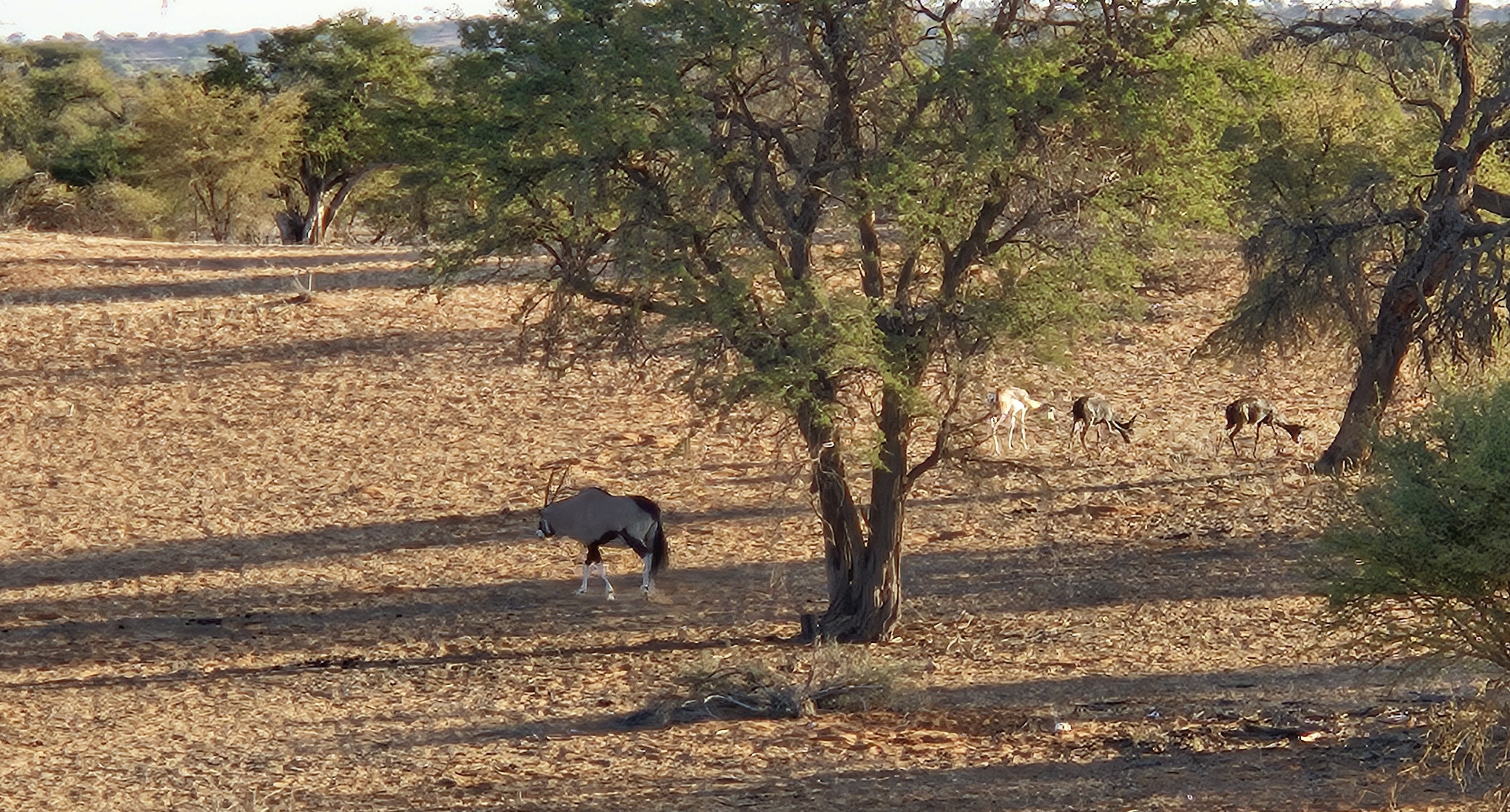 Una solare namibiana ci accoglie alla reception, ci indica il lodge, ci rifornisce di acqua e birra. Sistemiamo le nostre cose, ci rinfreschiamo, e io affondo nelle cavità più profonde dell’incoscienza, fino a perdermi in un sonno che è morte pro tempore, in un modo e in un mondo che mi rammenta la scena in cui uno dei protagonisti di Trainspotting viene inghiottito nel pavimento dopo un brutto viaggio. Il risveglio è altrettanto cinematografico: mezz’ora dopo, ma sembrano due giorni, uno dei miei mi scuote e mi dice: dobbiamo andare! E io mi vedo come Jim a LA nel film di Stone, quando Ray o chi per lui lo scuote dal sonno dicendogli: Jim, così perderai l’aereo! Non c’è nessun aereo, ma una jeep che alle 17 ci condurrà nel Kalahari.