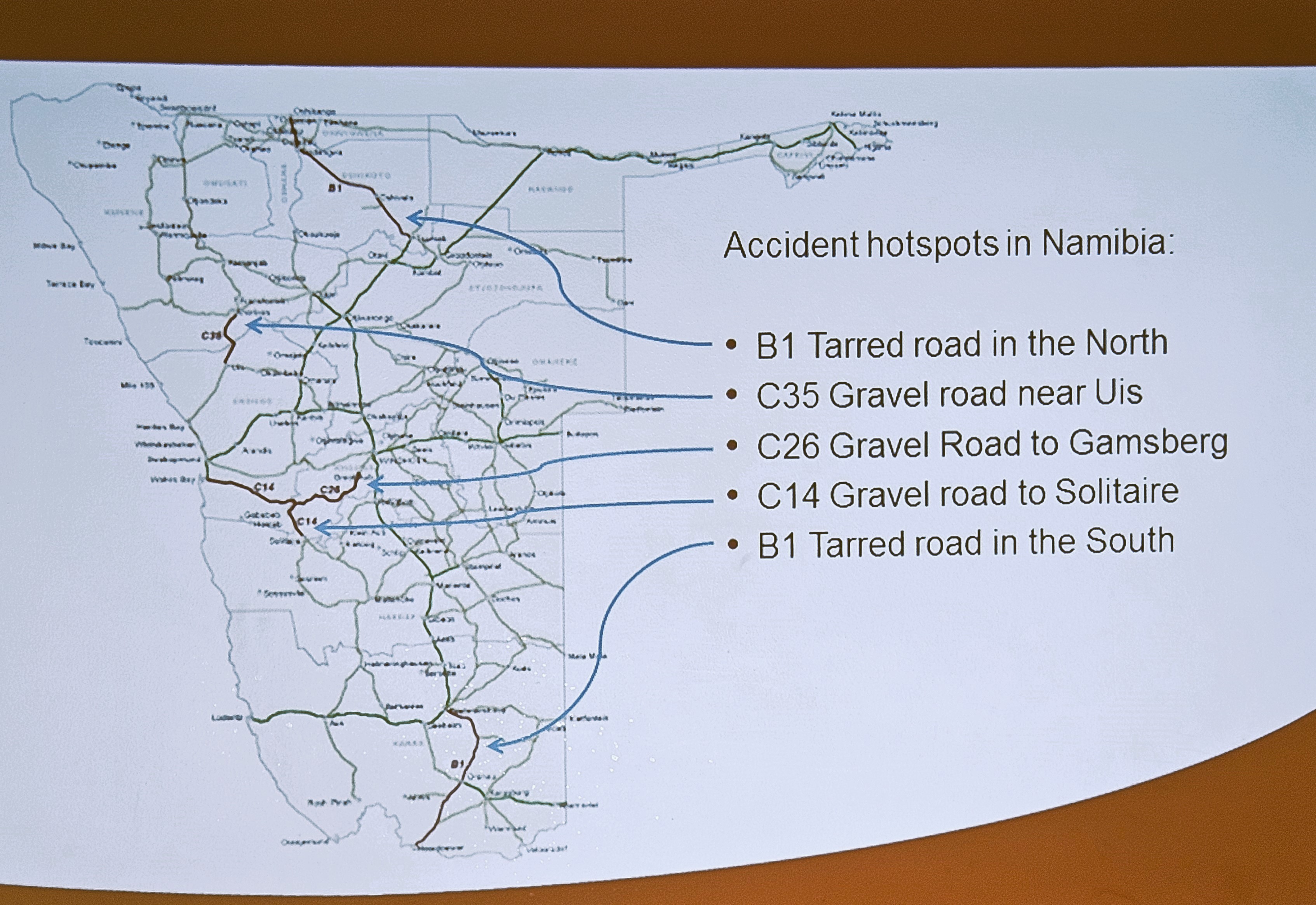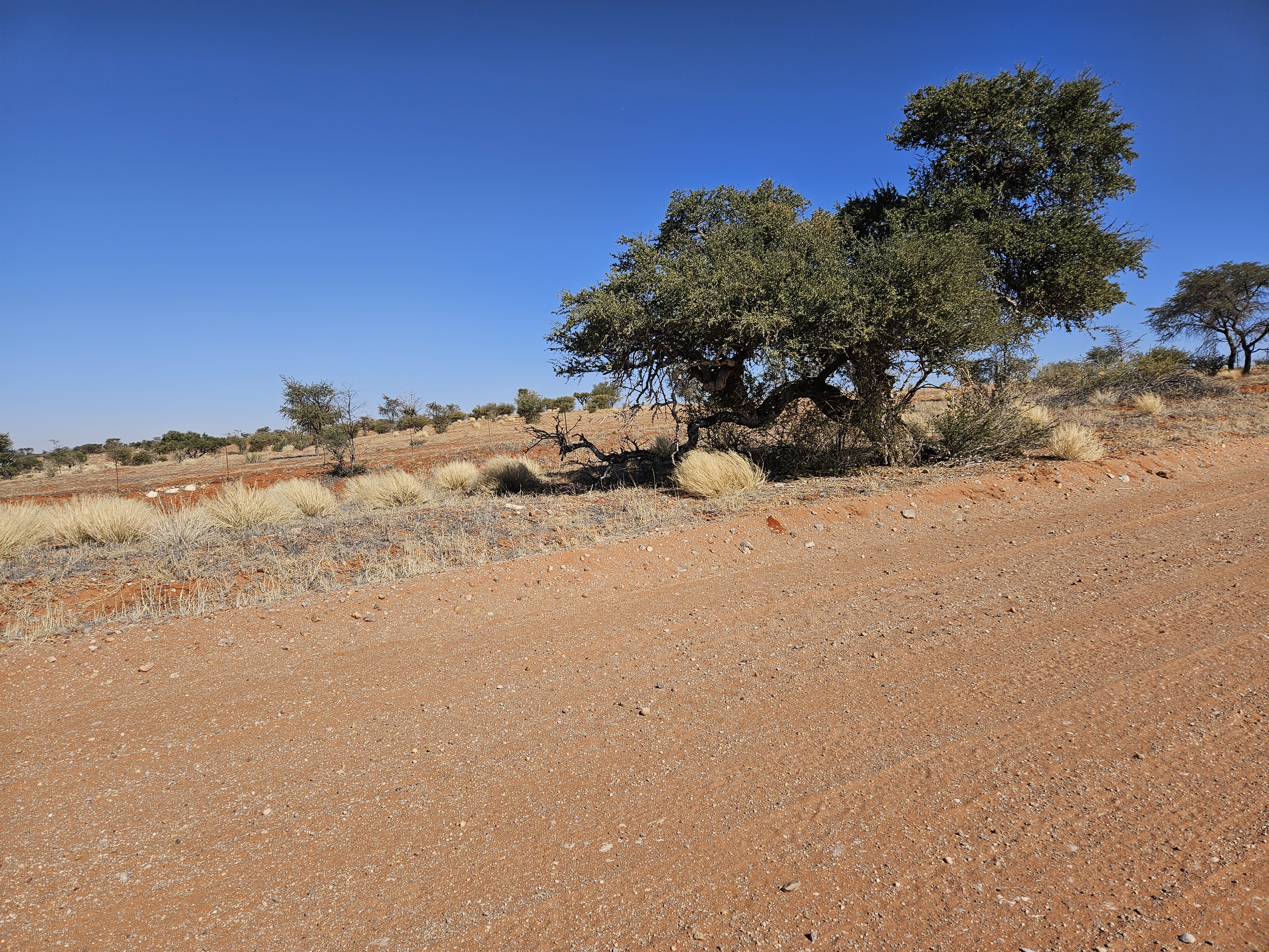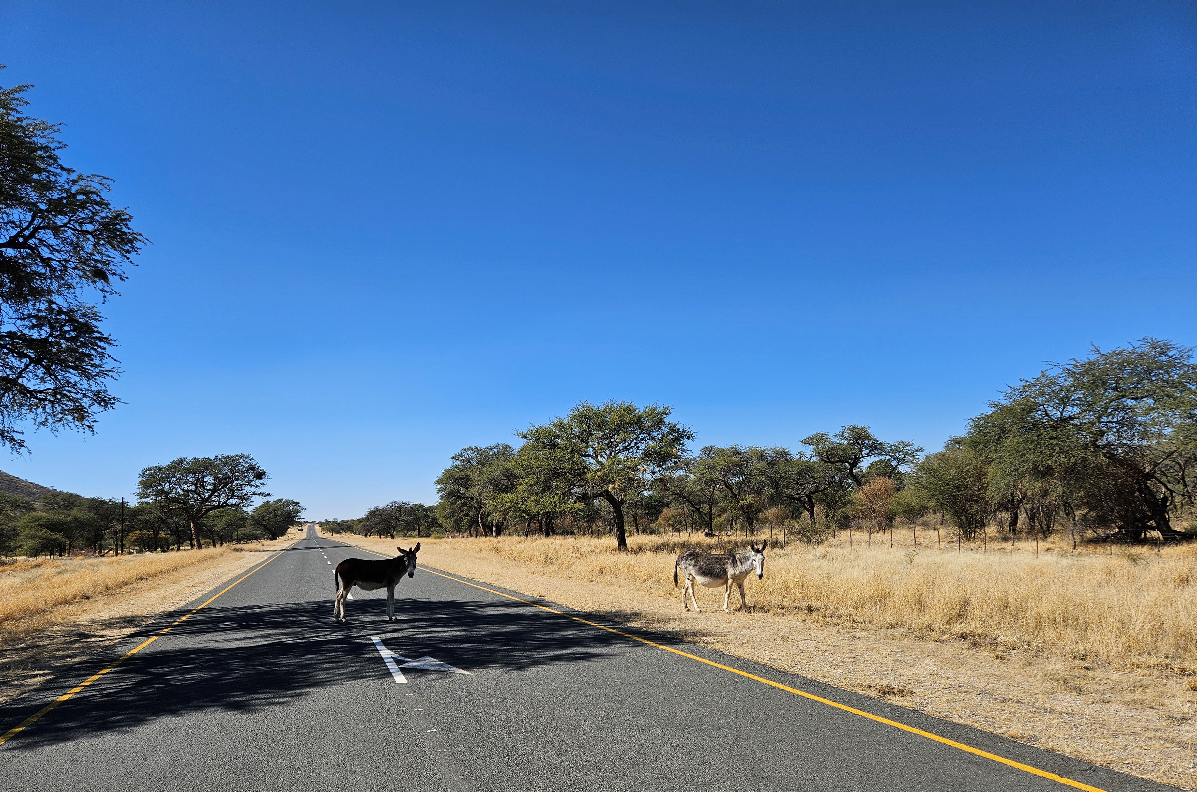 Questo approccio soft alla Namibia, studiato per evitare traumi il primo giorno, subisce una battuta d’arresto imprevista dopo pochi km. Premetto che utilizziamo Google map con le mappe off line, scaricate giorni prima sul mio smartphone. In questa declinazione, la app funziona bene comunque, ma è prudente evitare deviazioni consistenti. Ebbene, Francesca nota che il navigatore ci suggerisce un percorso alternativo: si tratta di svoltare prima di Windhoek, per la C23, con un risparmio netto di oltre un’ora sul tempo di percorrenza previsto. Non sono d’accordo, e lo ribadisco con forza due volte, per i motivi già espressi. Ma Franci si impunta, non vuole sentire ragioni, siamo stanchi e un’ora in meno di strada è un vantaggio da sfruttare. Così, quando arriviamo alla svolta e vediamo che la strada è asfaltata, cedo ma con preoccupazione, perché una C può essere insidiosa al battesimo. La strada procede regolare per circa 45 minuti, finchè non deviamo brevemente su una strada di terra per fare rifornimento d’acqua.