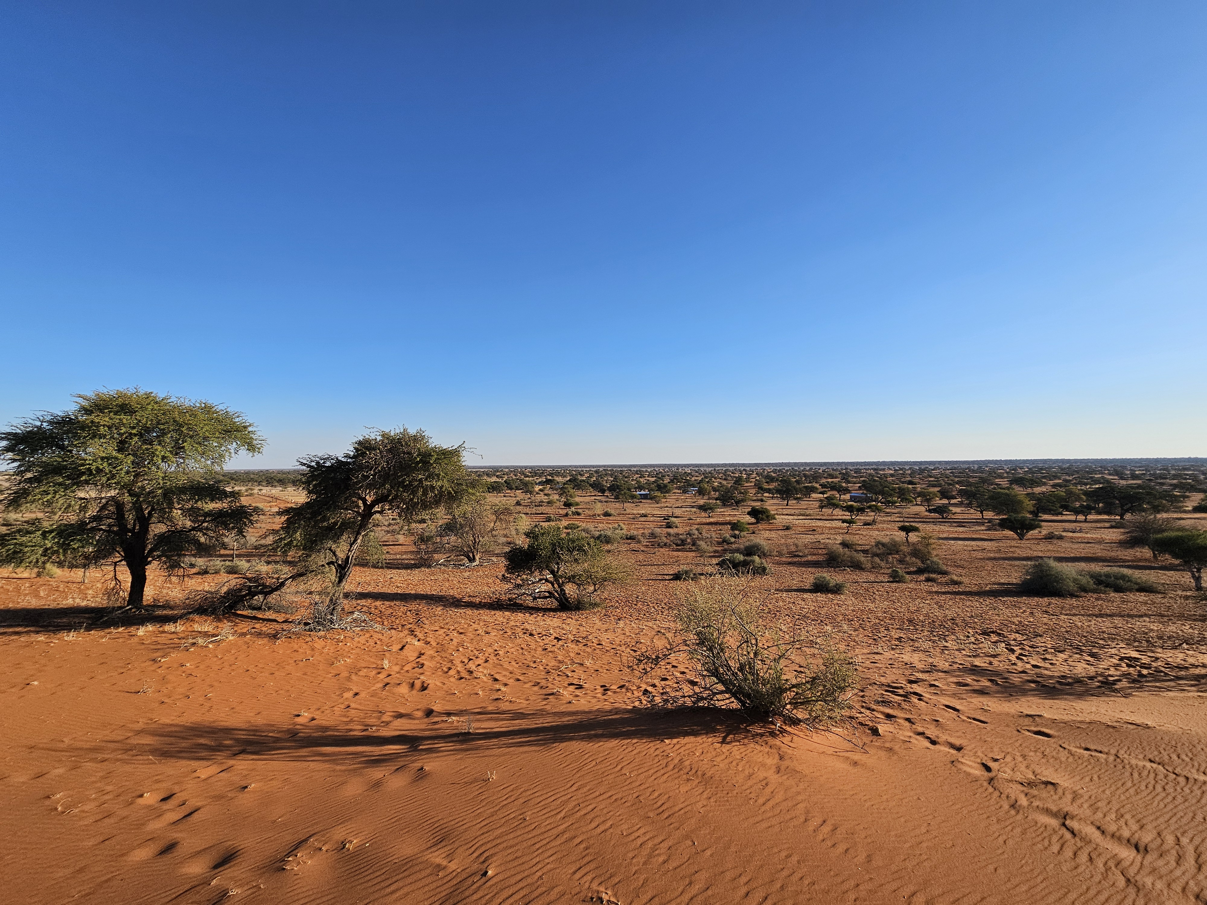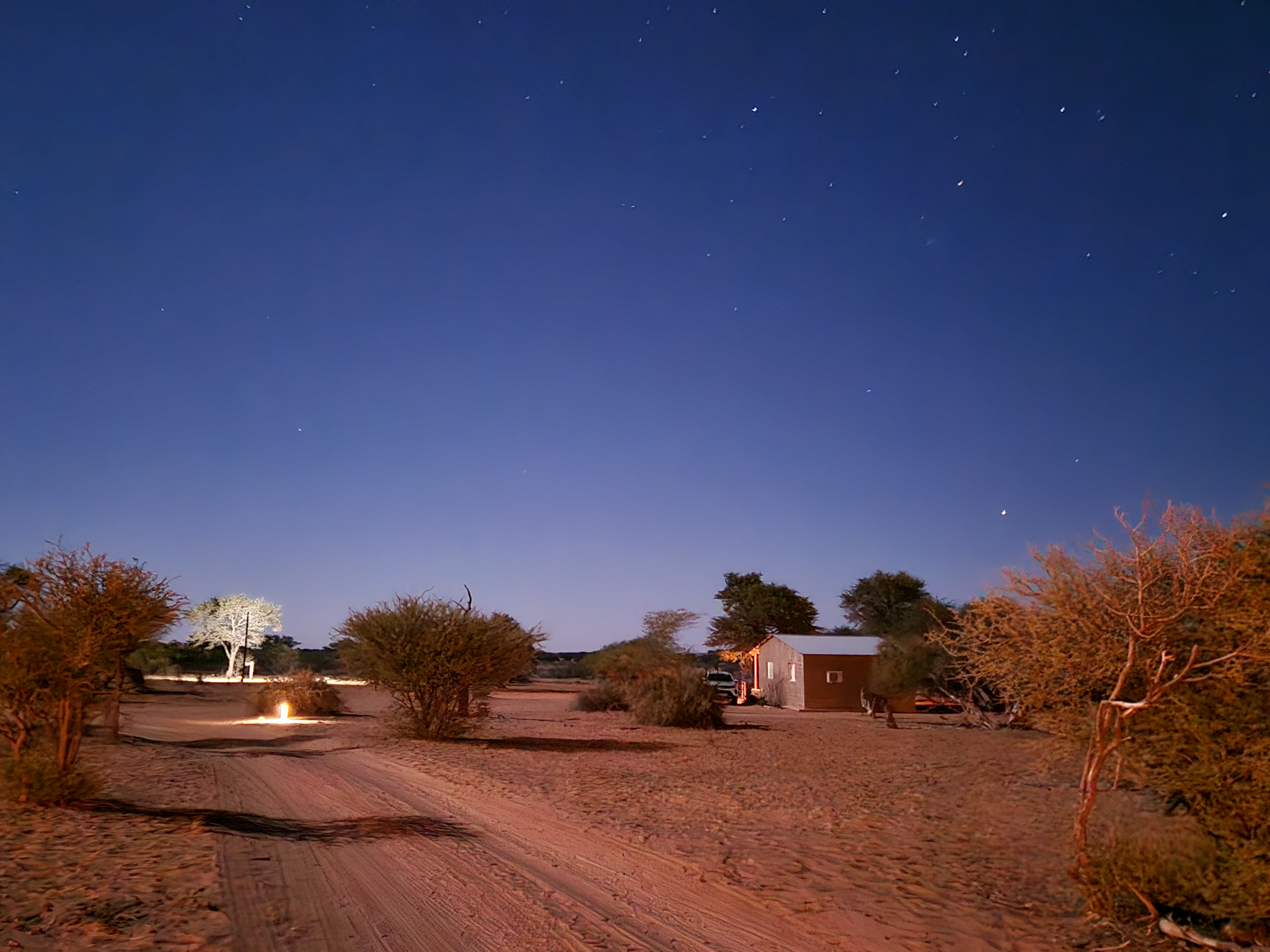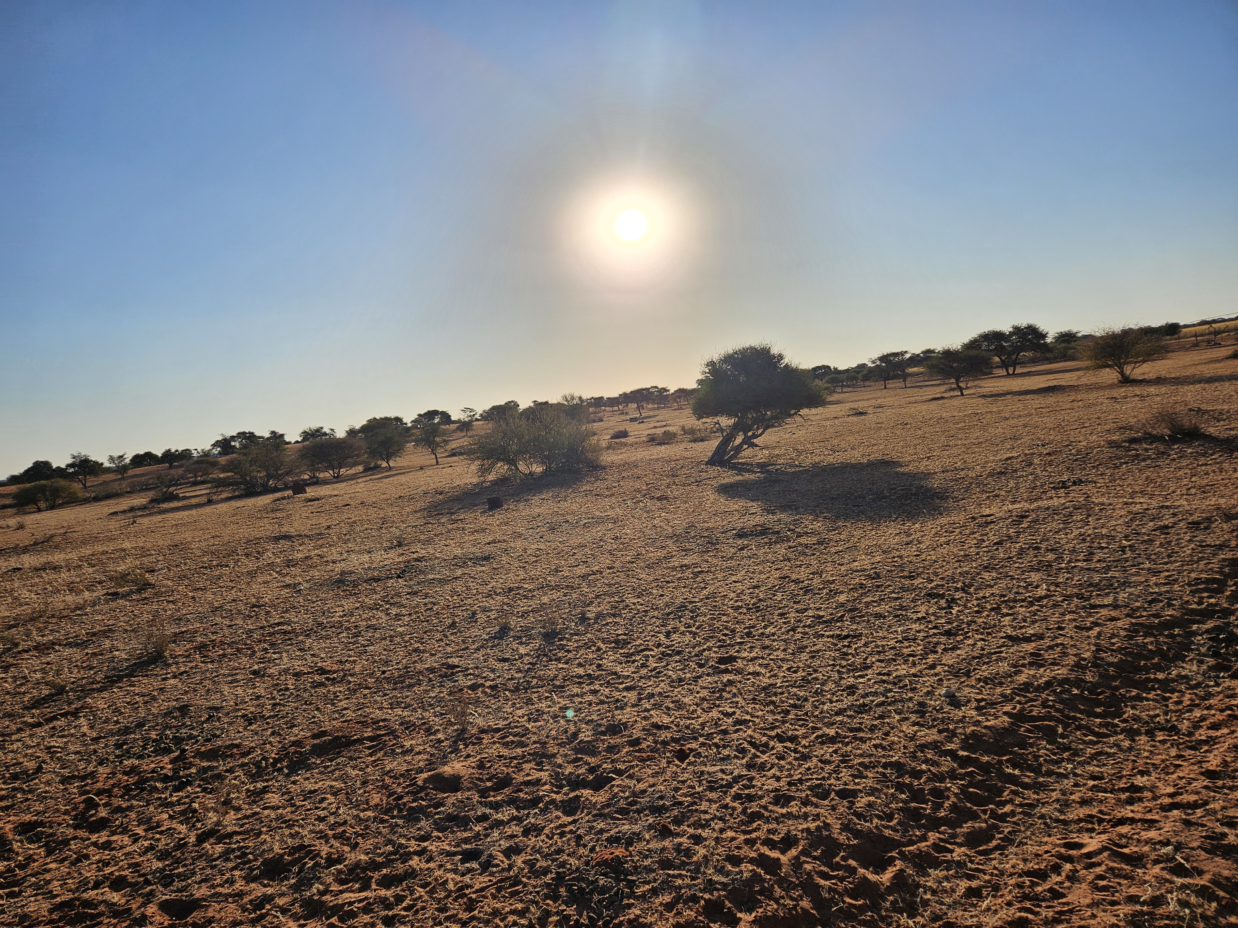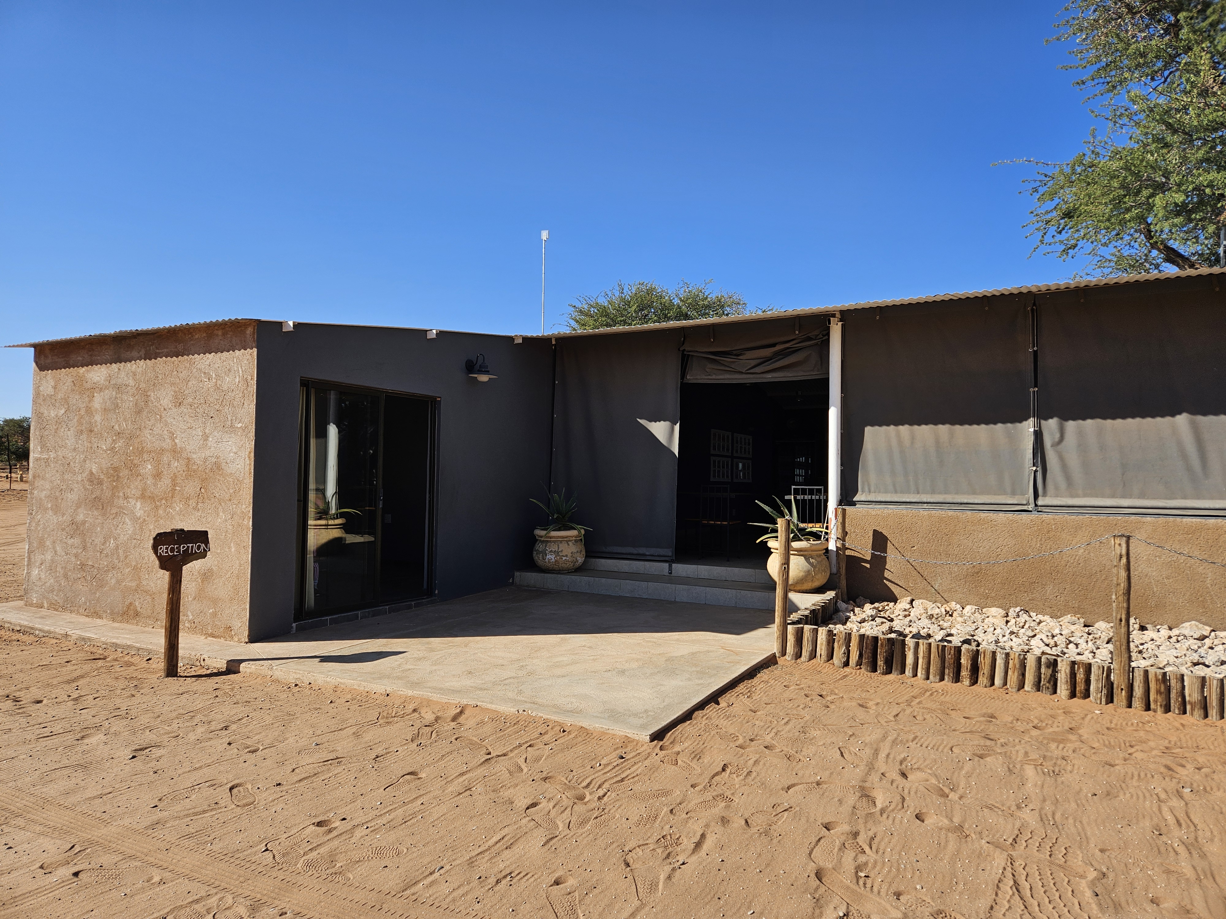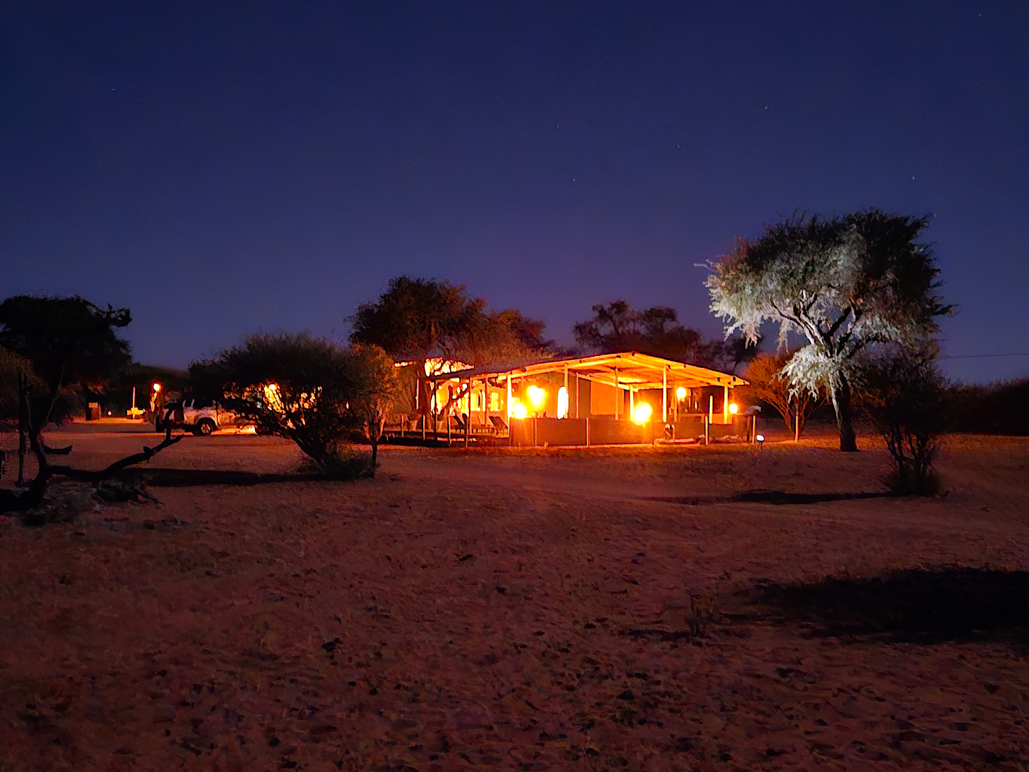 Arriviamo quando sono le 15e30, con un paio d’ore di ritardo, e in un istante tutto è calma e quiete, come al termine di una poderosa tormenta. Ci rassereniamo, facciamo pace (facciamo sempre pace), solleviamo una sbarra ed entriamo nella Janssen Kalahari Guest Farm come fosse il nostro ranch, nel modo che mi è spesso capitato di sognare a bordo di un libro che mi ha spinto a veleggiare al confine fra Montana e Wyoming, o più verosimilmente -in tal caso- fra Arizona e New Mexico. Come ogni struttura che ci ospiterà in terra selvaggia, anche questa è pressochè invisibile ad occhio nudo, tanto è immersa nel paesaggio. La intuiamo gradualmente, fra piccole dune e scalcagnate insegne di legno. Scesi dall’auto possiamo avvertire il silenzio, profondo come il deserto che digrada all’orizzonte. Qui il tempo sembra rallentare improvvisamente, o cambiare direzione e girarti intorno, una sensazione frequente in queste lande desolate. Qui il rapporto fra spazio e tempo è in certo senso tangibile.