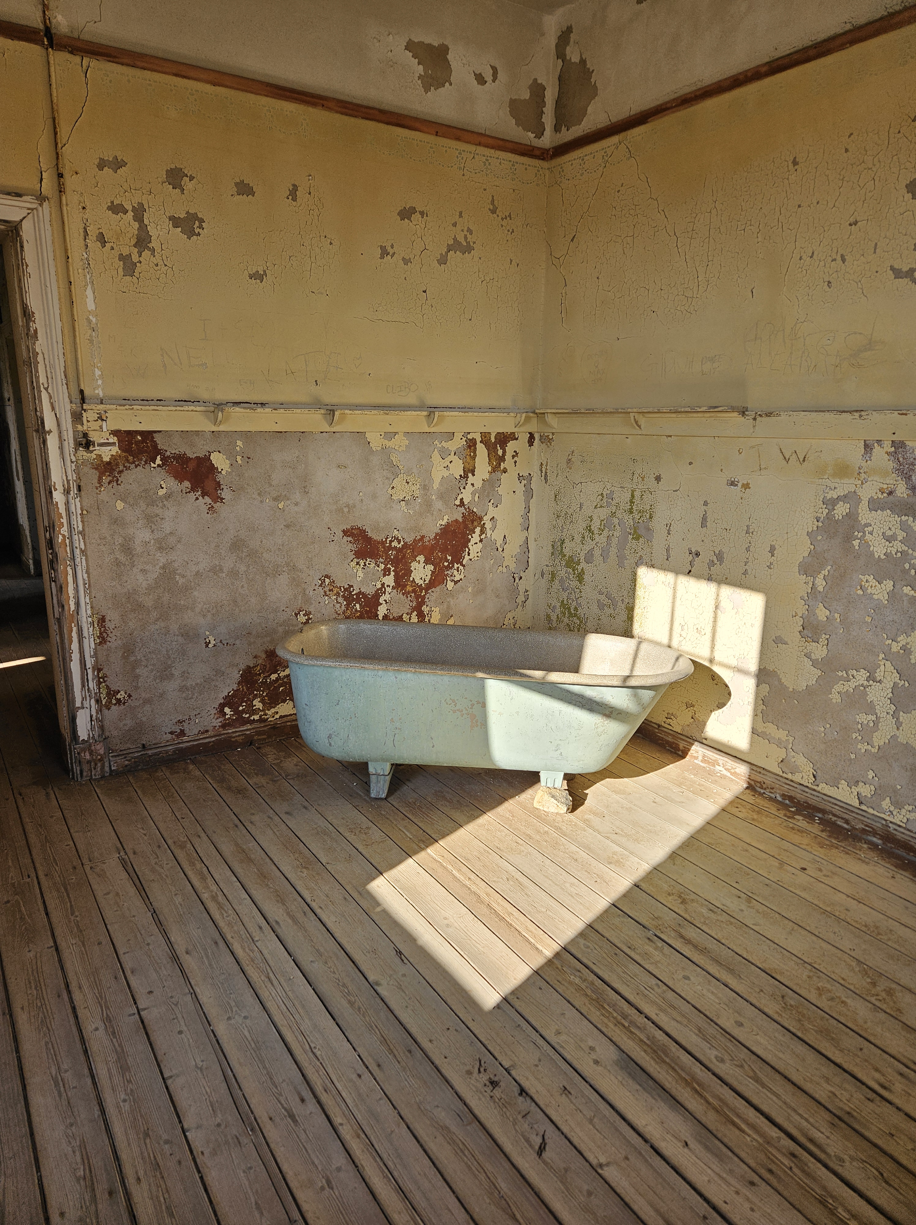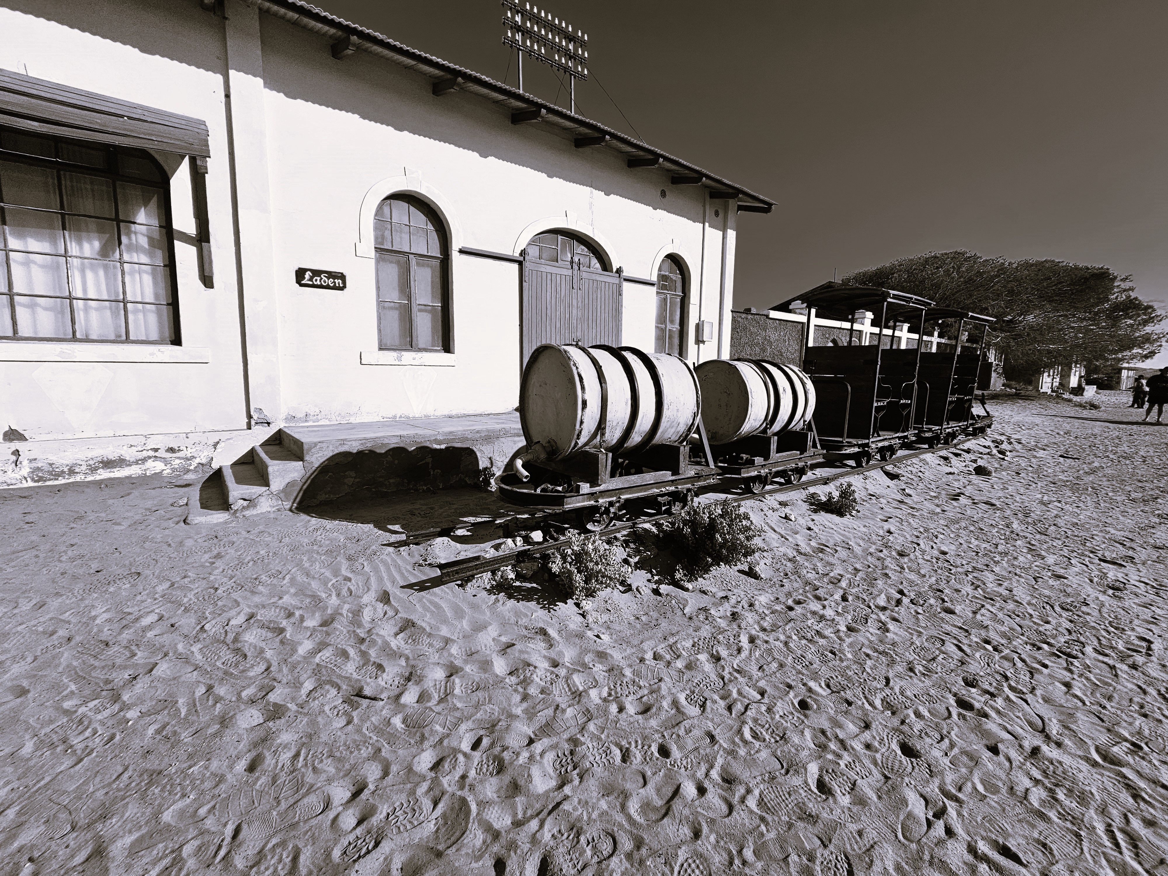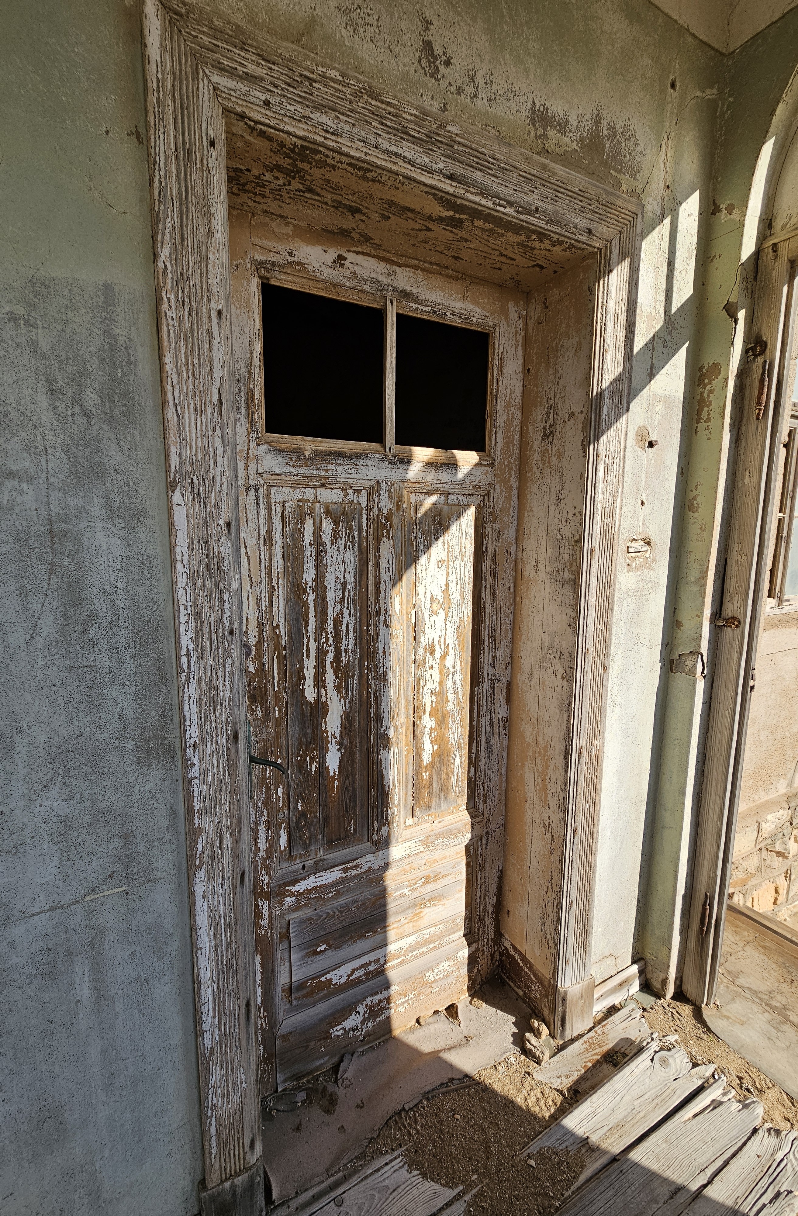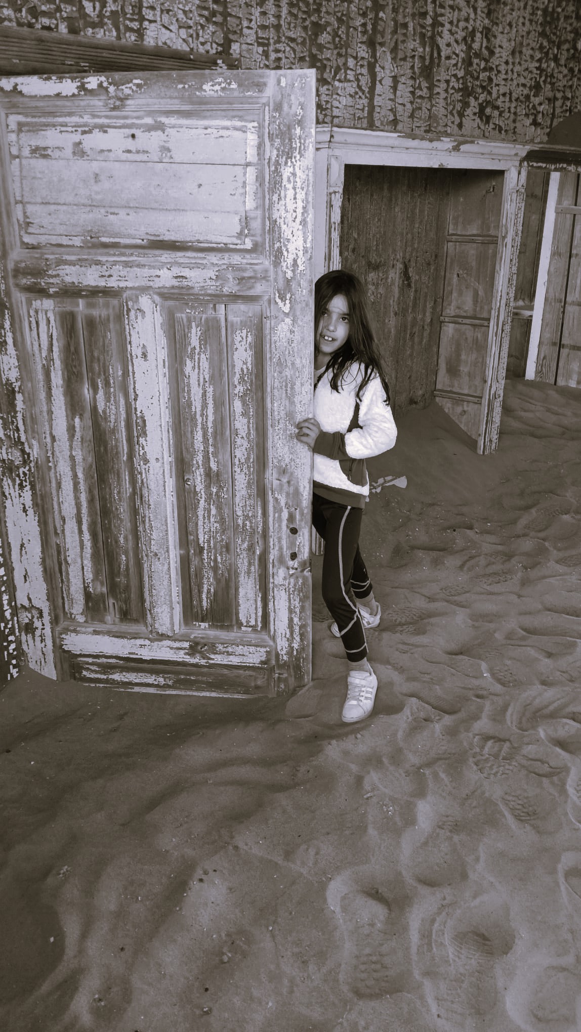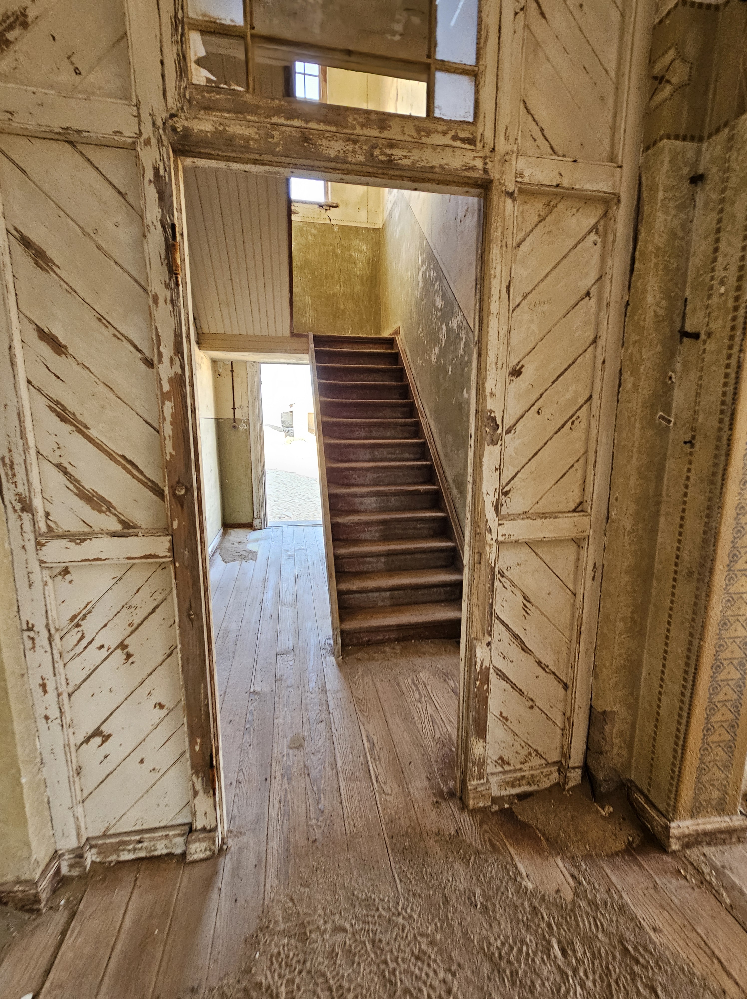 Ci dirigiamo prima verso le dune più alte, le Beverly Hills di Kolmanskop, dove vivevano il direttore, il contabile, l’architetto Herr Ziegler, l’insegnante (l’inflessibile signorina Hussmann), il Quartiermastro, un sottufficiale incaricato degli approvvigionamenti, e l’ingegnere minerario Kolle. Sembra impossibile che qui, all’inizio del 1900, vivessero a un certo punto fra le 2000 e le 3000 persone, eppure è così.