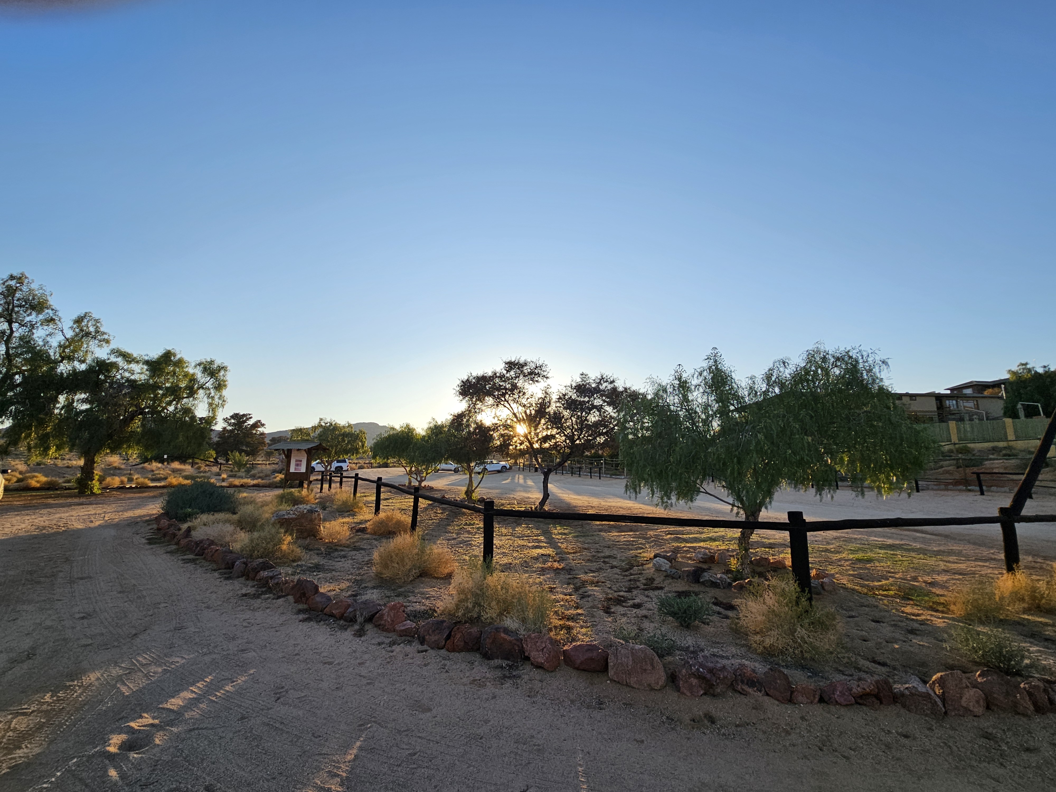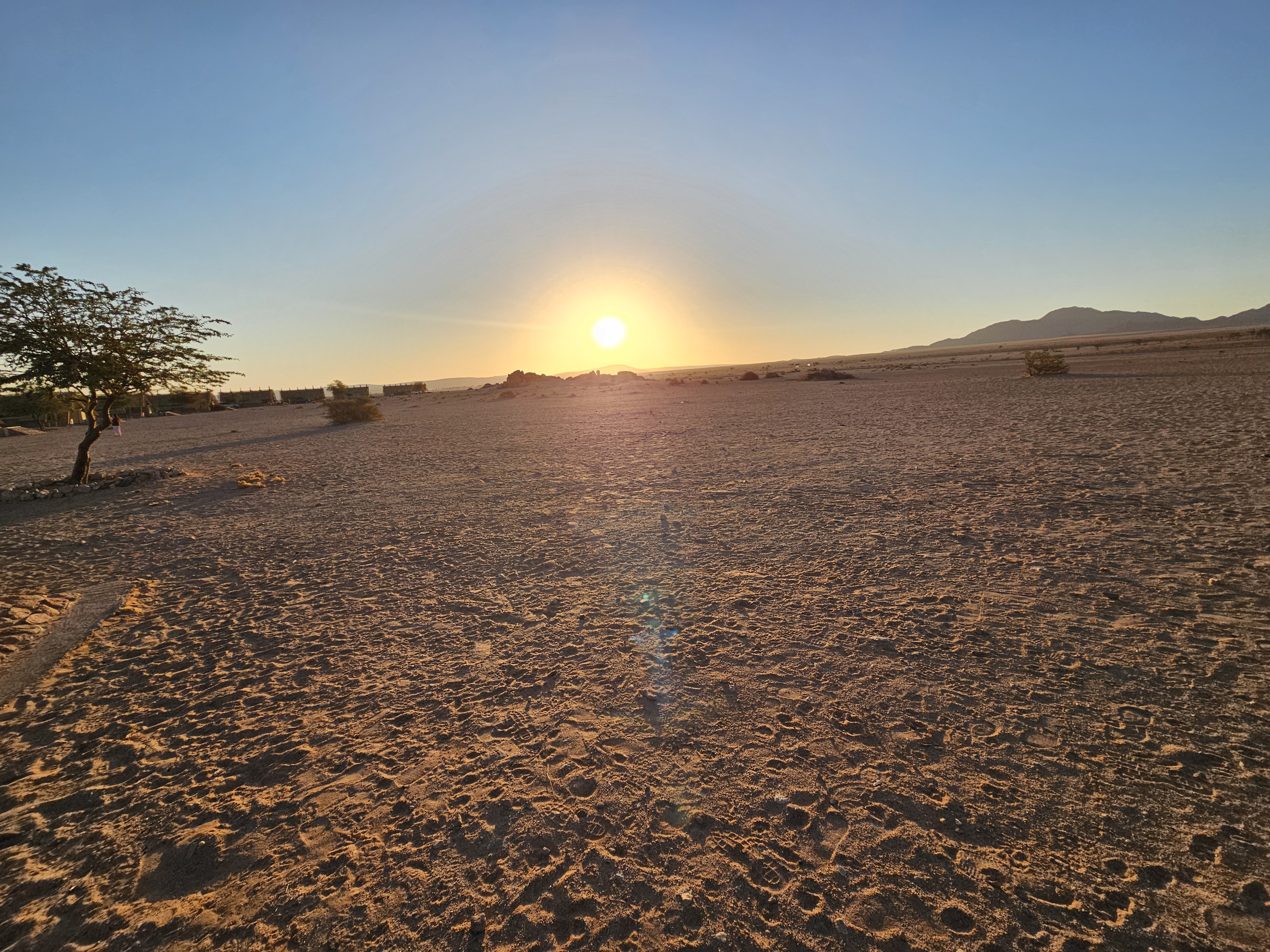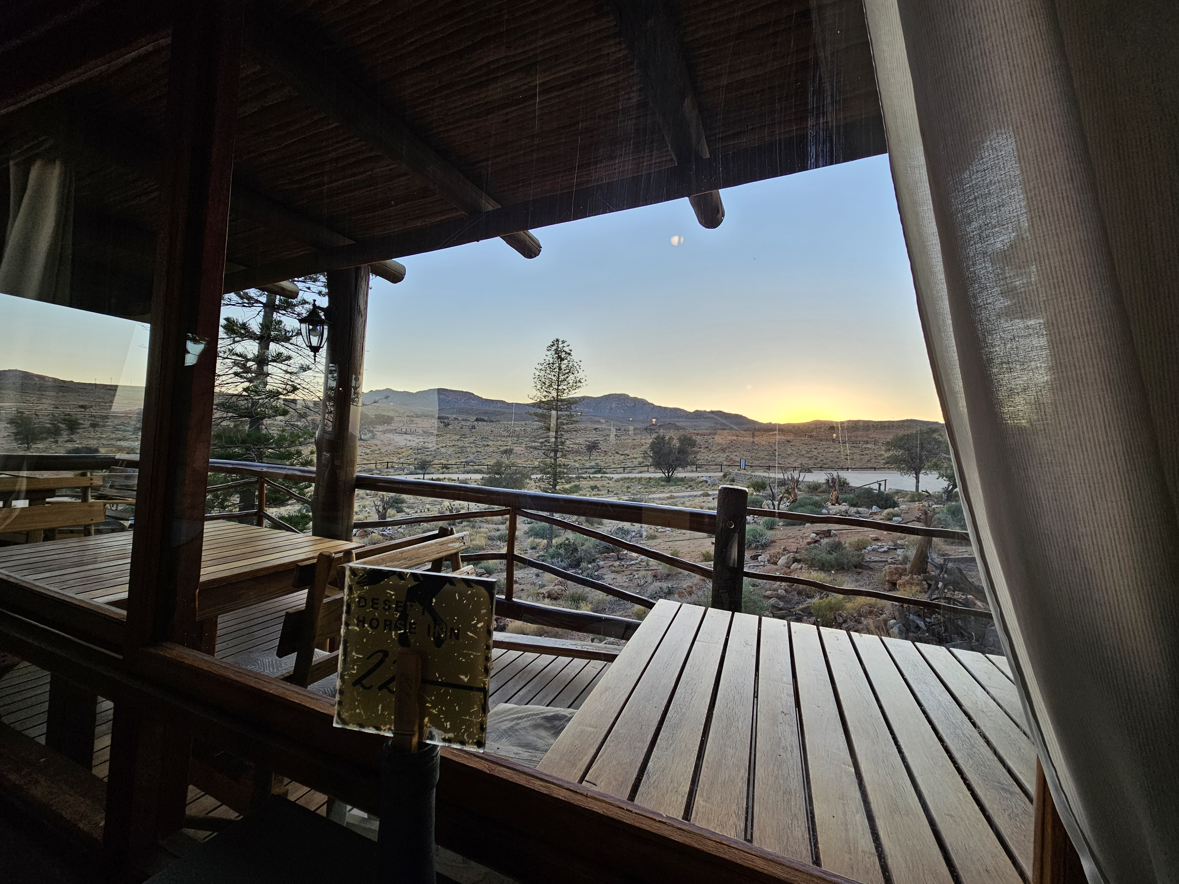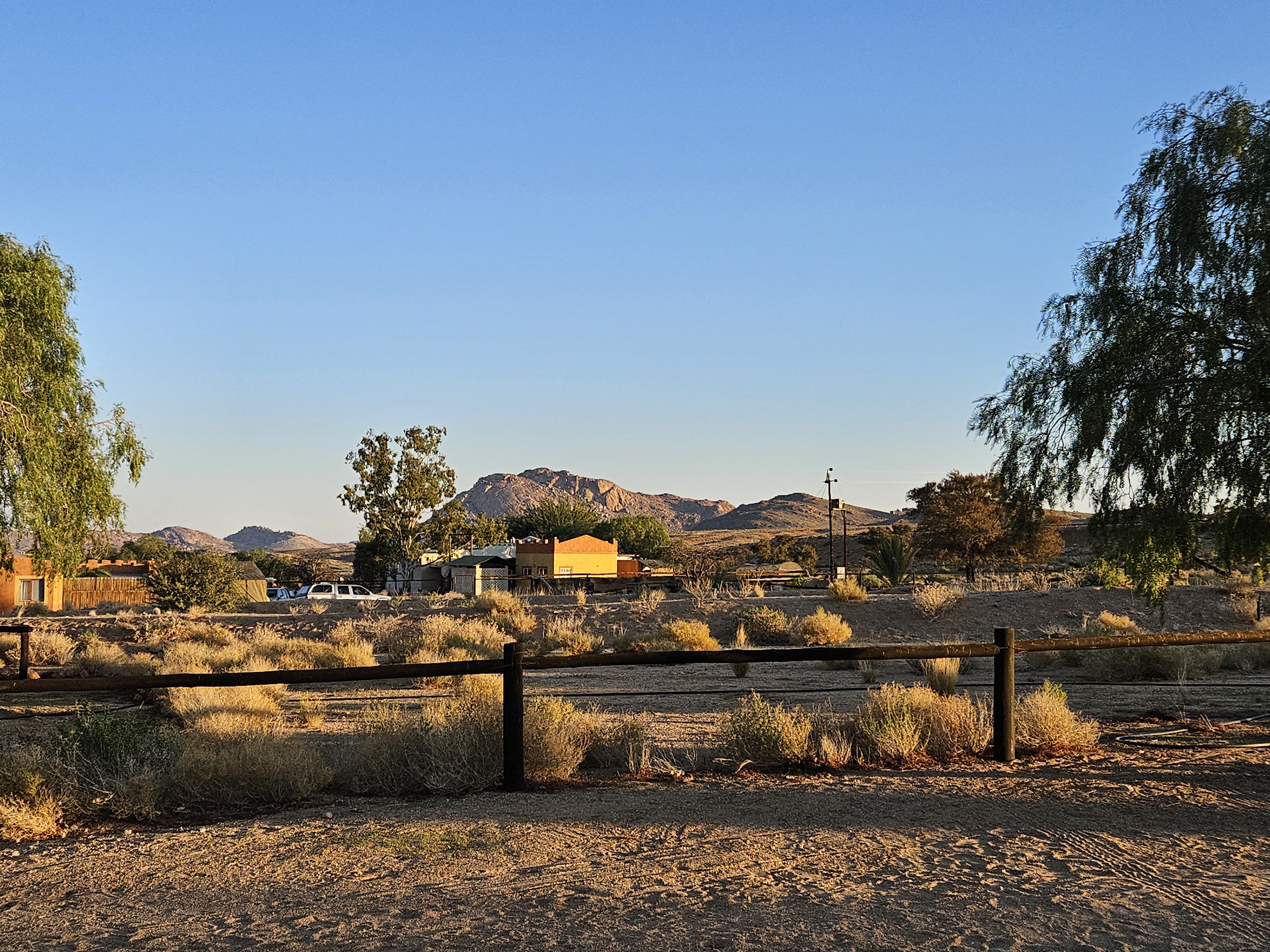Sono le 17e30 quando saltiamo nell’iperspazio con il Millennium Falcon, arrivando a destinazione, il Desert Quiver Camp, un altro luogo difficile da ipotizzare, con una dozzina di bungalow disposti a mezzaluna alla periferia di Mos Eisley, noto porto spaziale del pianeta Tatooine. Questa sarà la nostra casa per ben due giorni. Al check in Rafa Leao ci consegna le chiavi, ci spiega che -se abbiamo bisogno di un ristorante- possono prenotarci quello del Sossusvlei Lodge, con cui sono convenzionati. Diciamo di si, ma senza rendercene perfettamente conto. In questo momento diremmo si a tutto, probabilmente.