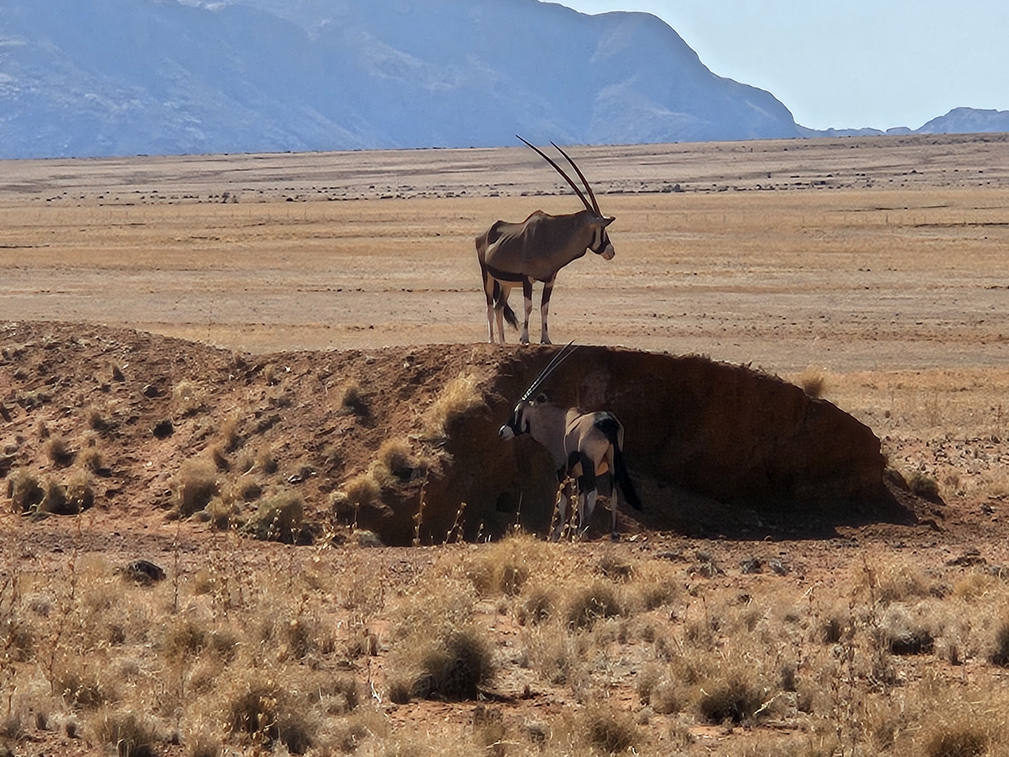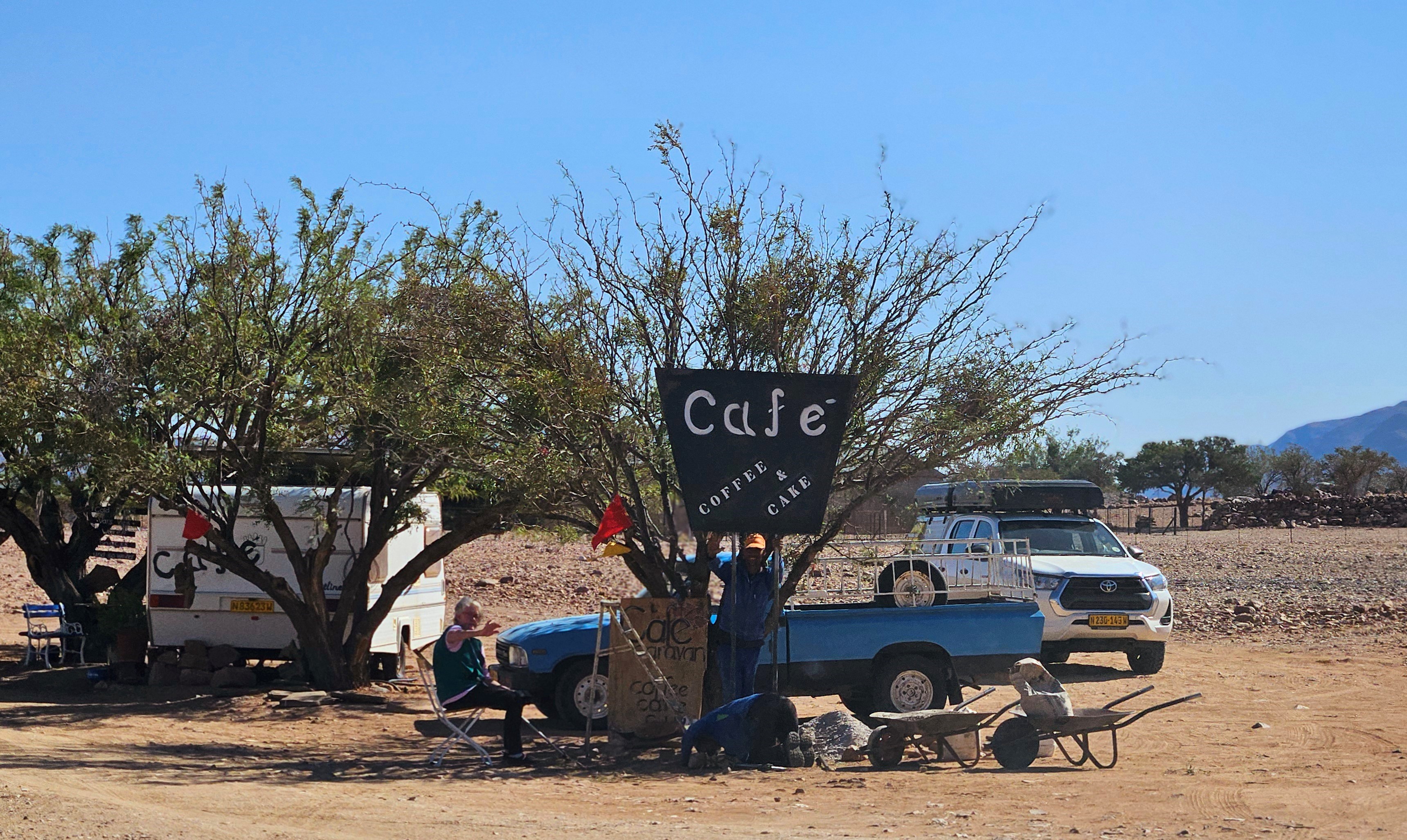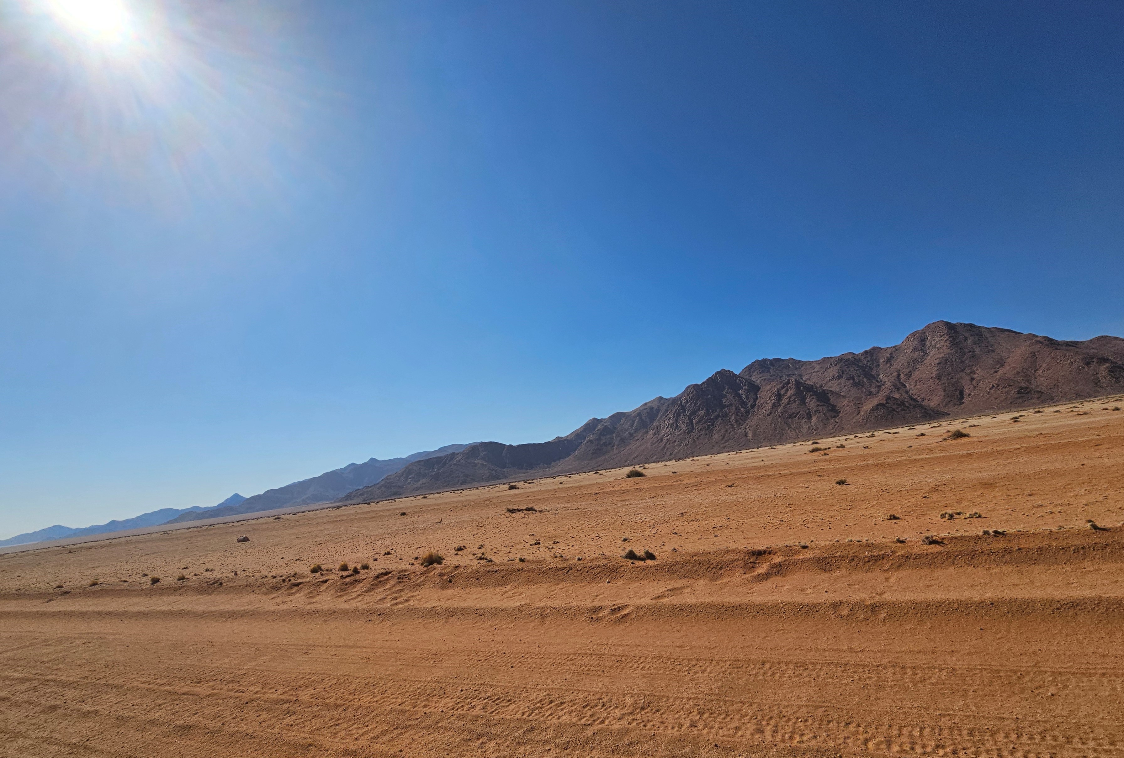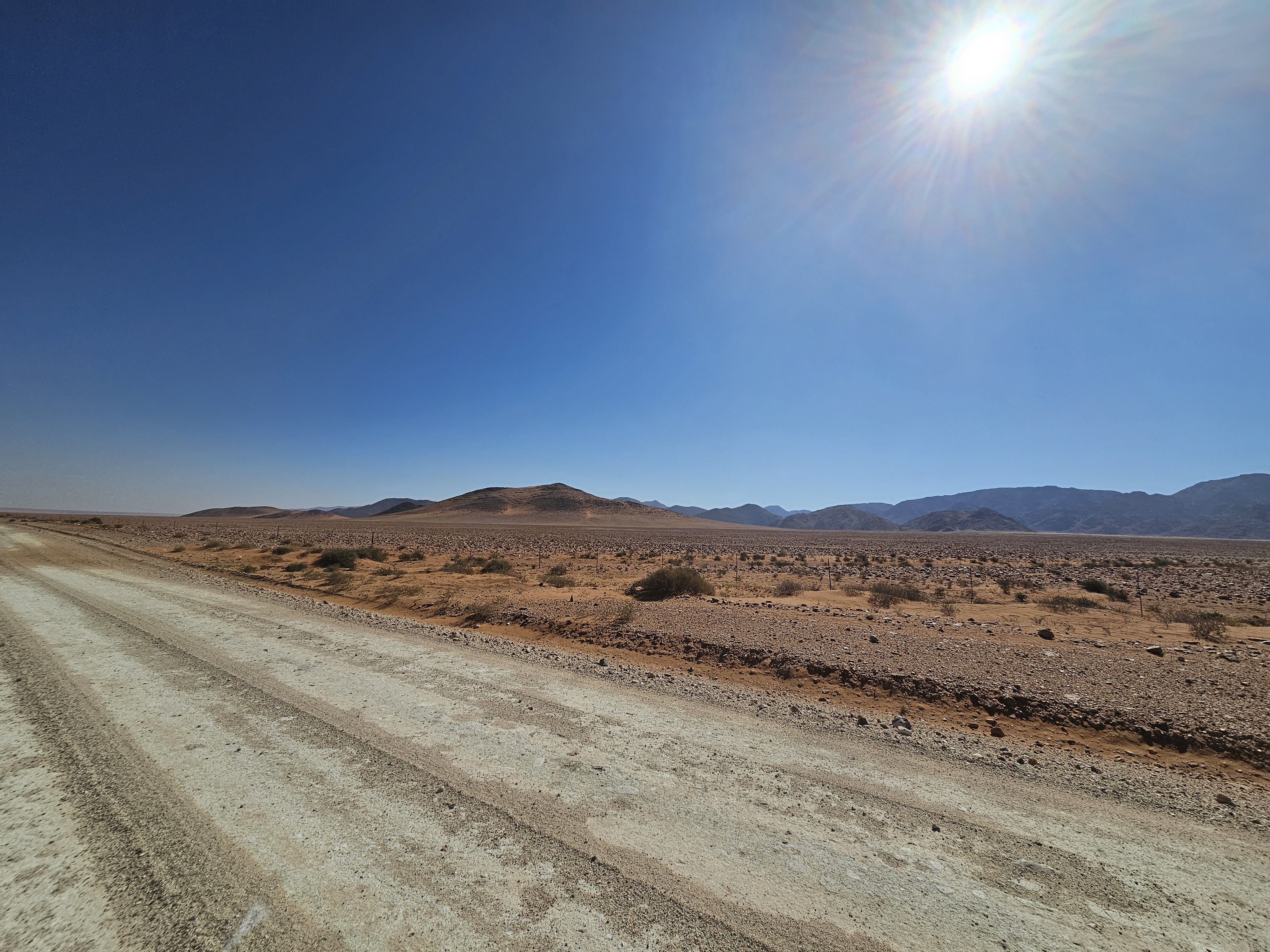 Sono le 10e30 quando riprendiamo la macchina. Il viaggio è lungo e insidioso e il serbatoio va rimboccato. Tocca fare un’altra sosta ad Aus, ultimo avamposto prima del dilagante nulla diretto a Sesriem. Stavolta troviamo un tizio più sveglio del cacciatore di foche canadese del giorno prima. Facciamo il pieno, ci facciamo sgonfiare gli penumatici il tanto che basta per attutire l’impatto con la roccia che ci farà compagnia per le prossime ore, e ripartiamo.