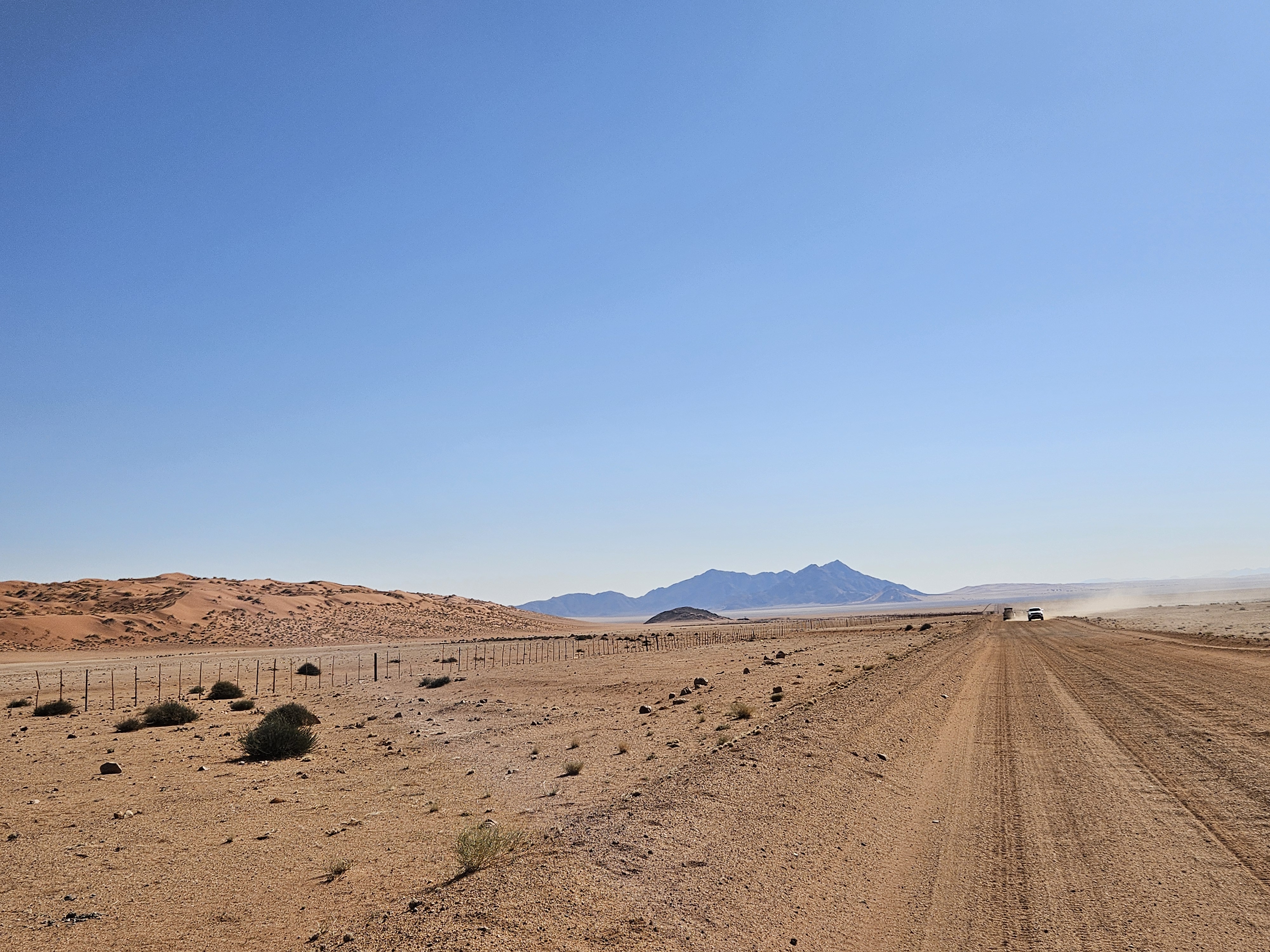 Nei pressi di Aus lasciamo la B4, imbocchiamo la C12 verso nord est, proseguiamo per qualche chilometro e poi, poco prima del Tirasberg Conservancy, viriamo a sinistra di 90 gradi per imbucare finalmente la D707, la pista che sogno da alcuni mesi, quella che mi ha regalato stravaganti fantasticherie ad occhi aperti mentre percorrevo le sterminate vallate della creazione. In strada si alternano roccia e sabbia rossa. Il paesaggio è una visione allucinante, sembra il pianeta Marte dipinto da Bradbury nelle sue Cronache marziane, o quello che poi ci hanno mostrato i rover Curiosity e Opportunity. I colori mutano in sequenza, il fondo stradale si trasforma rapidamente, passando dalla roccia alla sabbia e viceversa.