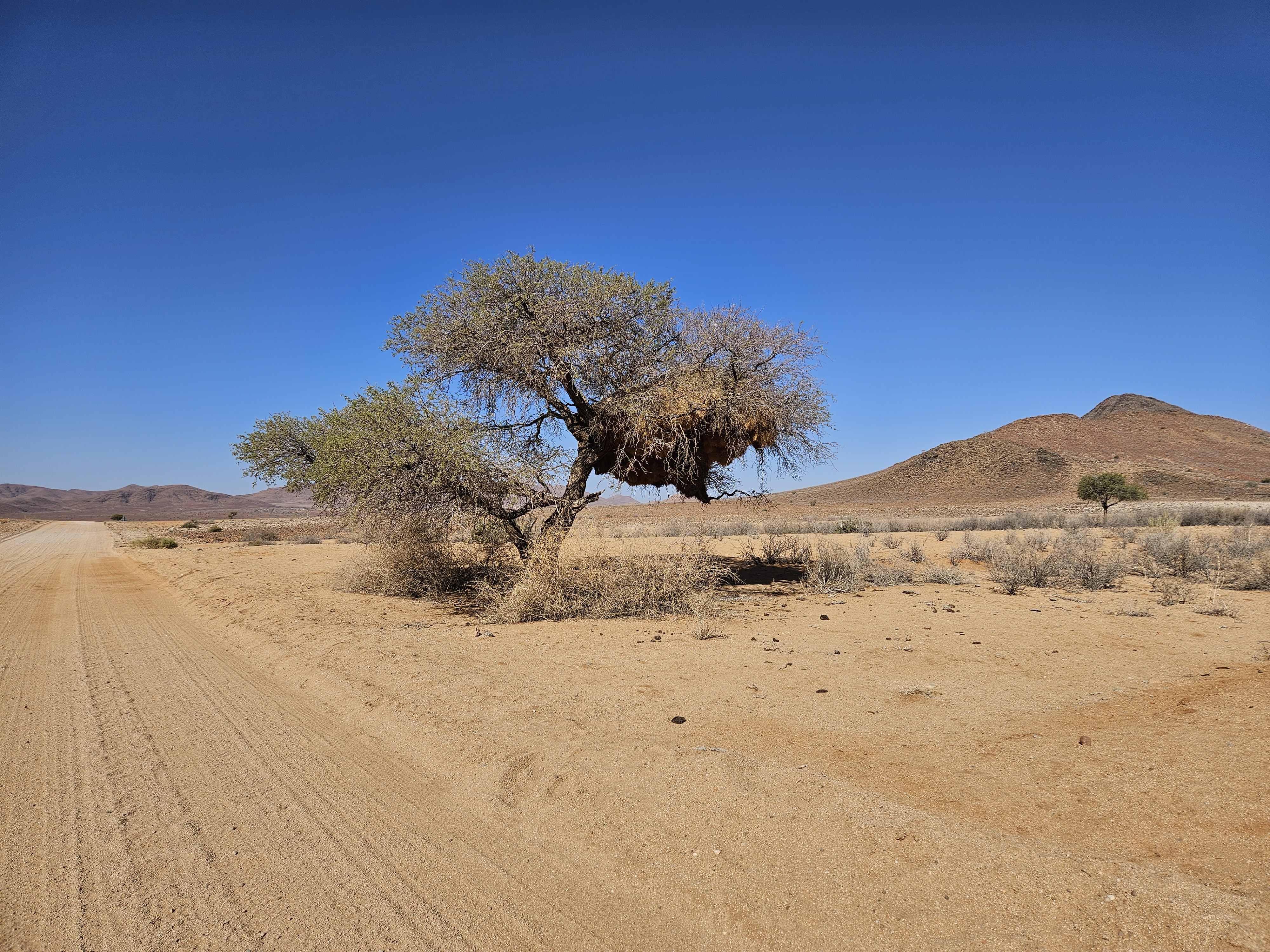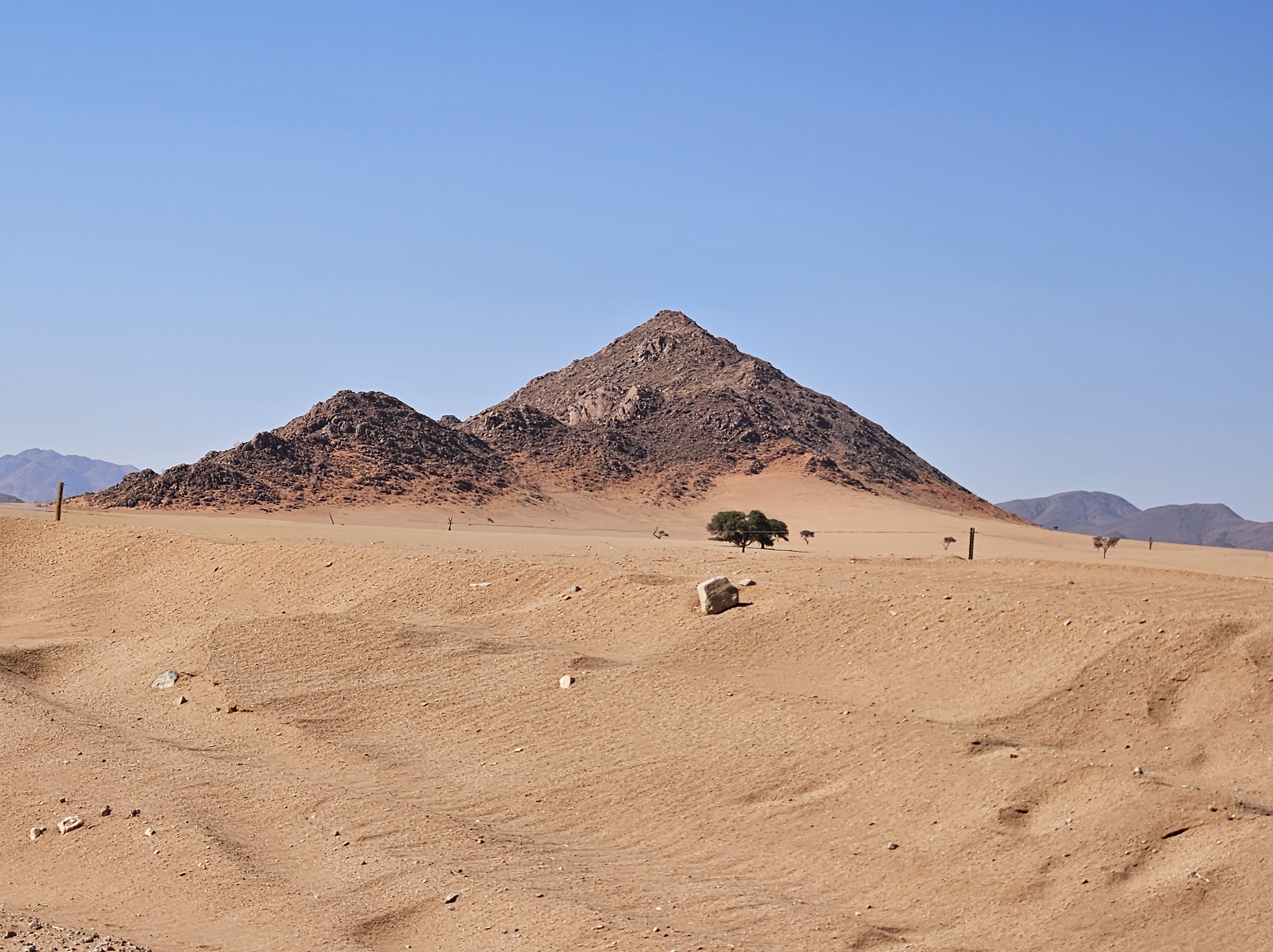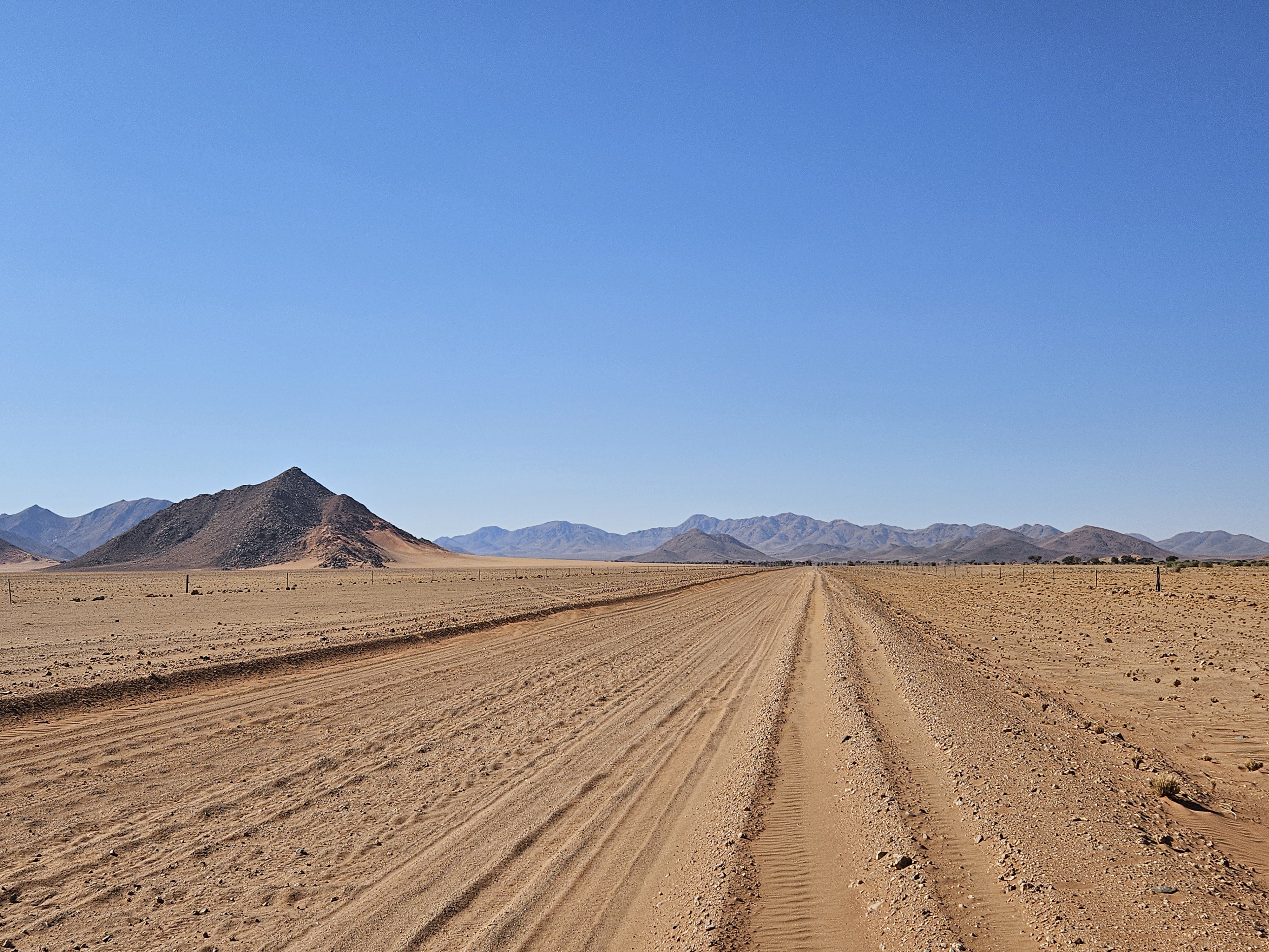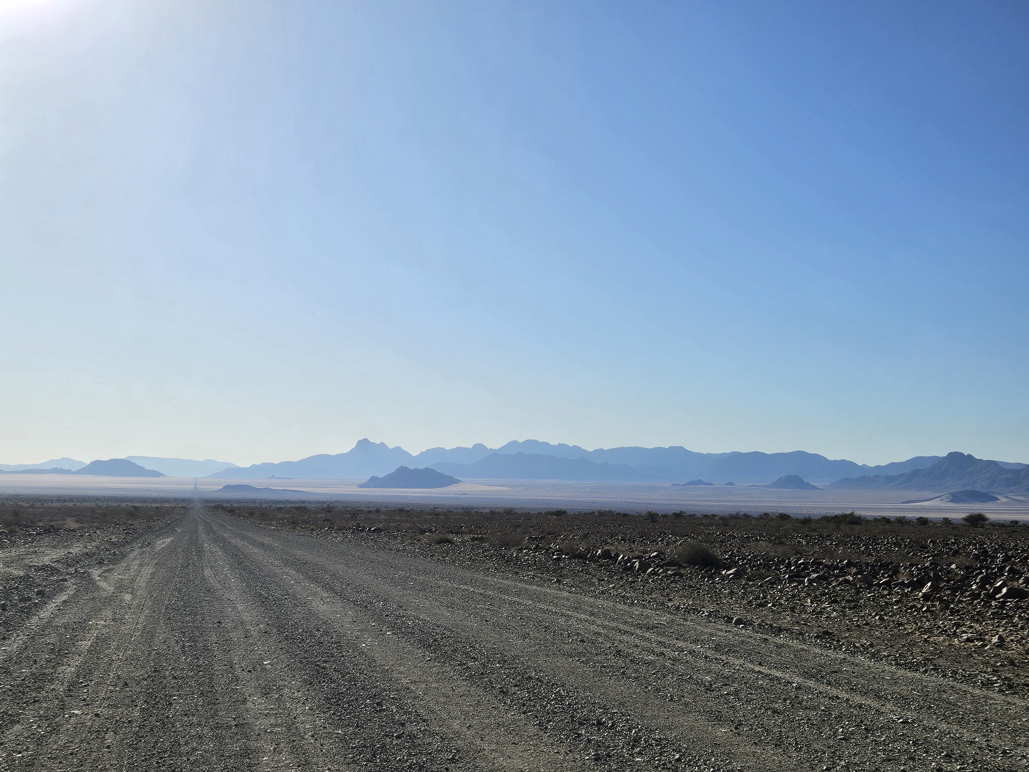 Facciamo un attimo fatica a capire dove andare perché le mappe off line non ci sostengono più nel Namib. Ma poi l’intuito di Franci prevale e ci riporta sulla retta via, ma con una sorpresa. Inizia una brutta C, il terreno intorno si fa più brullo e scuro, molto simile ad alcuni territori dell’entroterra islandese, ma la strada sembra persino peggiorare, perché i solchi si fanno via via più profondi e la strada più dura, tanto che le gomme andrebbero sgonfiate ancora un po’, se Spes Bona non fosse soltanto il nome di un crocevia, un non luogo a cavallo di altri non luoghi.
