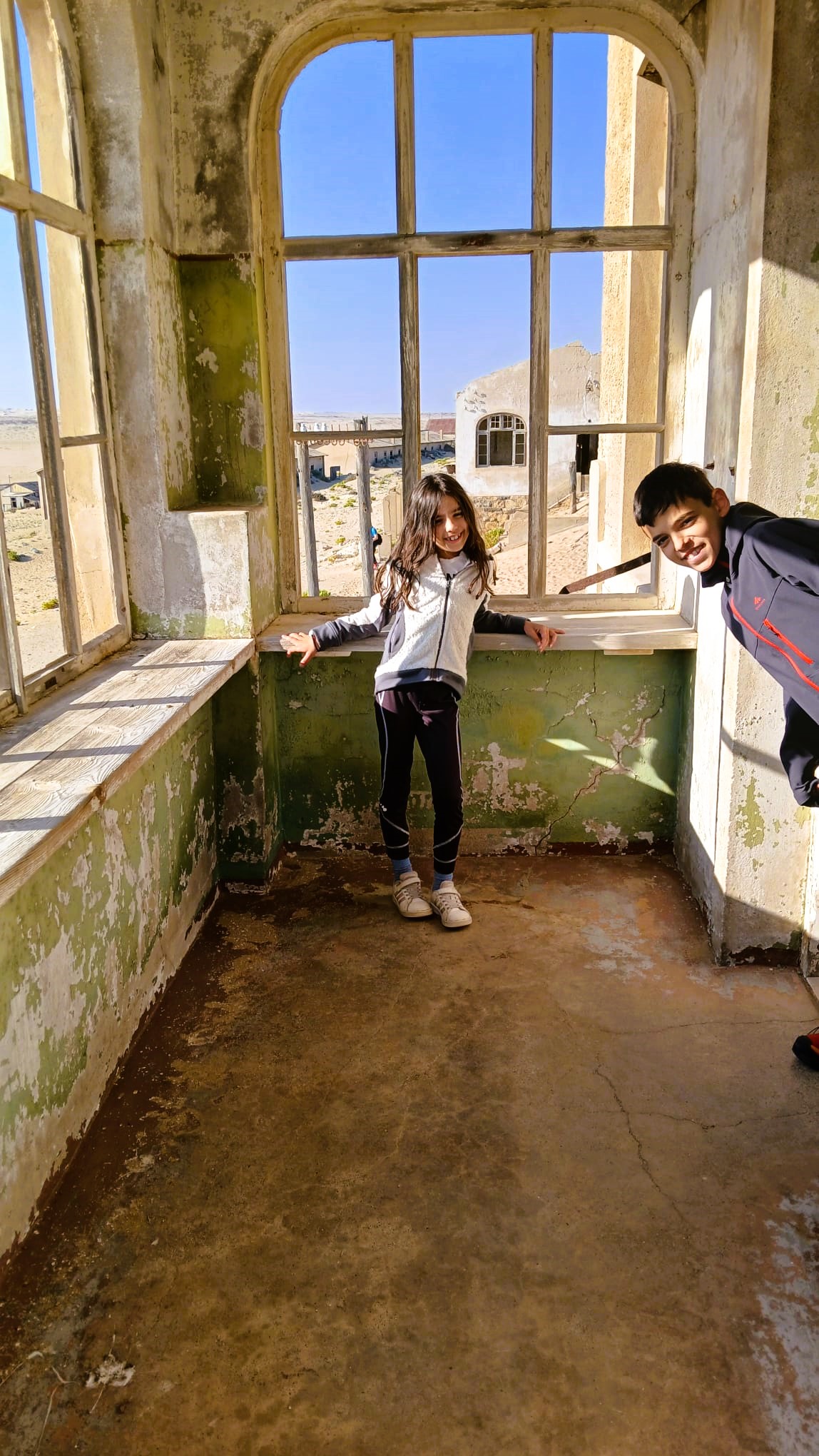 Arriviamo al box per le registrazioni di Kolmanskop alle 9e30 circa. Fra le cose fatte la sera prima, avevo anticipato il pagamento, così mostro la mia prenotazione agli addetti, che scannerizzano il ticket e ci fanno entrare al volo. Giamma ha qualche problemino intestinale, potrebbe aver preso freddo il giorno prima nell’entra ed esci dalla piscina. Lo monitoriamo ma, conoscendo bene il nostro polletto, notiamo i sintomi di un generale affaticamento.