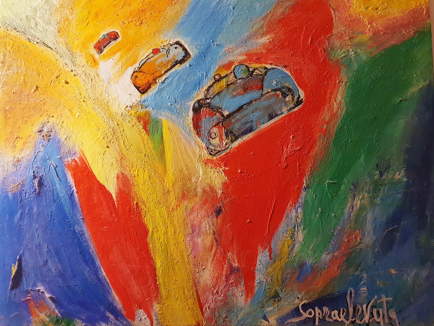 Così andiamo avanti, finchè facciamo il callo ai solchi. Ora ho superato la stanchezza, vago in quei territori che si stagliano al di là di essa, dove regna la bestialità. Monto il grugno del montanaro del Tiras, mi imbruttisco alla rassegnata ricerca della meta, guidare è il mio destino e non posso fare altro. Non solo, poche cose mi riescono meglio, e questa è la mia missione: pilotare il mio mezzo attraverso queste lande desolate, condurre la mia famiglia al di là del guado, che è poi quello che cerca di fare un padre ogni giorno. Tengo duro e via via i solchi si ammorbidiscono. Le alture in lontananza sembrano sommità di iceberg meticci o isolotti neri che galleggiano in mezzo a una distesa d’acqua che è solo un miraggio. La posa drammatica assunta per interpretare Han Solo, un contrabbandiere prestato al trasporto di esseri umani, mi ha fornito la forza residua per andare avanti, quella che non sai di avere finchè non ti serve.