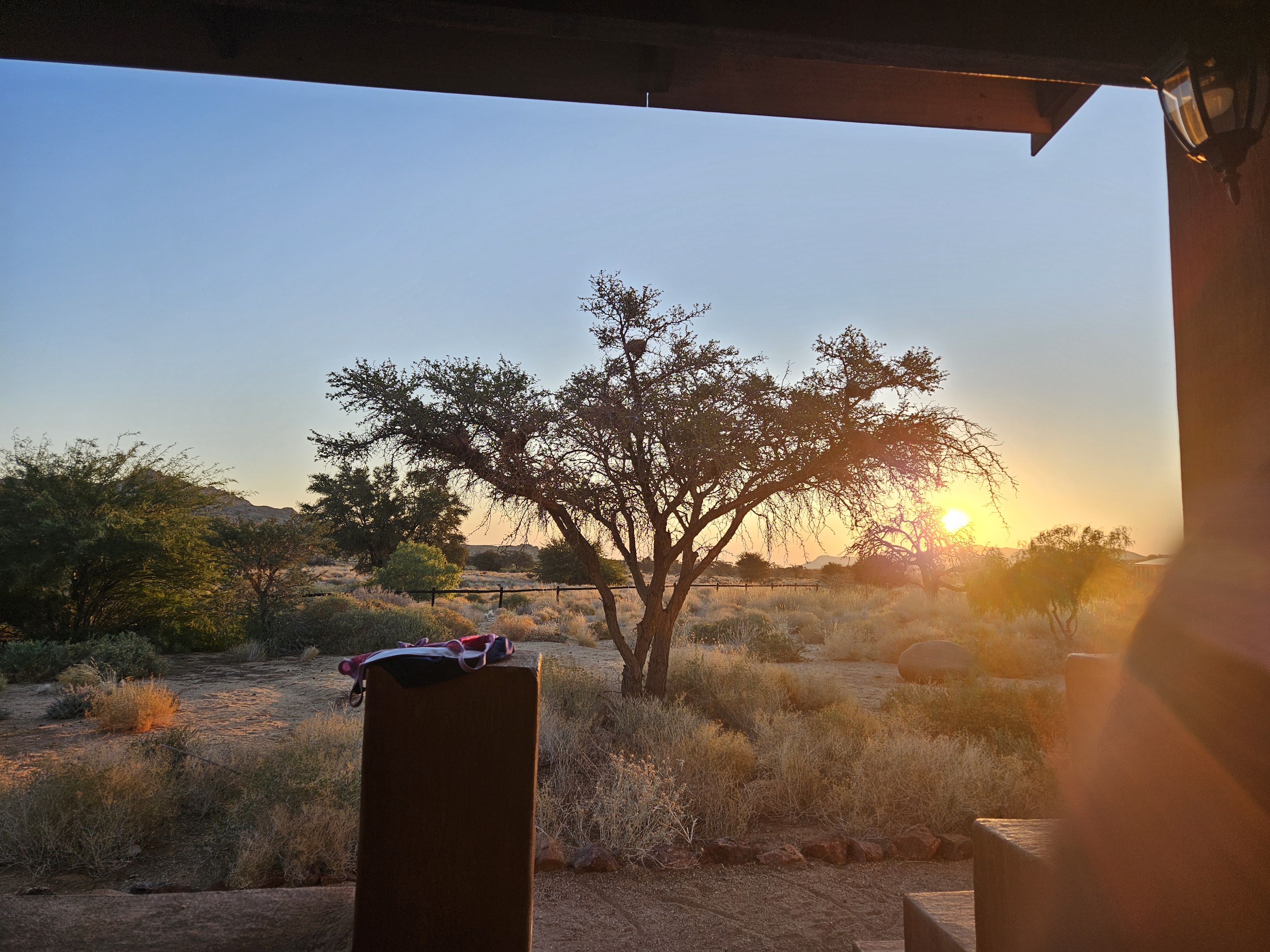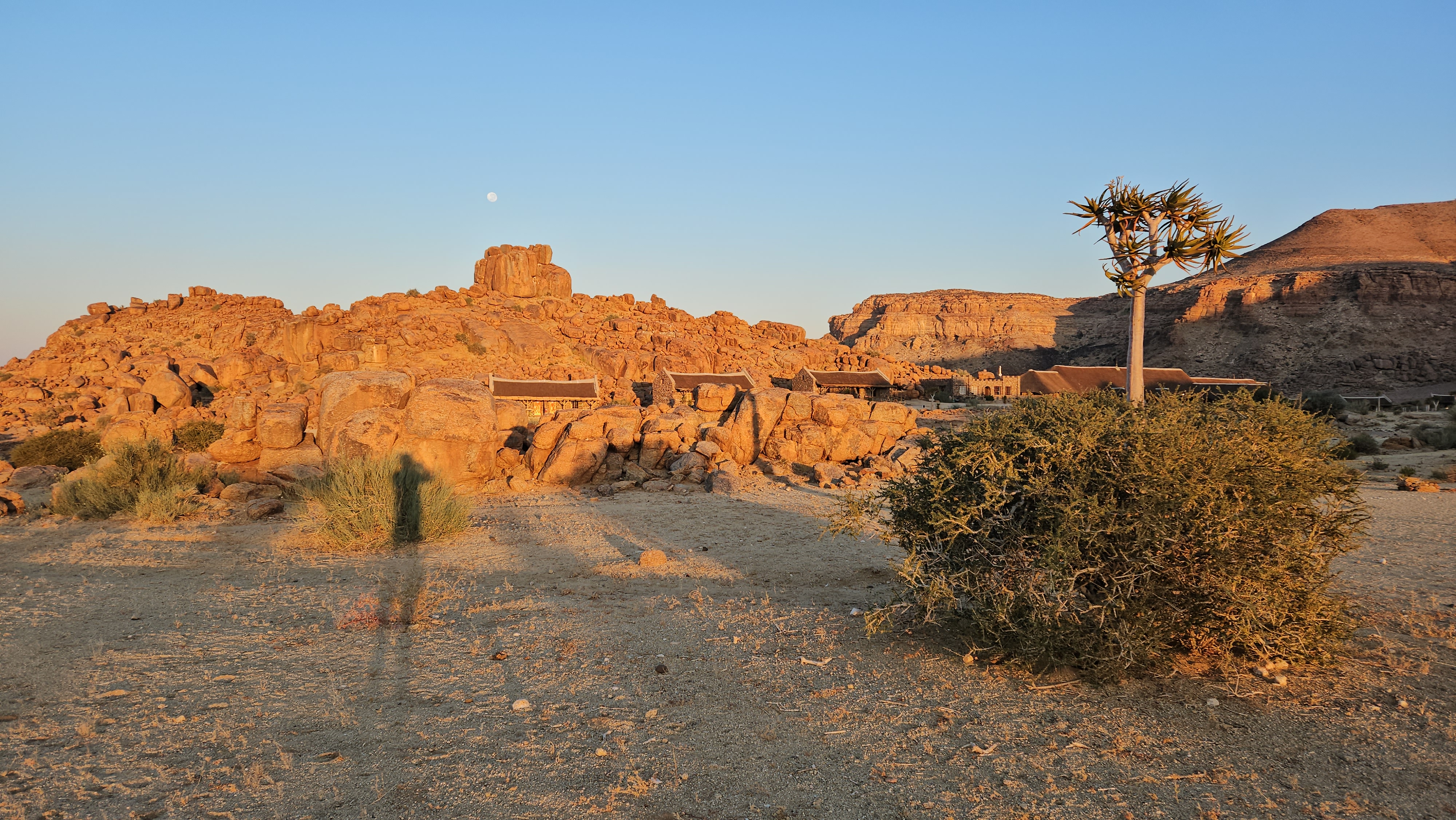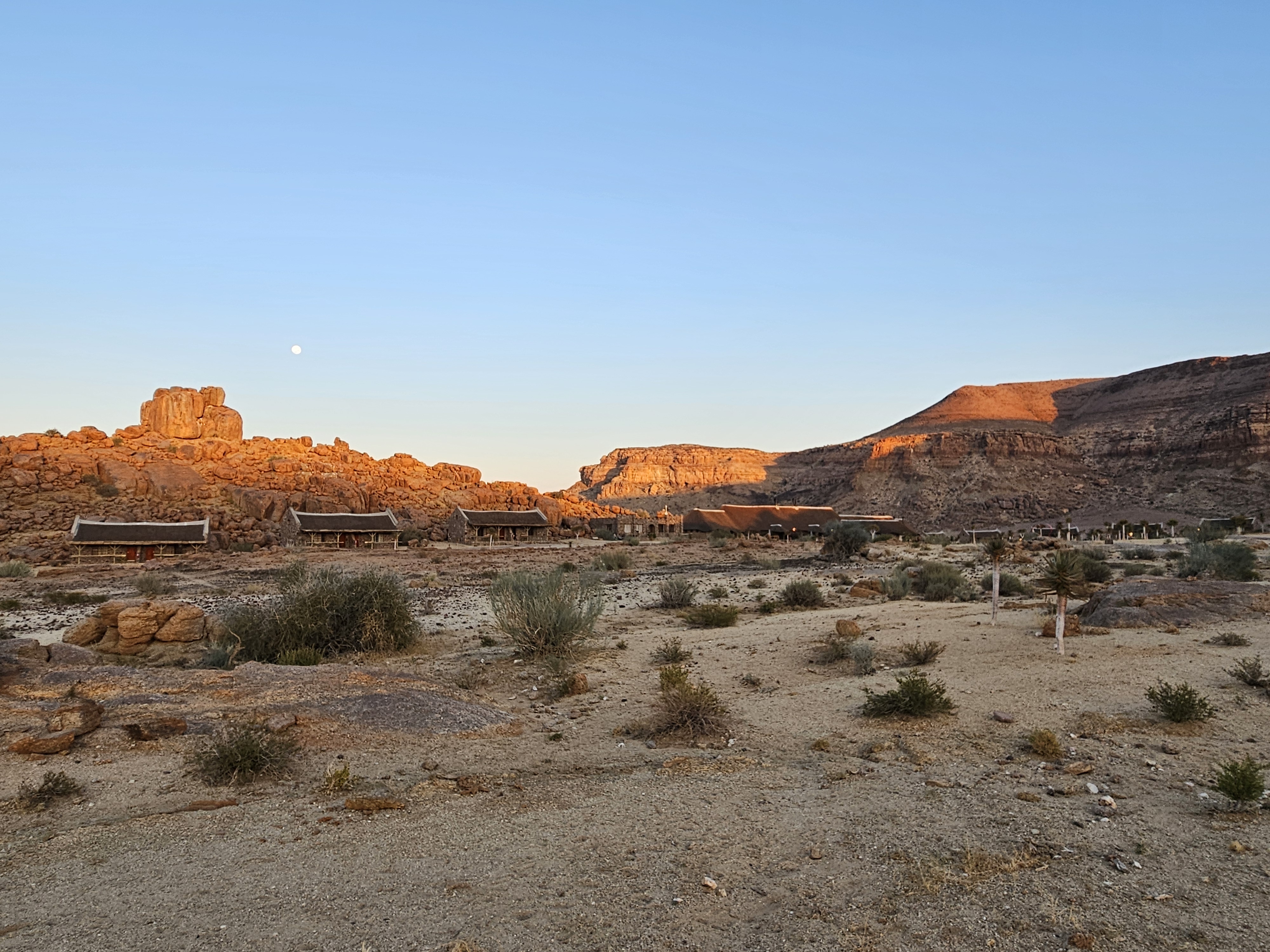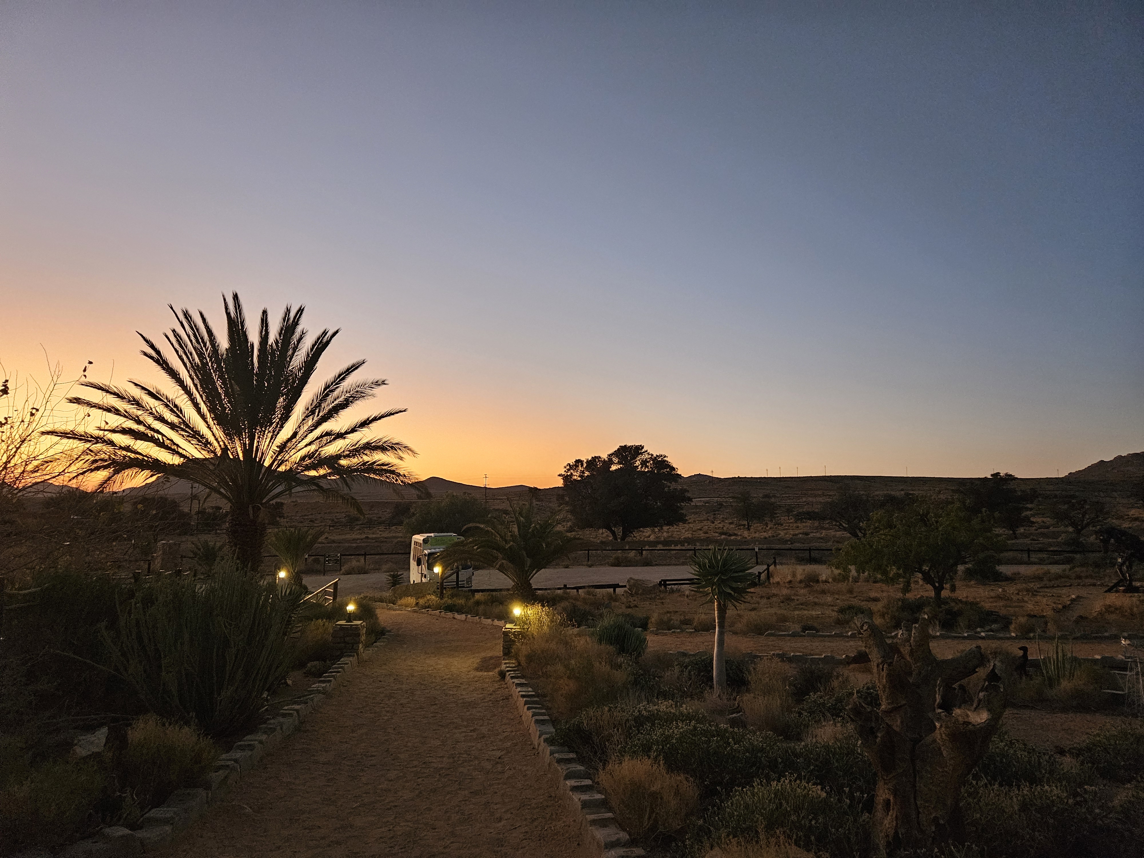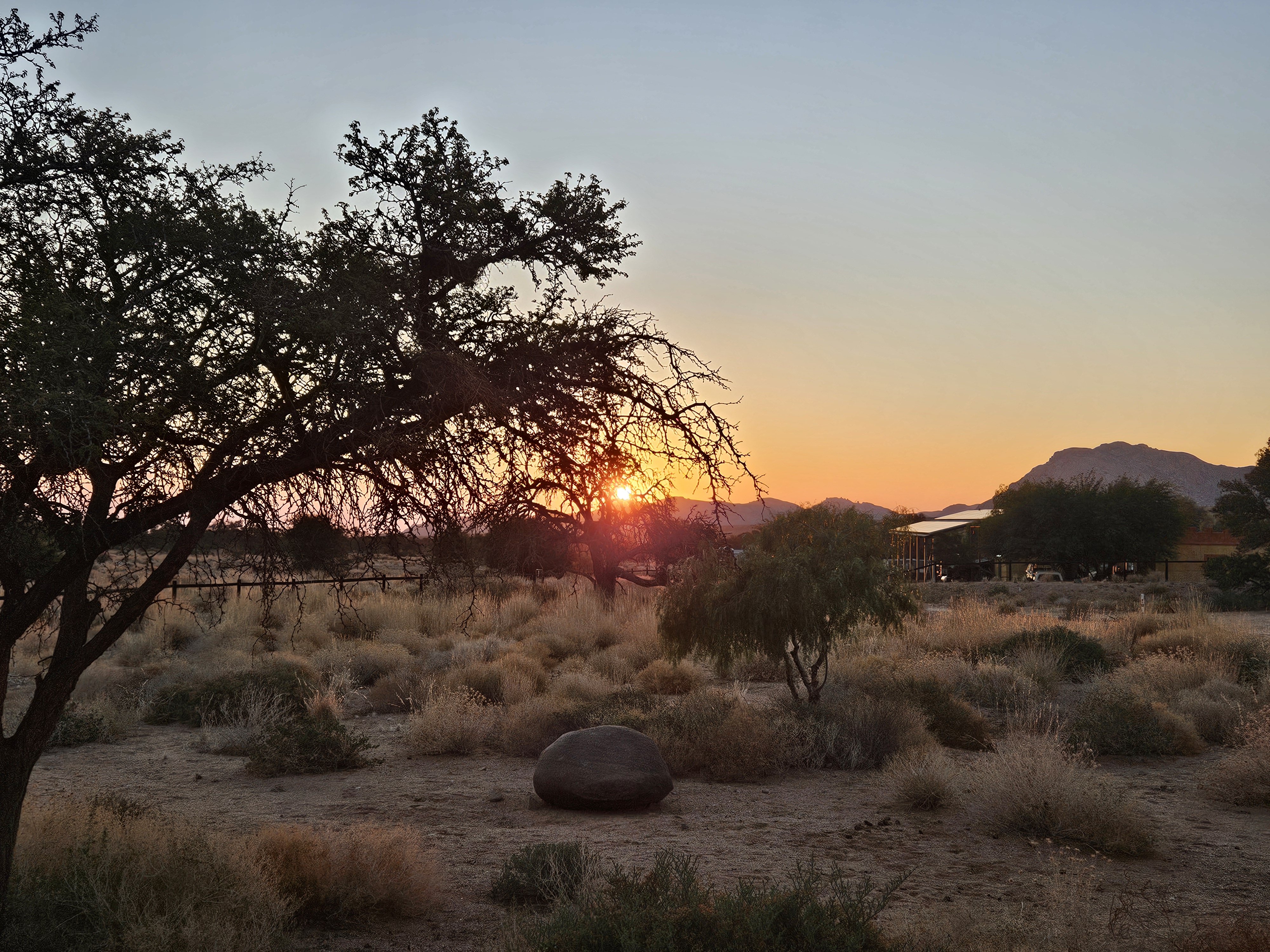 Faccio un pochino fatica a dormire, avverto più di un brivido per il giorno che verrà, che impone un percorso piuttosto complesso. Dovremo attraversare una terra desolata e selvaggia, su un altopiano a cavallo fra i monti Tiras e il deserto del Namib, che mi preoccupa, perché ho letto su diversi diari di viaggio che quella strada comporta delle insidie. Poi ripenso ai nostri nuovi amici, che poco prima mi hanno rasserenato in proposito: “Don’t worry, it’s a great choice and a wonderful road, you will never forget!”. Mi fido di loro, e so che sarà così. Posso lasciarmi andare alla notte di Aus.