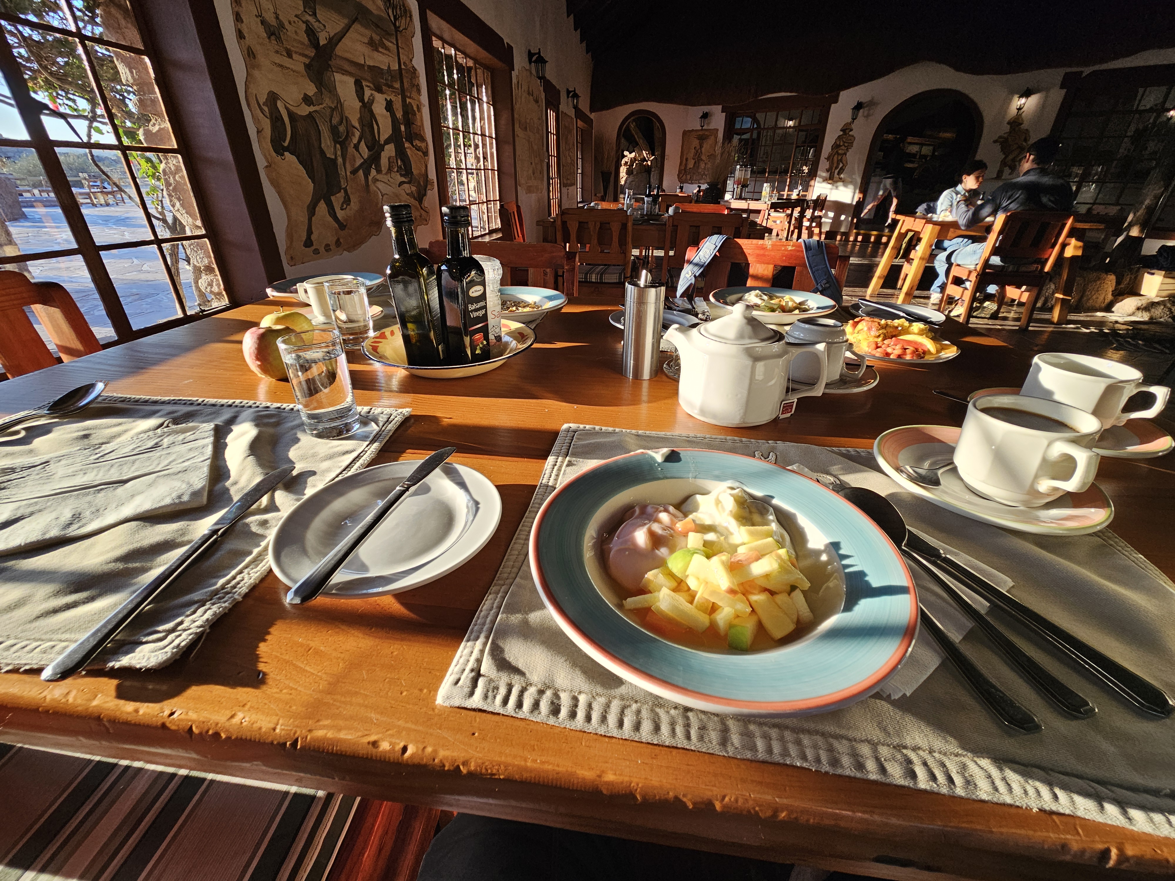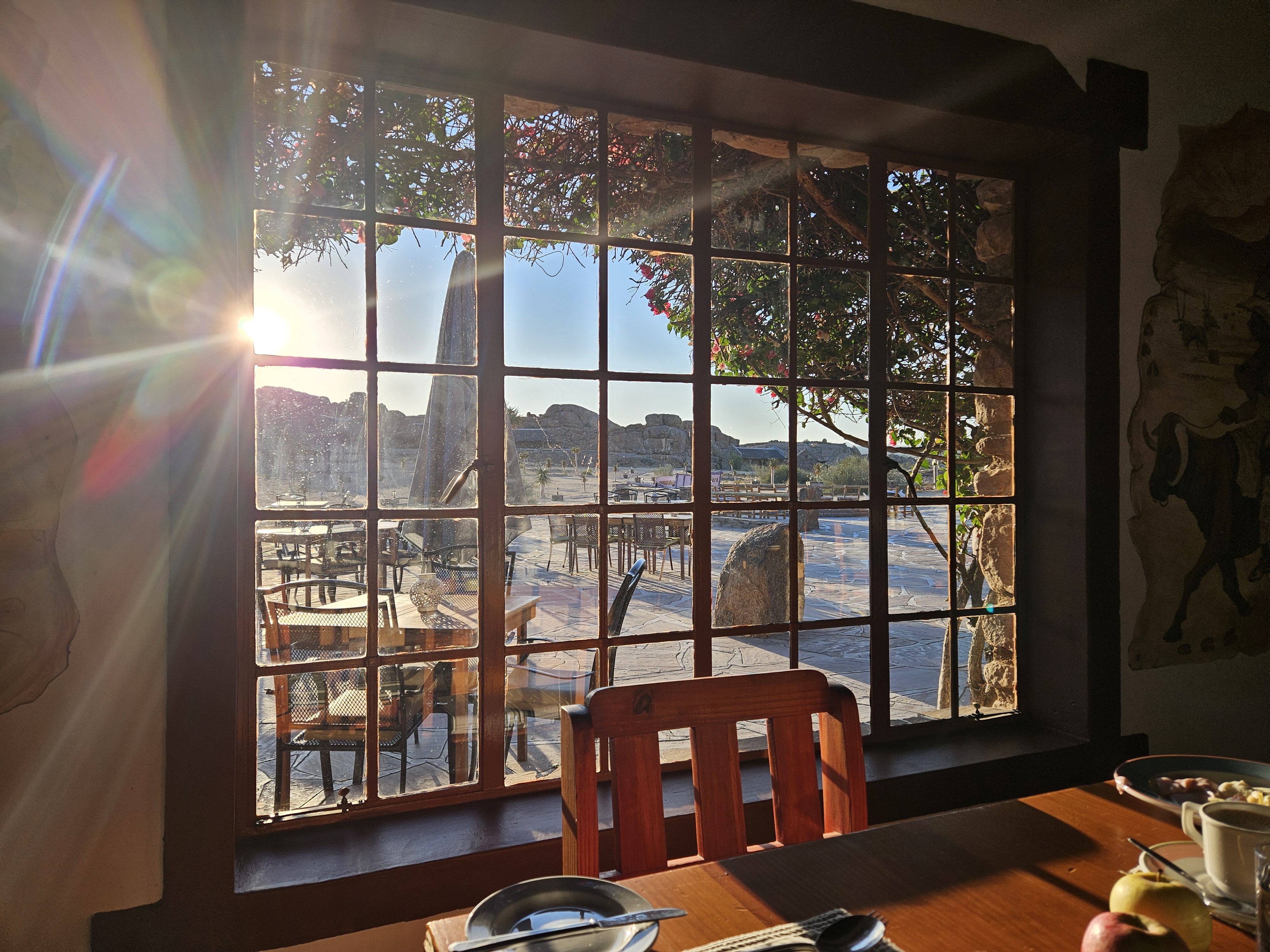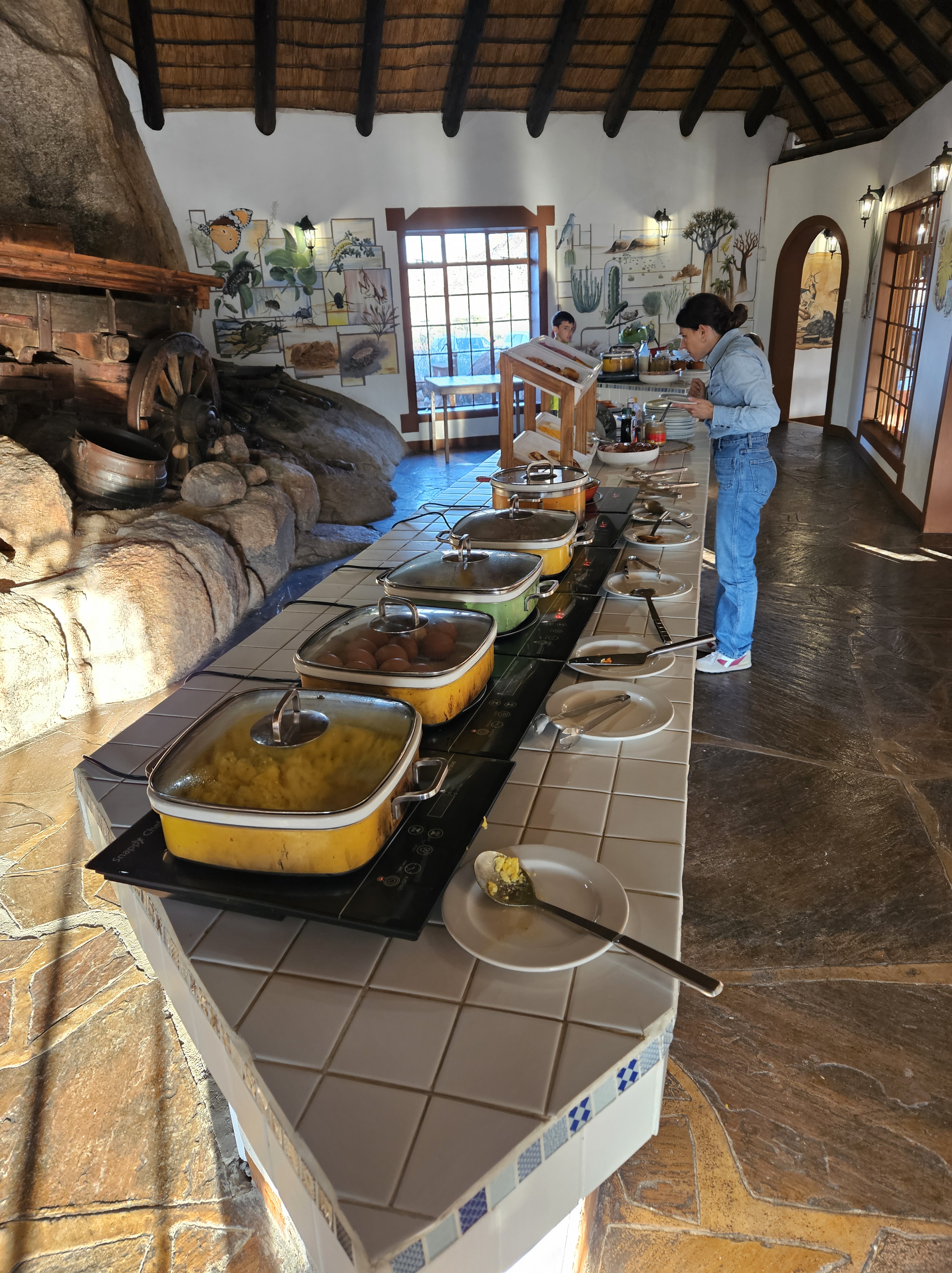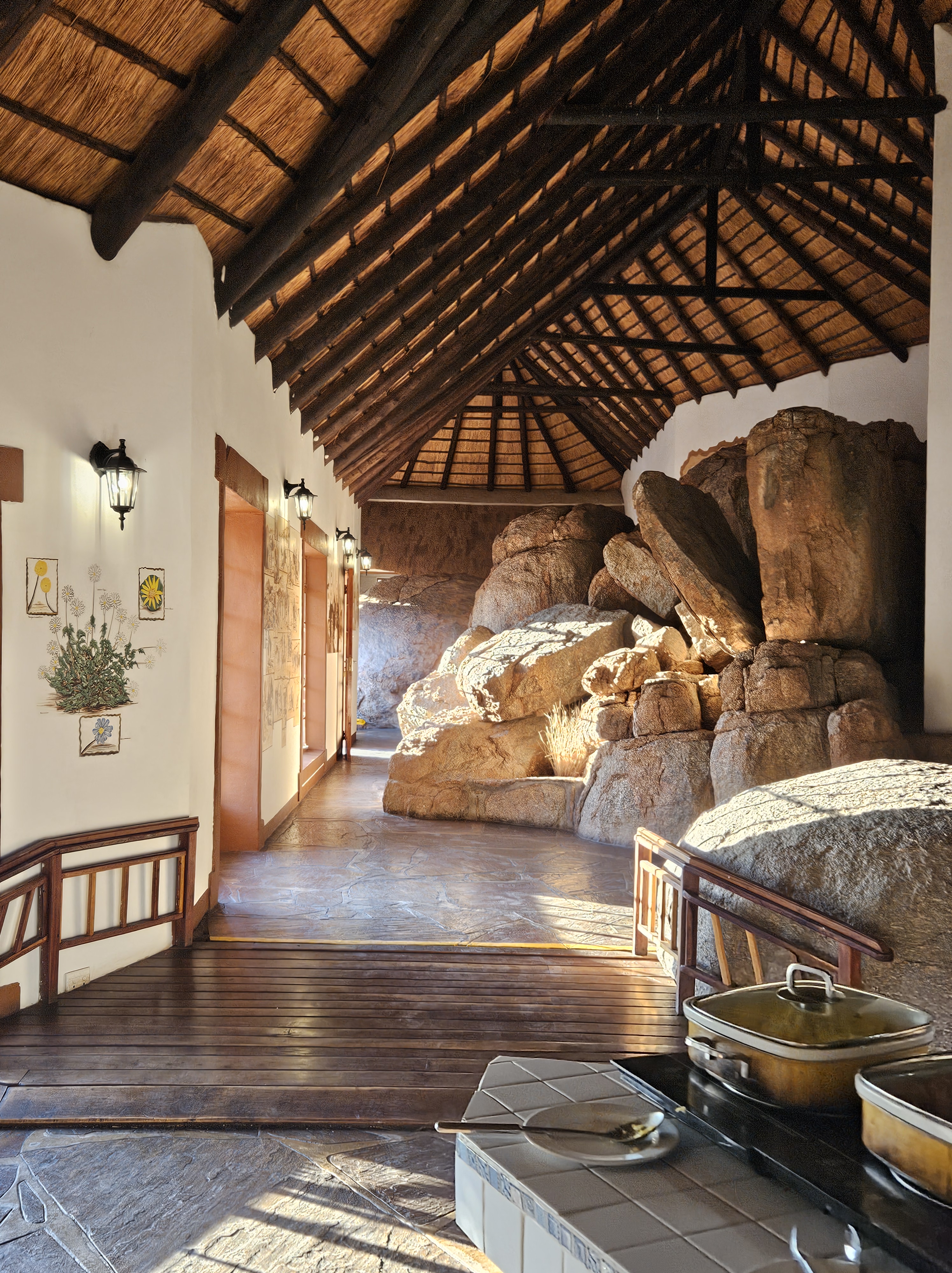 La zona buffet, pervasa com’è dalla luce del sole e dal canto degli uccellini che, incredibile a dirsi, volano liberi fra dentro e fuori con grazia incontaminata, sembra qualcosa di assimilabile a una fiaba. Qui Biancaneve si sentirebbe a casa. Chi ha costruito questo luogo ha avuto l’accortezza di appoggiare il villaggio sulla roccia, al limitare di essa, quasi a lasciar intendere con l’evidenza dei fatti che siamo ospiti della terra e delle sue evoluzioni, che non possiamo fare finta di nulla o ignorarla, che il suo dominio è persino troppo evidente, che fuori e dentro non esistono realmente. O forse, oltre ogni concessione poetica, lo hanno fatto perchè quelle rocce sono indubbiamente magnifiche. Ma scelgo la prima ipotesi, anche a costo di prendermi in giro.