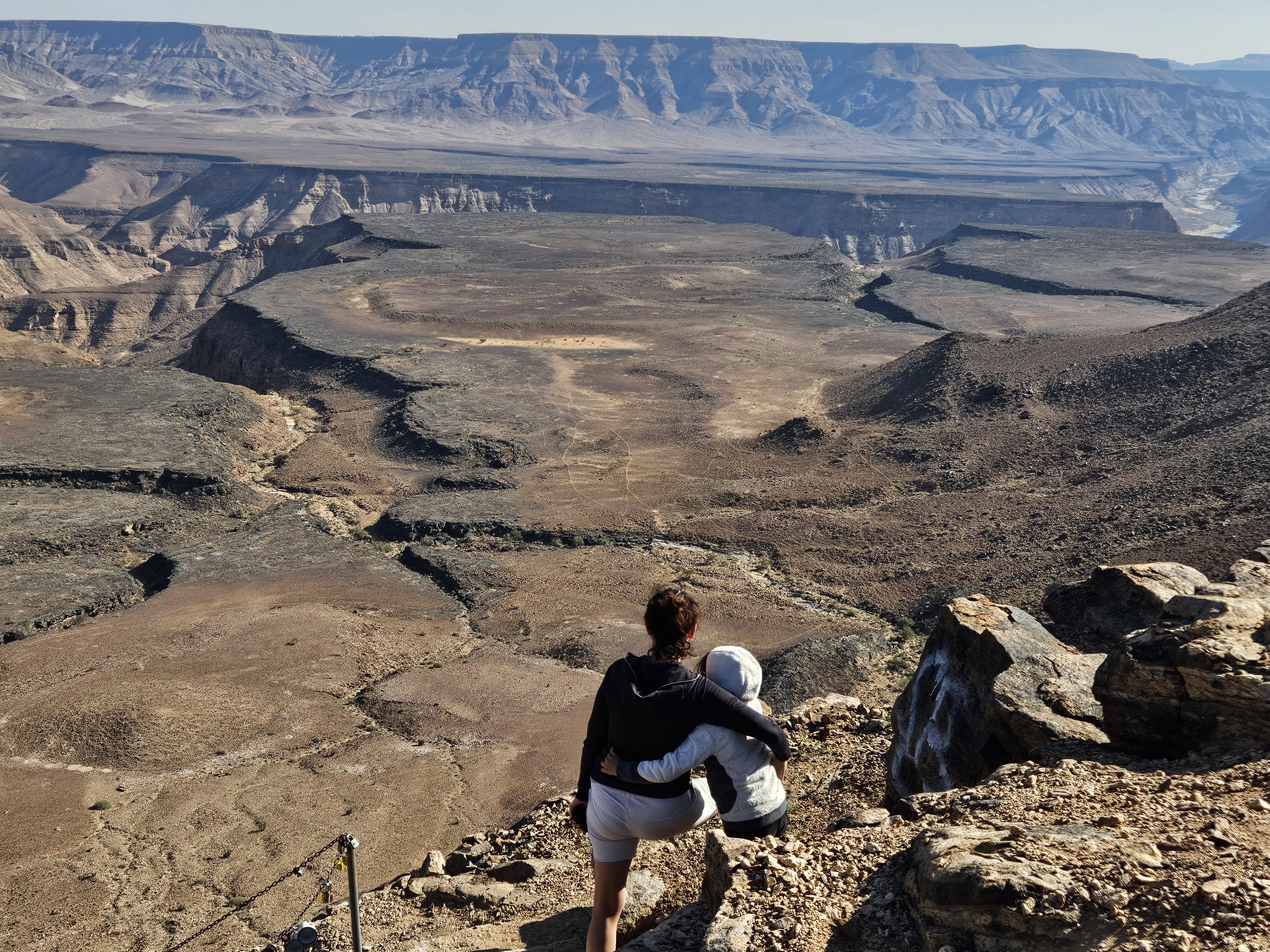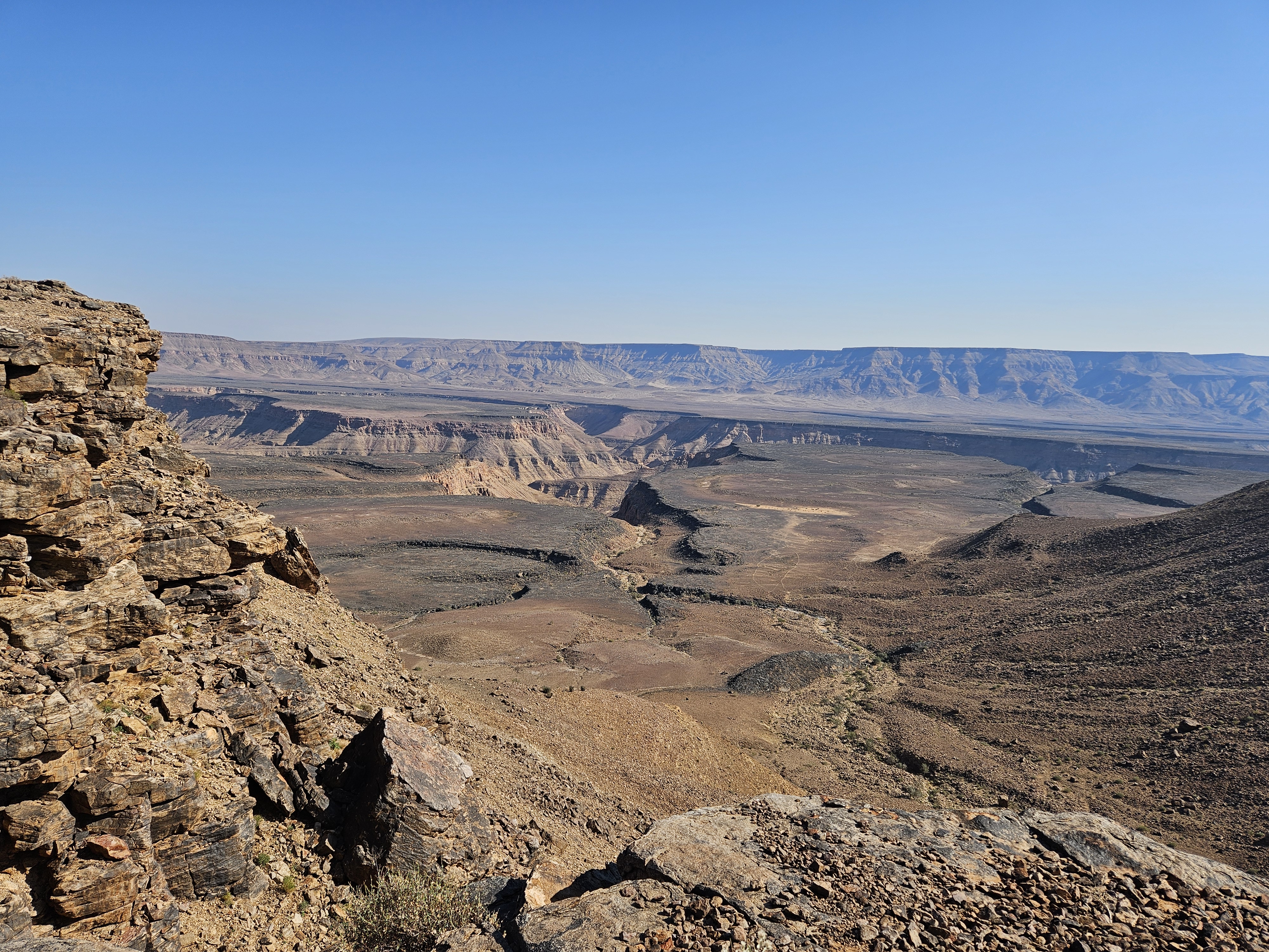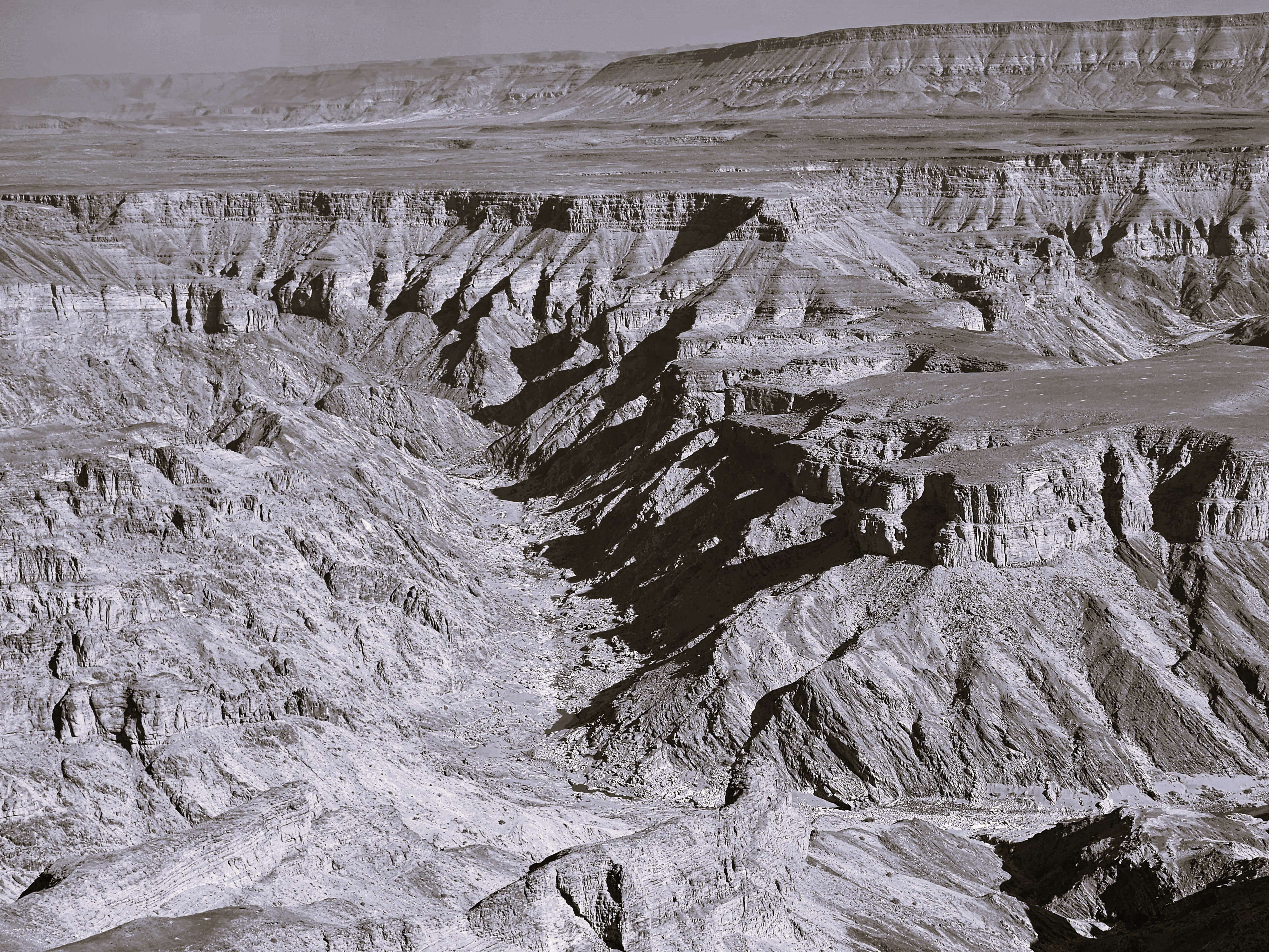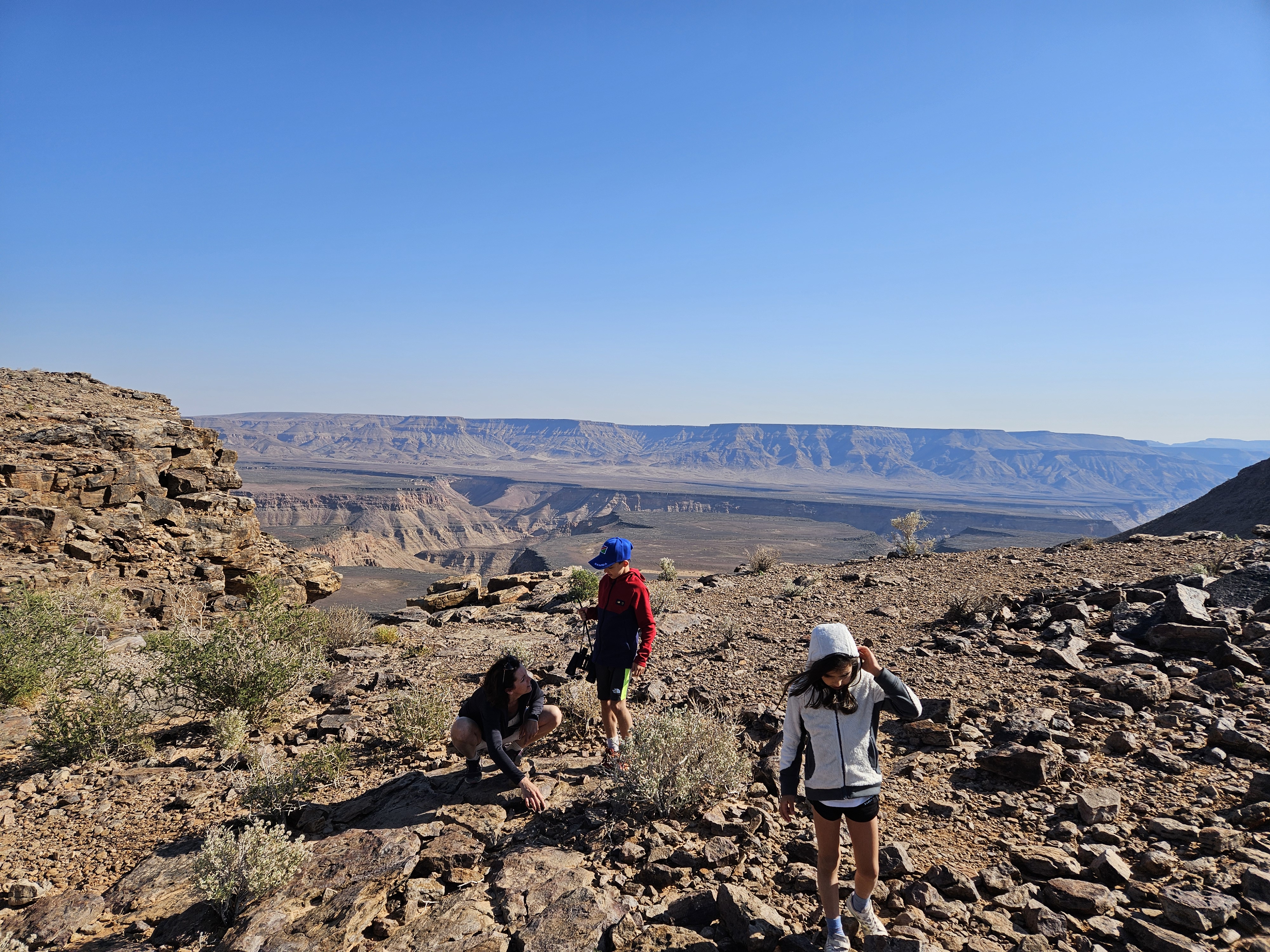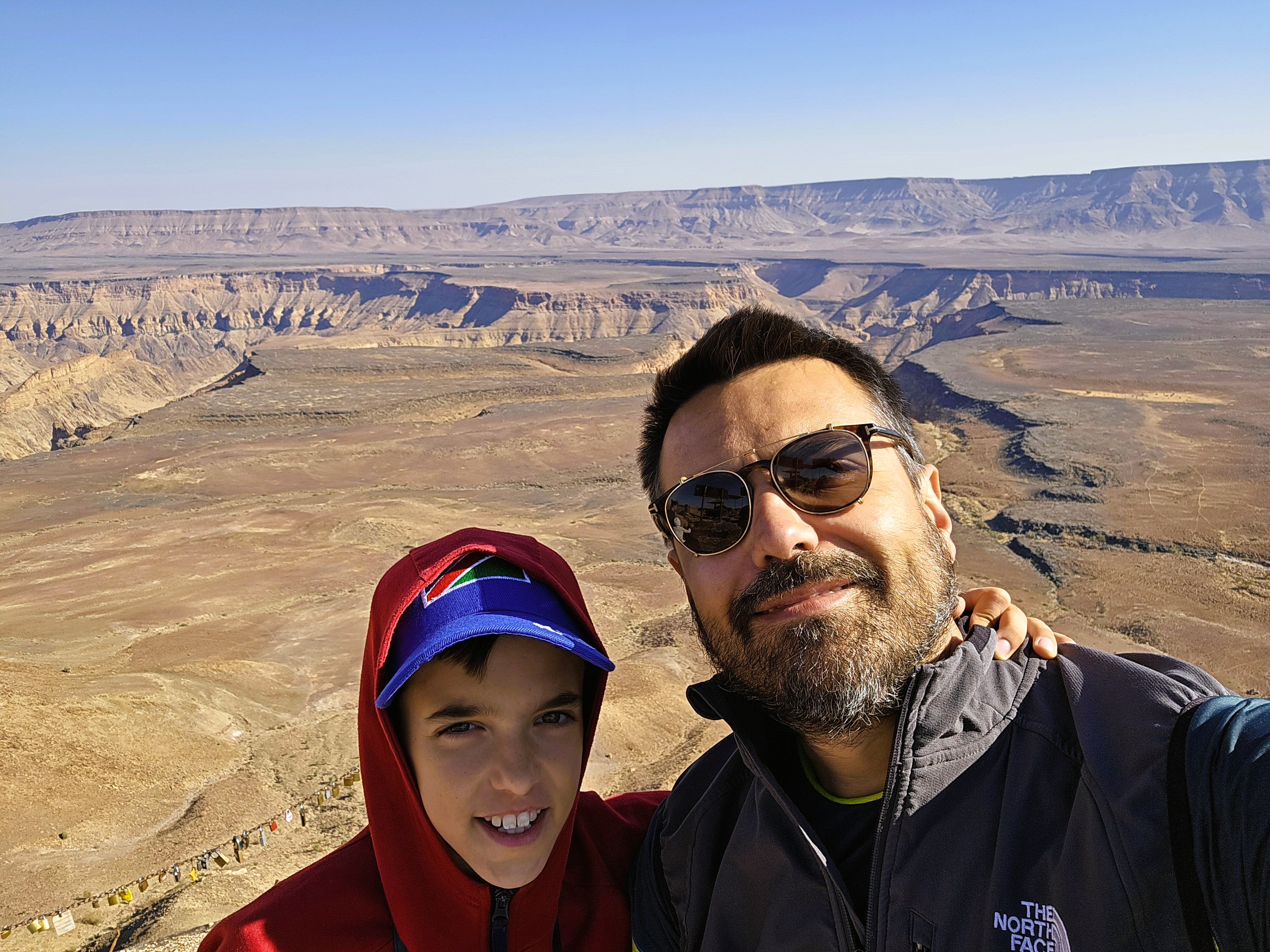 Il canyon si estende per 160 km e sprofonda oltre i 500 metri in alcuni punti. Generato da sismi primordiali devastanti e dall’attività erosiva ed escavatrice del (fu) possente fiume Fish, oggi è un luogo prevalentemente arido. L’impatto visivo è potentissimo e lascia senza fiato: uno spettacolo dirompente, che racconta il passato e descrive il presente in modo inesorabile. Non sembra infinito come il Grand Canyon, ma la sensazione che ho avuto è di poterlo percepire meglio, più compiutamente, rispetto al gigante americano, che in alcuni tratti è talmente vasto da sembrare inconcepibile per i sensi umani.