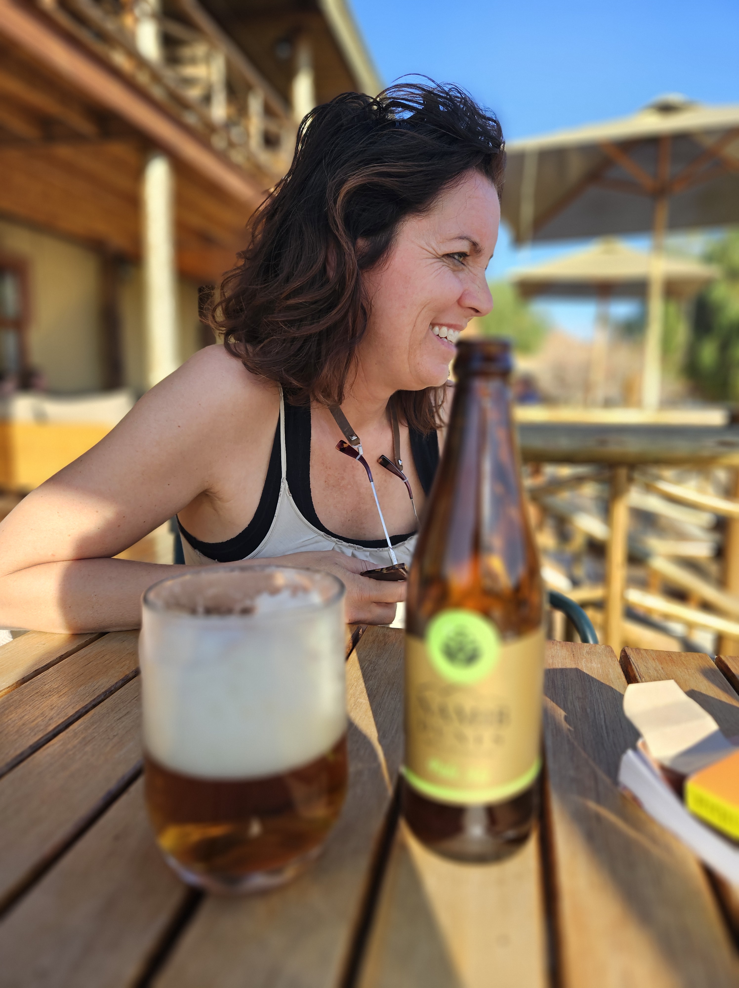 La notte è stata eccellente. Ogni giorno riprendiamo gradualmente smalto e freschezza. Mi alzo verso le 7e30, poco prima dell’alba. Esco senza far rumore per non rovinare l’idillio di respiri tenui e candide lenzuola che regna nelle nostre stanze. Ora che la notte si è dissolta vedo finalmente dove siamo davvero. Il nostro bungalow è il penultimo prima del deserto sconfinato.
