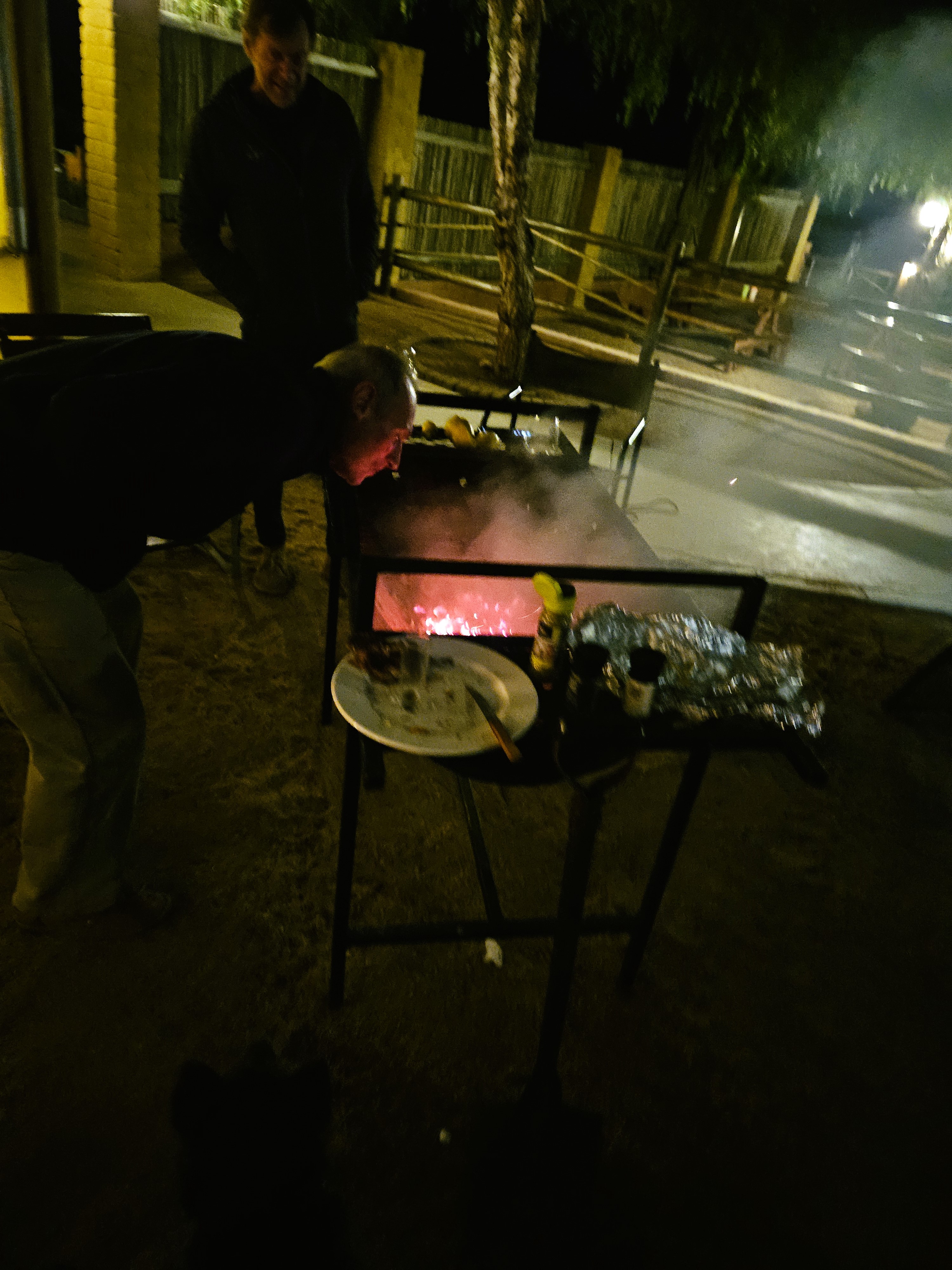 E’ fantastico poter stabilire una connessione intorno a un braciere con persone di cui non sai nulla ma che emanano un calore umano incontestabile. E’ una connessione immediata, spontanea, favorita di certo dal vino ma anche dalla nostra naturale predisposizione a condividere. Viaggiare non avrebbe senso se non potessimo vivere momenti simili, sarebbe un atto fine a se stesso. Fra l’altro ci offrono un vino eccezionale proveniente dalla regione sudafricana di Stellenbosch, una zona non troppo distante da Cape Town, che io e Franci visitammo anni addietro, proprio per degustare i prodotti locali.