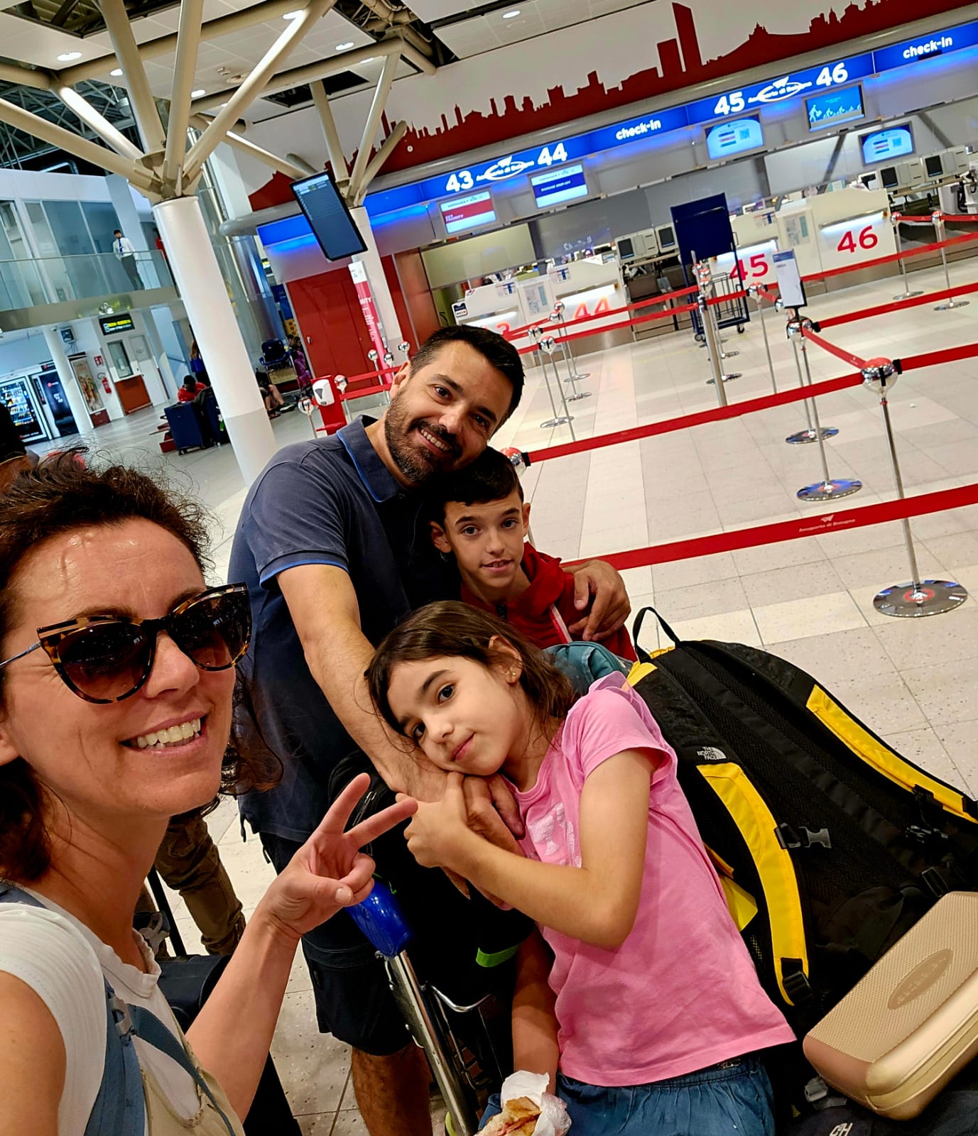 Mi accorgo che dobbiamo rifare tutti i controlli. Prima i documenti, poi di nuovo i controlli di sicurezza già sostenuti a Bologna. Vai a capire perché. La brutta sorpresa è che c’è un muro di gente in fila davanti a noi e solo due check point aperti. La fila non scorre e così forziamo, insieme ad altri ritardatari, l’ingresso di lato. Provo a spiegarmi con gentilezza, ma il nervosismo regna sovrano fra le persone in attesa. Alla fine riusciamo ad anticipare (di poco) i controlli, davanti a noi troviamo persone molto anziane e difficili da posizionare e controllare.