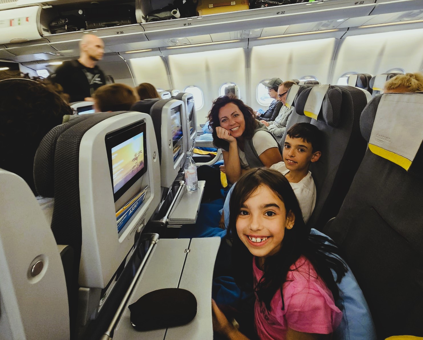 Arriviamo al gate, che apre pochi istanti dopo. Entriamo in aereo immediatamente grazie alla priorità che i figli minori rappresentano. Ci piazziamo tutti e 4 in una fila delle file centrali. Mangiamo qualcosa, mettiamo su un film per poi addormentarci uno sull’altro. Mi trasformo rapidamente nel cuscino di Iri e capisco subito che sarà dura dormire per me, ma provo a prendere con leggerezza il poco sonno che verrà, dato che quella sarà la notte che ci condurrà in Africa.