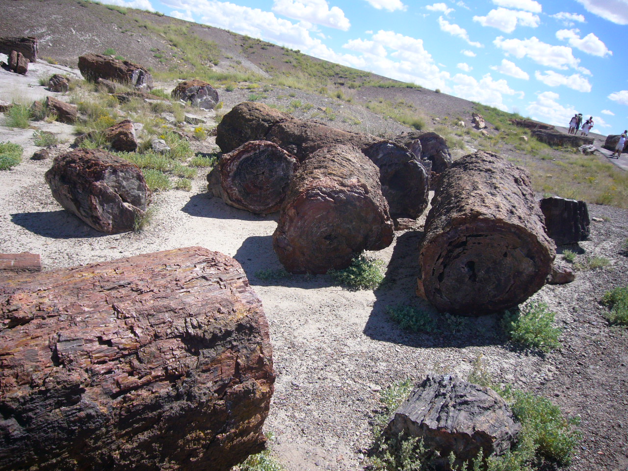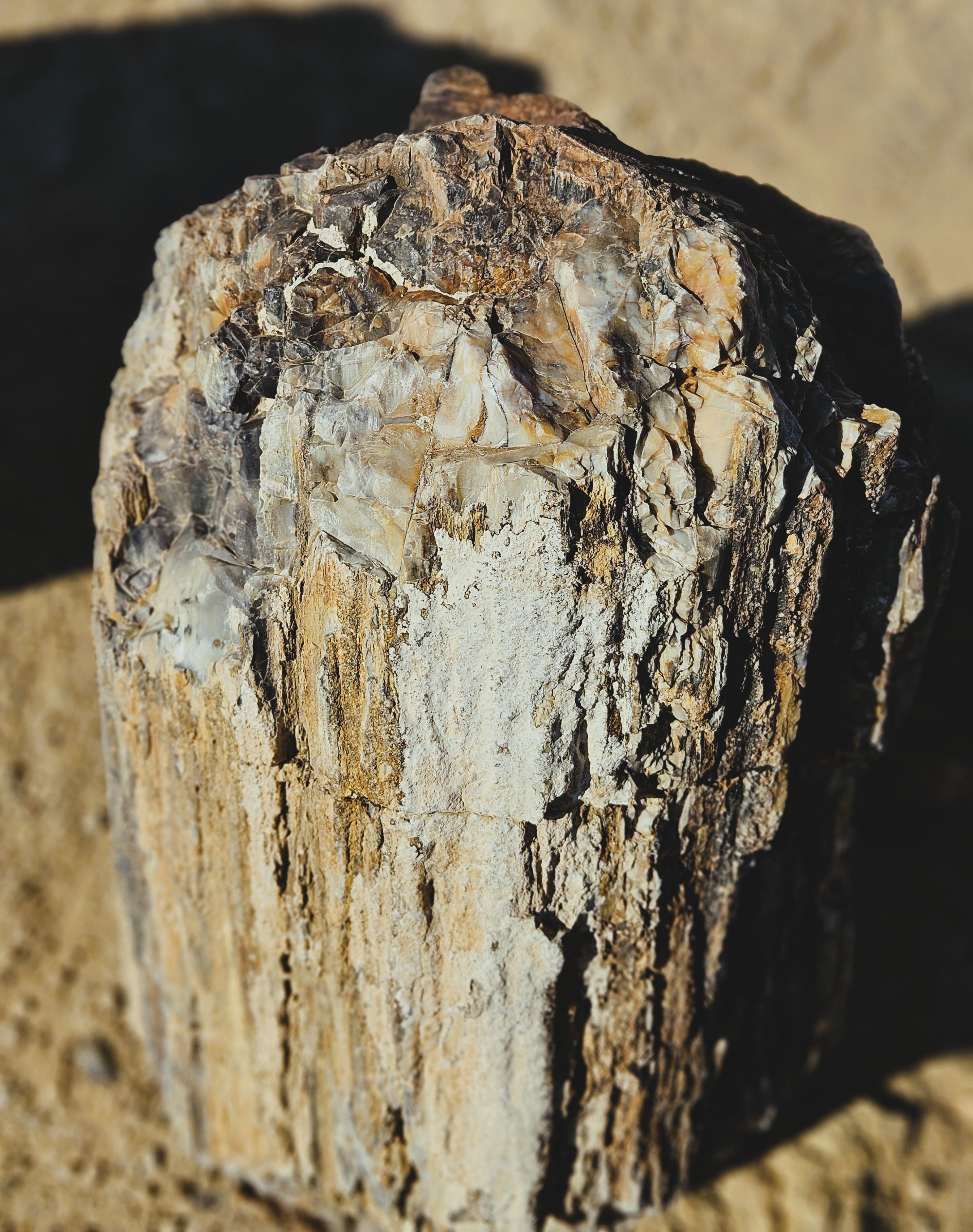 Oggi le nostre tappe sono disseminate lungo la C39, una strada sterrata, ma godibile. Dopo un’ora di marcia arriviamo nei pressi della Petrified Forest. I tronchi fossili che vi sono conservati risalgono a milioni di anni or sono, deposti da canali fluviali che da questo lato del tempo possiamo soltanto immaginare. Non sono molti, ma due di essi misurano fino a quarantacinque metri e hanno mantenuto la foggia originaria, nonostante siano in parte frammentati.