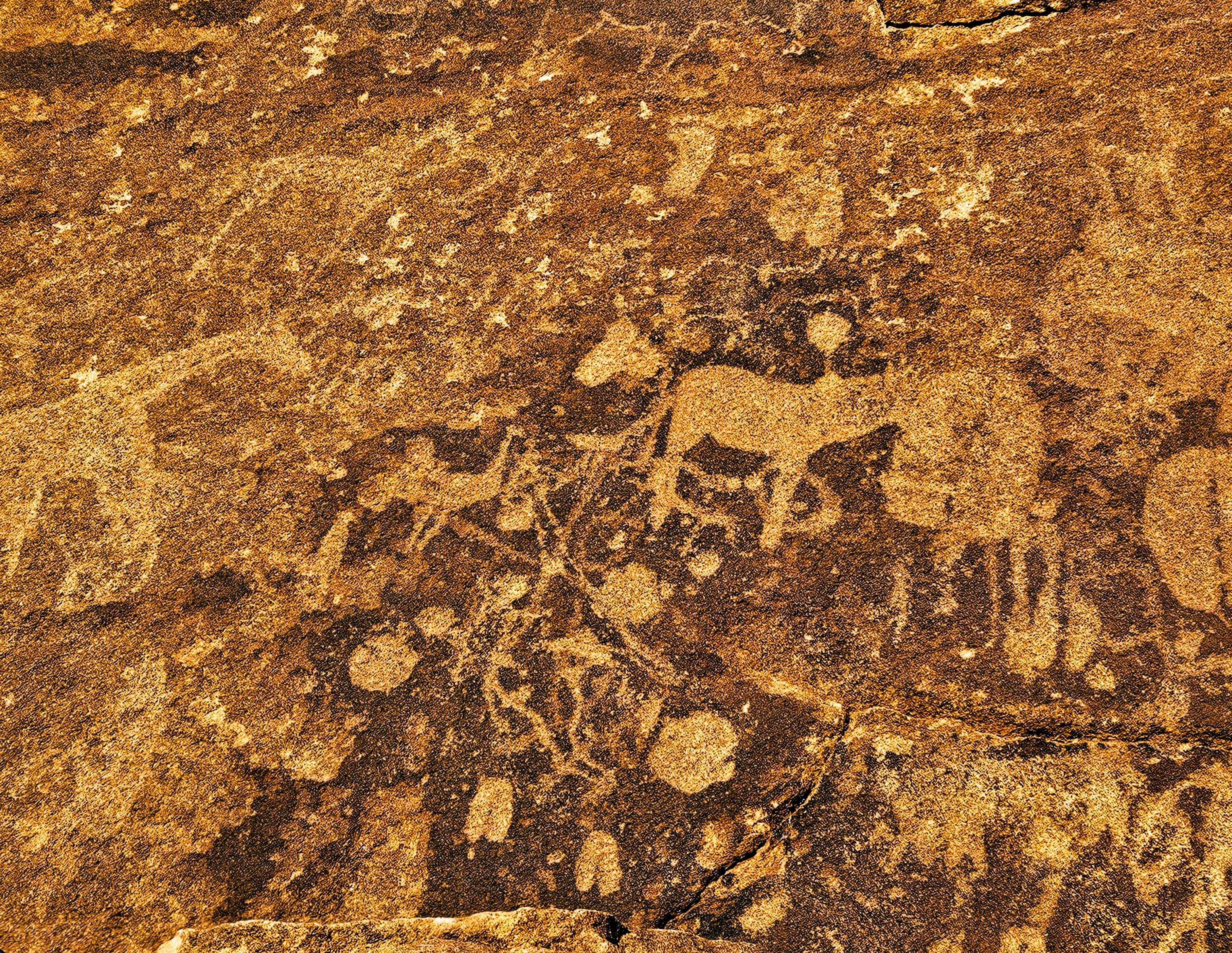 E’ mezzogiorno. Parcheggiamo sotto un telo di stoffa leggera ma efficace e in pochi minuti siamo a spasso con la guida di turno. Andiamo alla scoperta dei dipinti rupestri e dei graffiti dell’età della pietra che hanno reso famoso questo posto. Il nome originario della valle è Uri-Ais (“sorgente che zampilla”). I primi coloni bianchi, non trovando traccia della sorgente citata dai Damara, ribattezzarono il luogo Twyfelfontein (“sorgente incerta”). Spesso le cose hanno nomi tanto semplici quanto significativi. E possono mutare al variare di determinate condizioni. Come nel caso di una fonte d’acqua prosciugata.