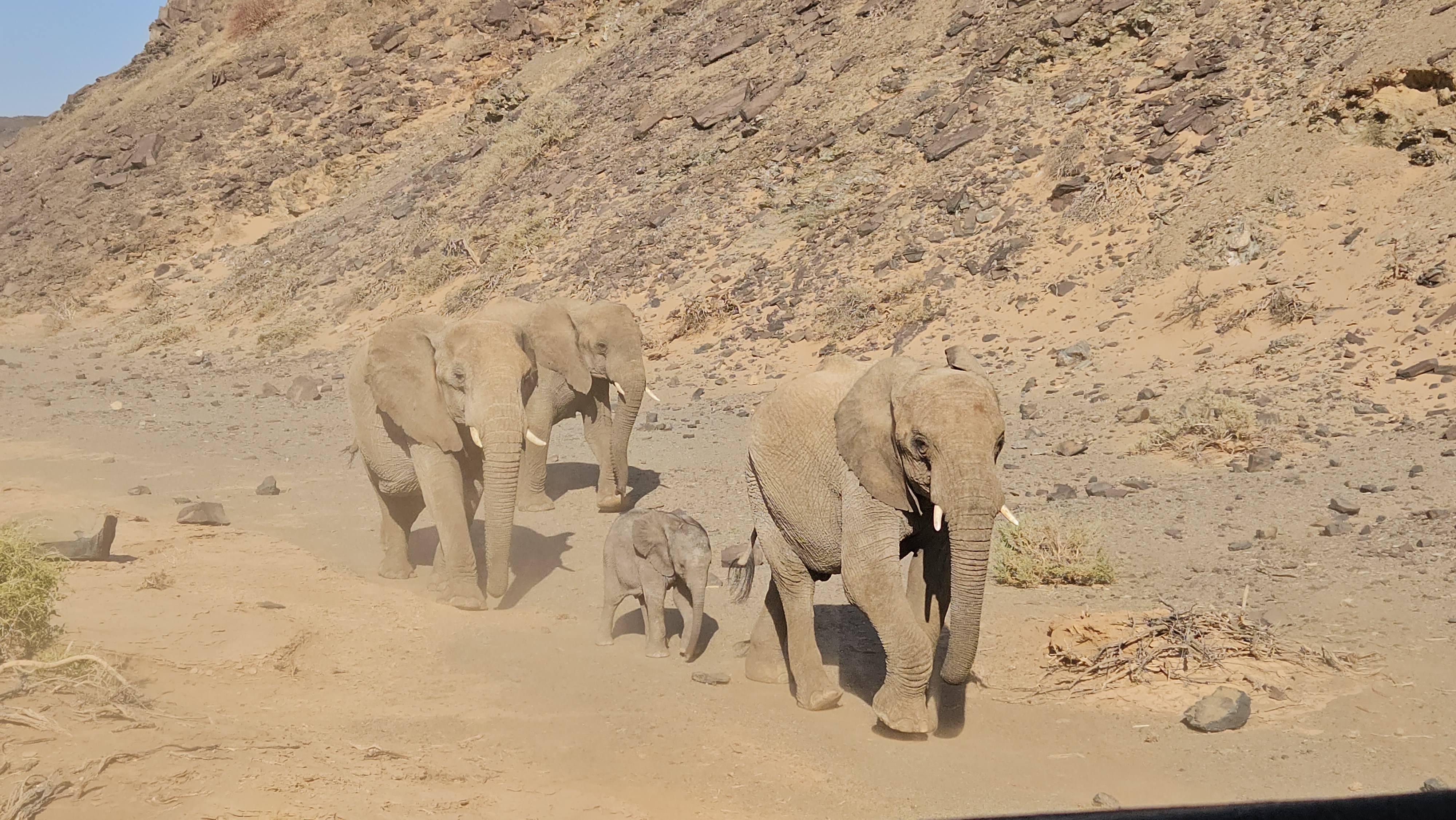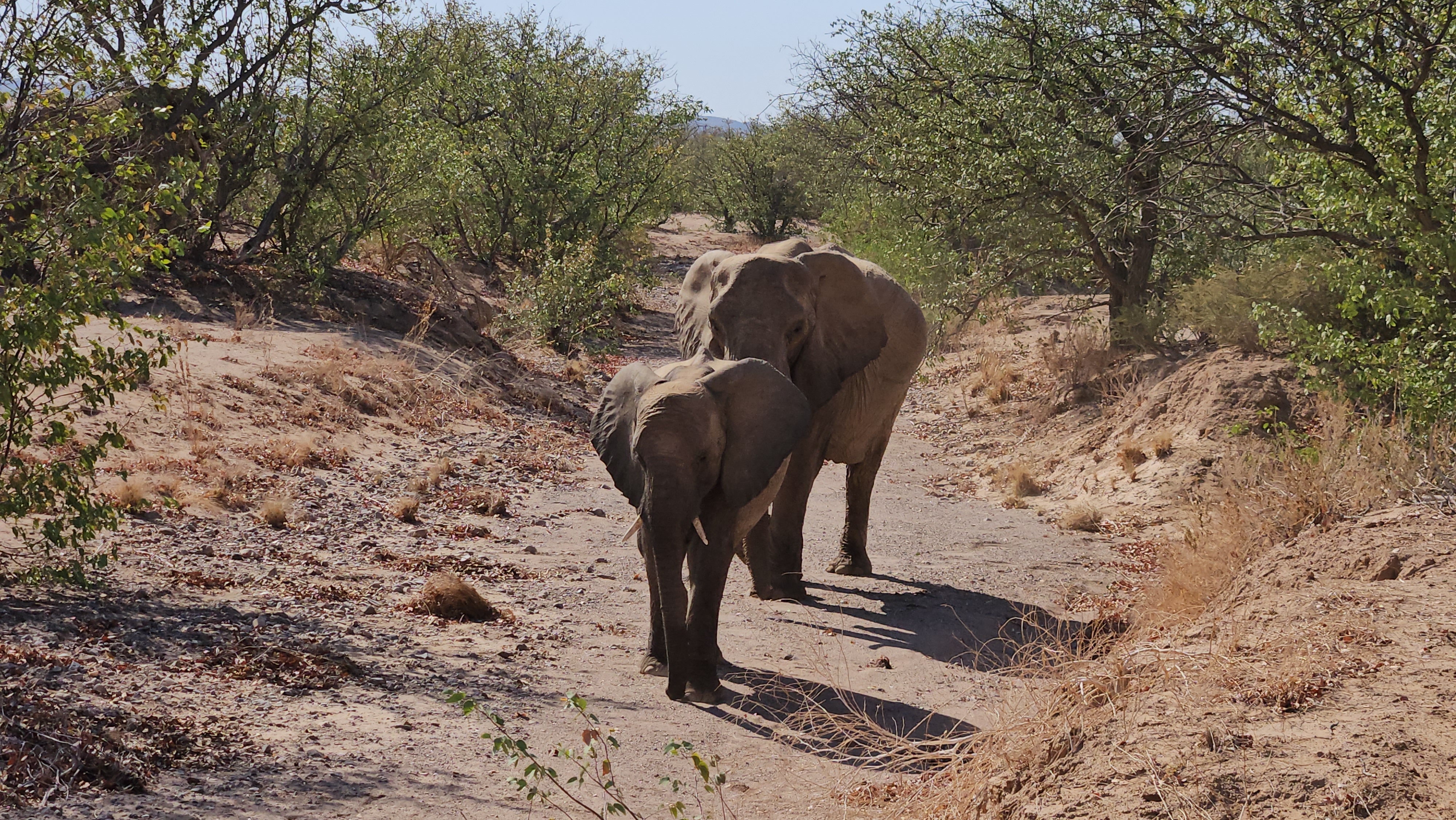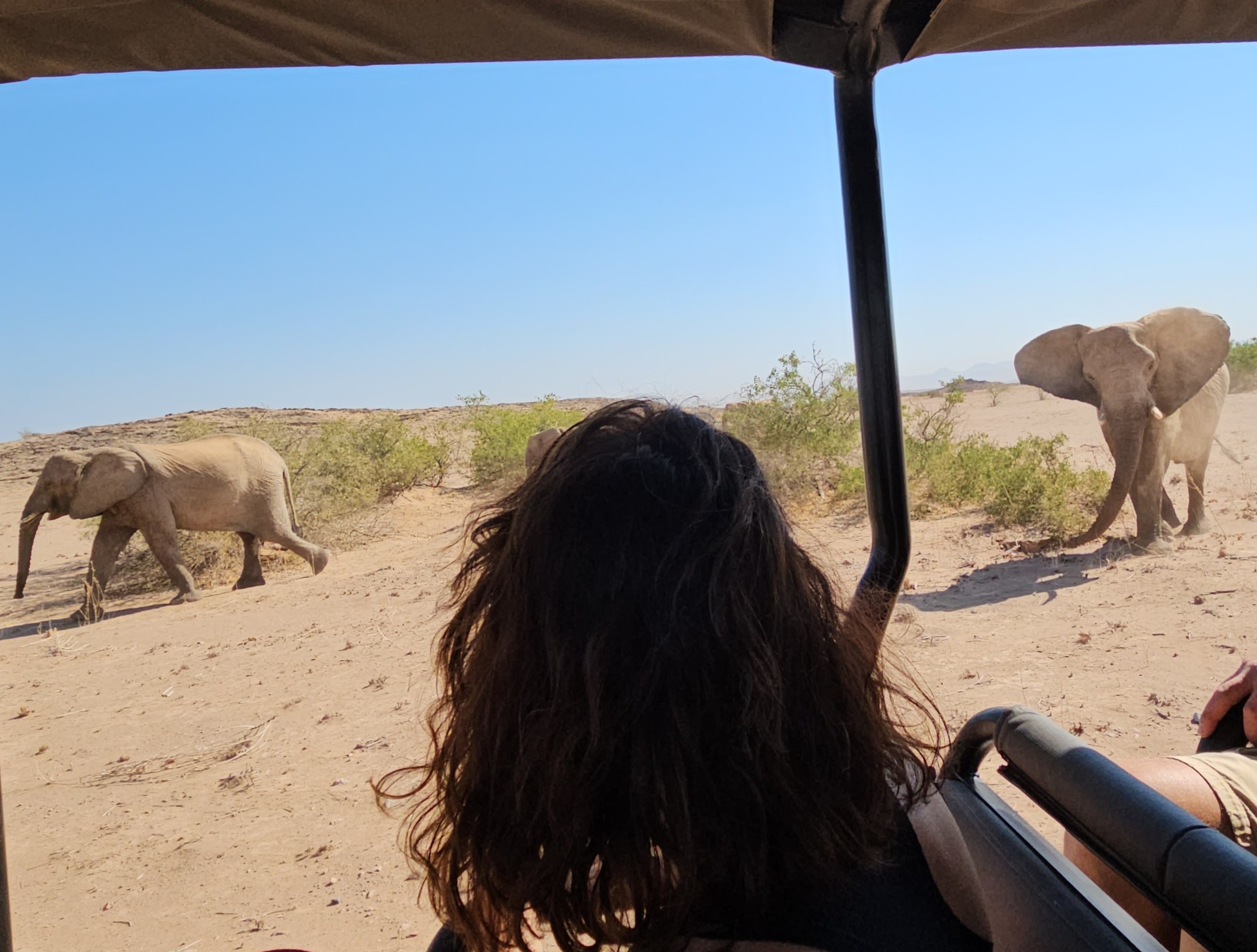 Riusciamo a scamparla, e arriviamo sani e salvi al Twyfelfontein Elephant Drives & Campsite. Ho prenotato un’escursione nel deserto la sera prima. Una signora è lì ad attenderci. Nella zona vivono alcune famiglie di elefanti del deserto. Ho letto da qualche parte che avvistarli sia un’esperienza magnifica, e non ci lasciamo sfuggire l’occasione.