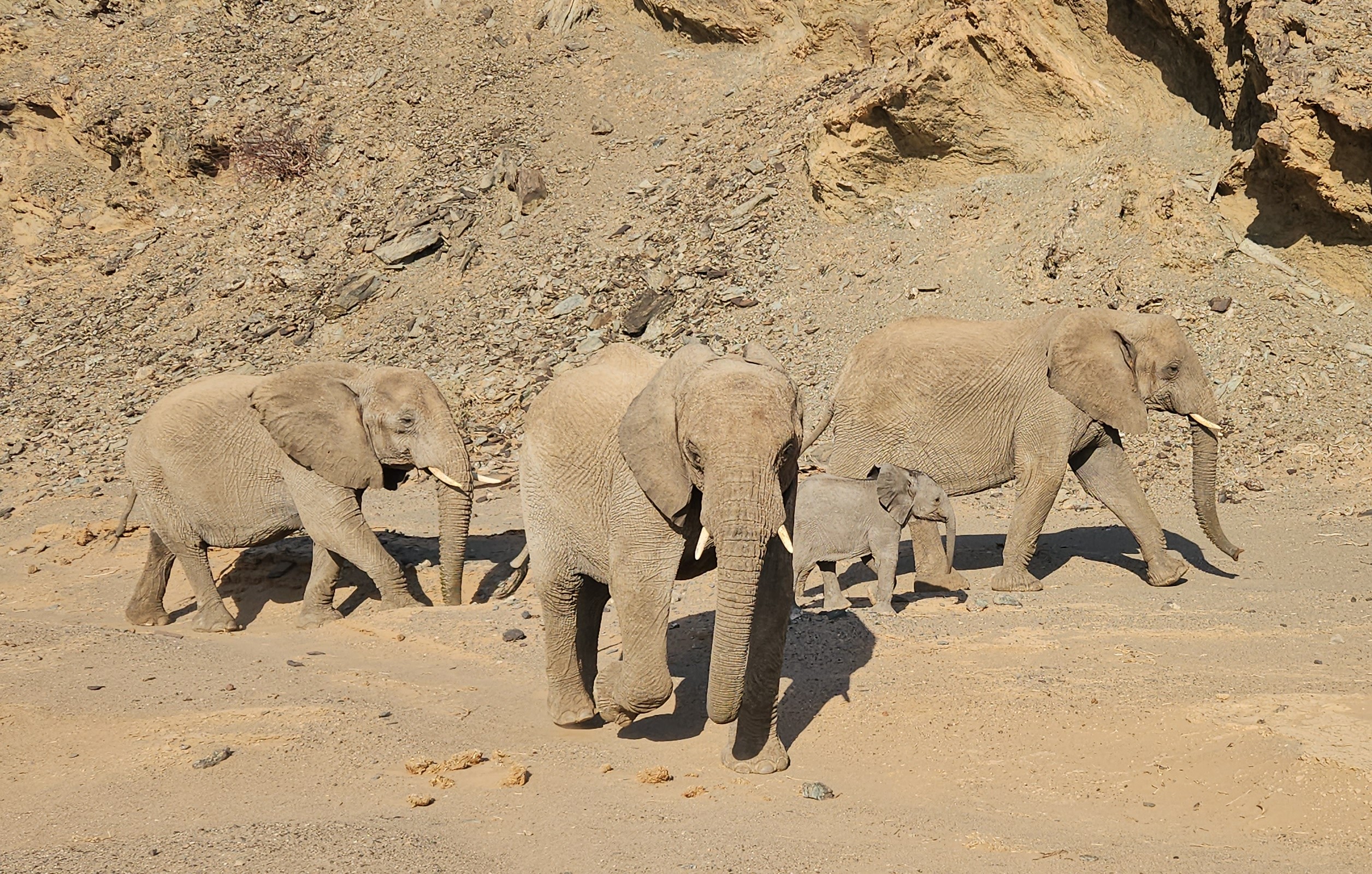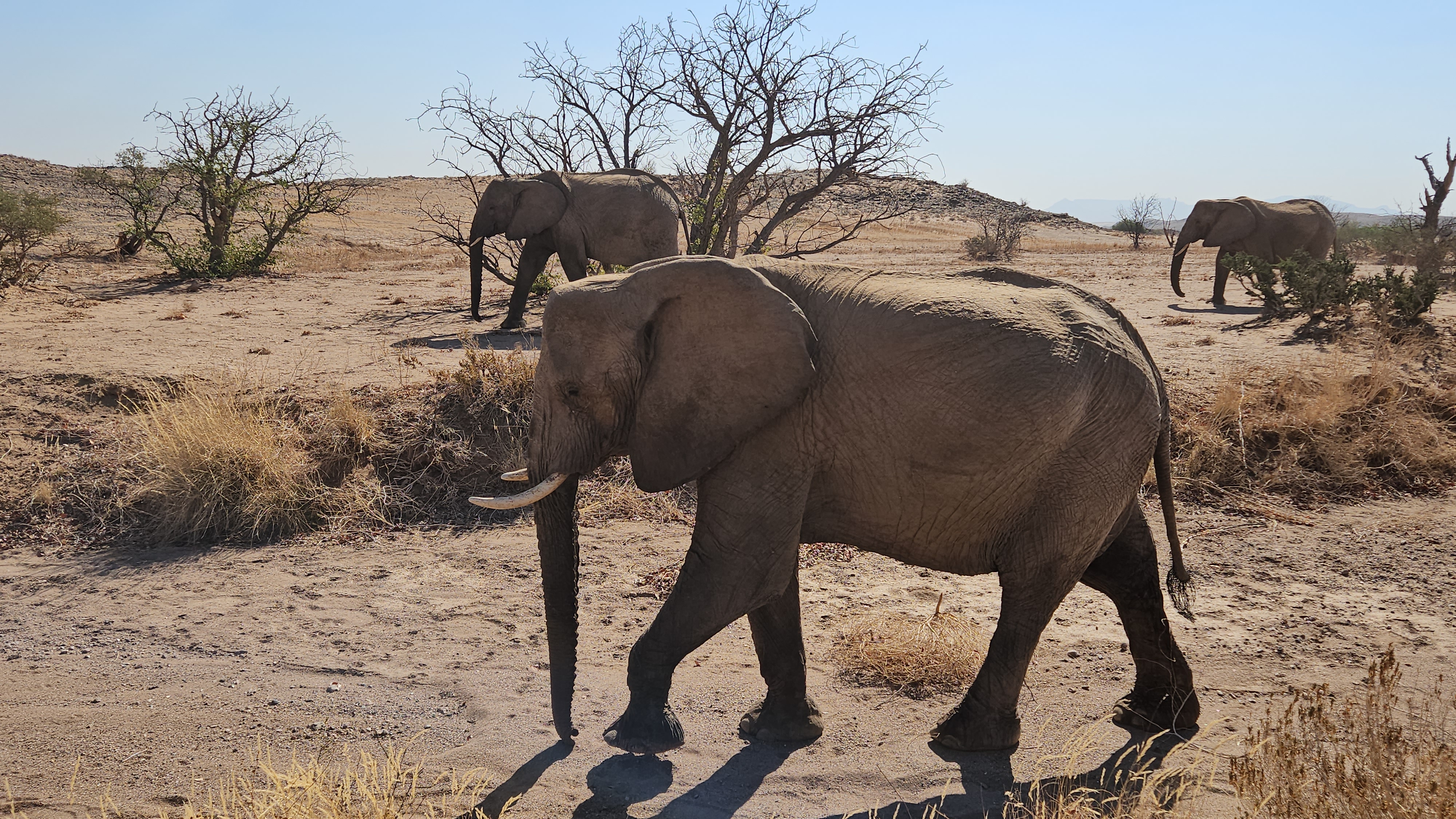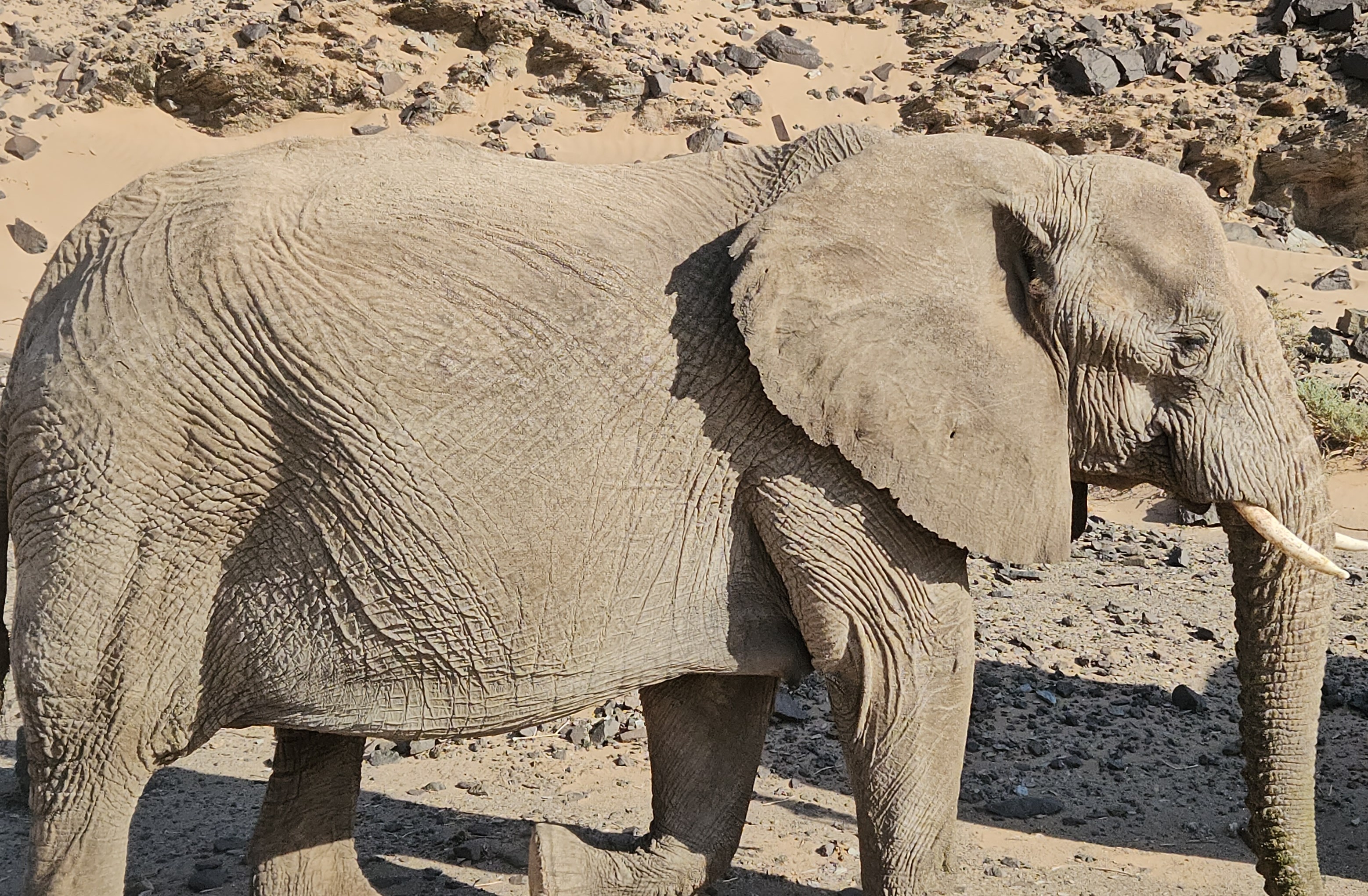 Riusciamo a scamparla, e arriviamo sani e salvi al Twyfelfontein Elephant Drives & Campsite. Ho prenotato un’escursione nel deserto la sera prima. Una signora è lì ad attenderci. Nella zona vivono alcune famiglie di elefanti del deserto. Ho letto da qualche parte che avvistarli sia un’esperienza magnifica, e non ci lasciamo sfuggire l’occasione.