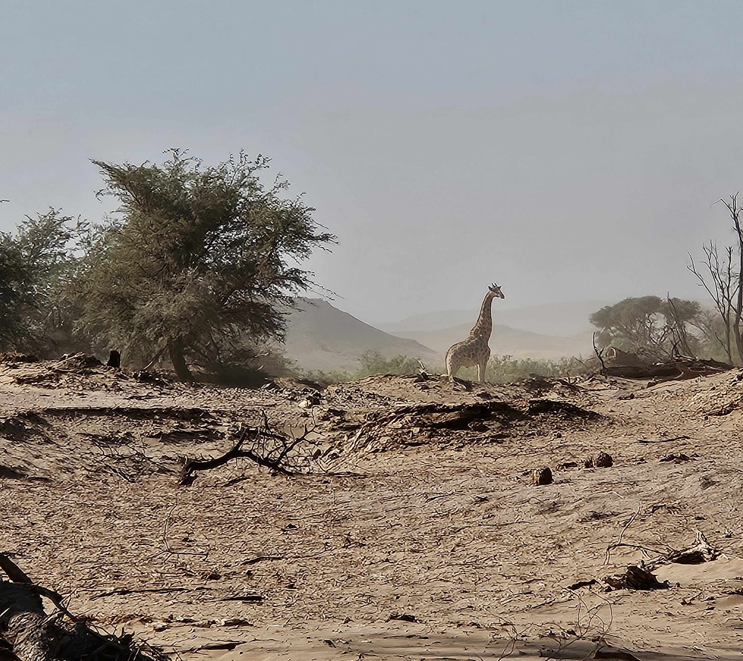 D’un tratto avvistiamo una giraffa, elegantissima e imperturbabile. Non sembra vera, come tutto il resto. Ci osserva curiosa, senza perdere compostezza. E’ un animale spettacolare. Sembra scivolare via davanti ai nostri occhi, tanto i suoi passi sono aggraziati e leggeri. Si è alzato il vento e la sabbia si solleva in leggeri mulinelli che danzano in controluce attorno al corpo della giraffa. Le colline perdono consistenza in lontananza. Sembra una magia, un frammento unico in cui il tempo si spezza e tutto tace alla vista di siffatta bellezza.