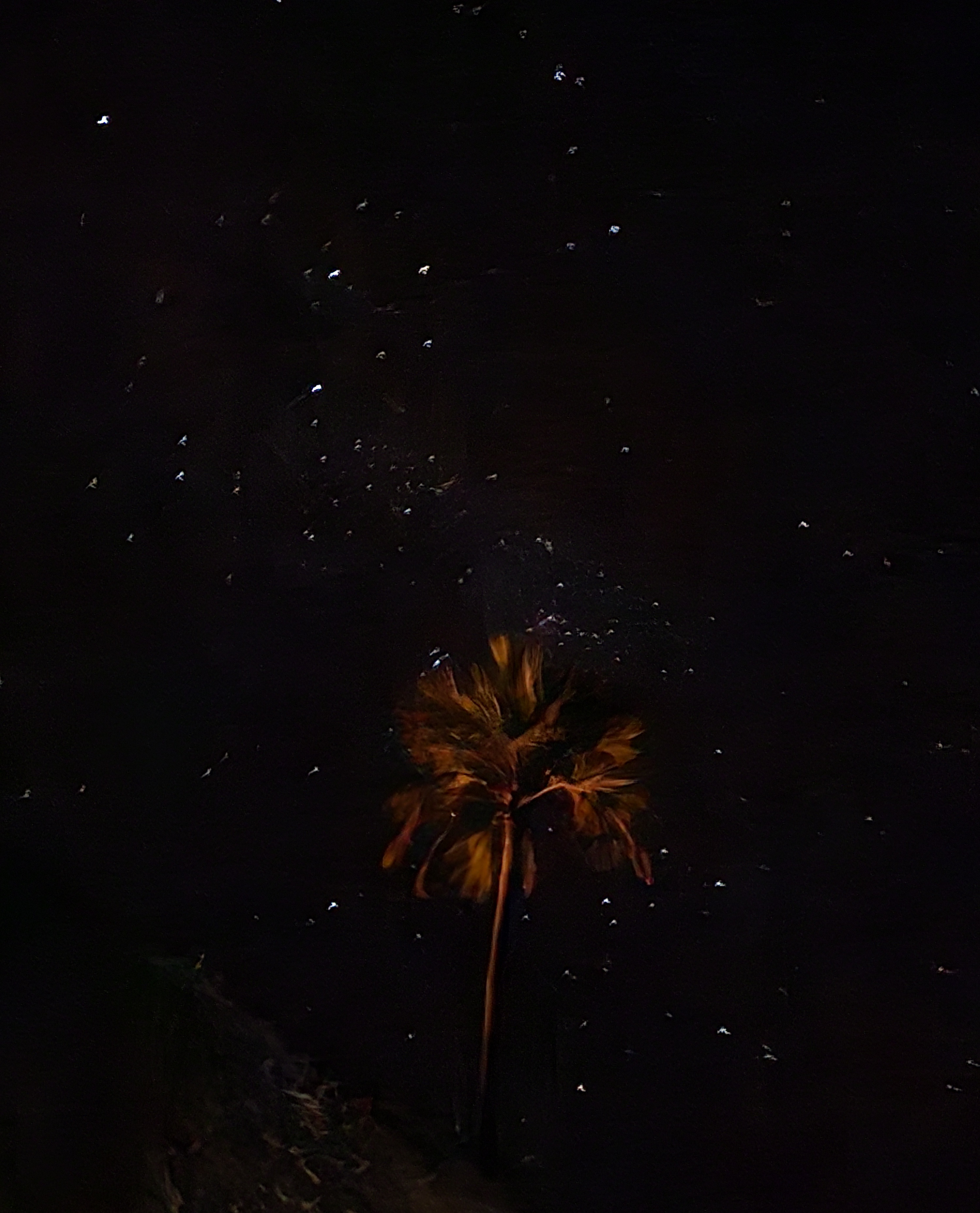 Facciamo due passi e poi ci ritiriamo. Prima di rientrare osservo la chioma di una palma lattea che si staglia nella notte nera, con miriadi di stelle a far festa tutto intorno, lungo le distese interplanetarie.