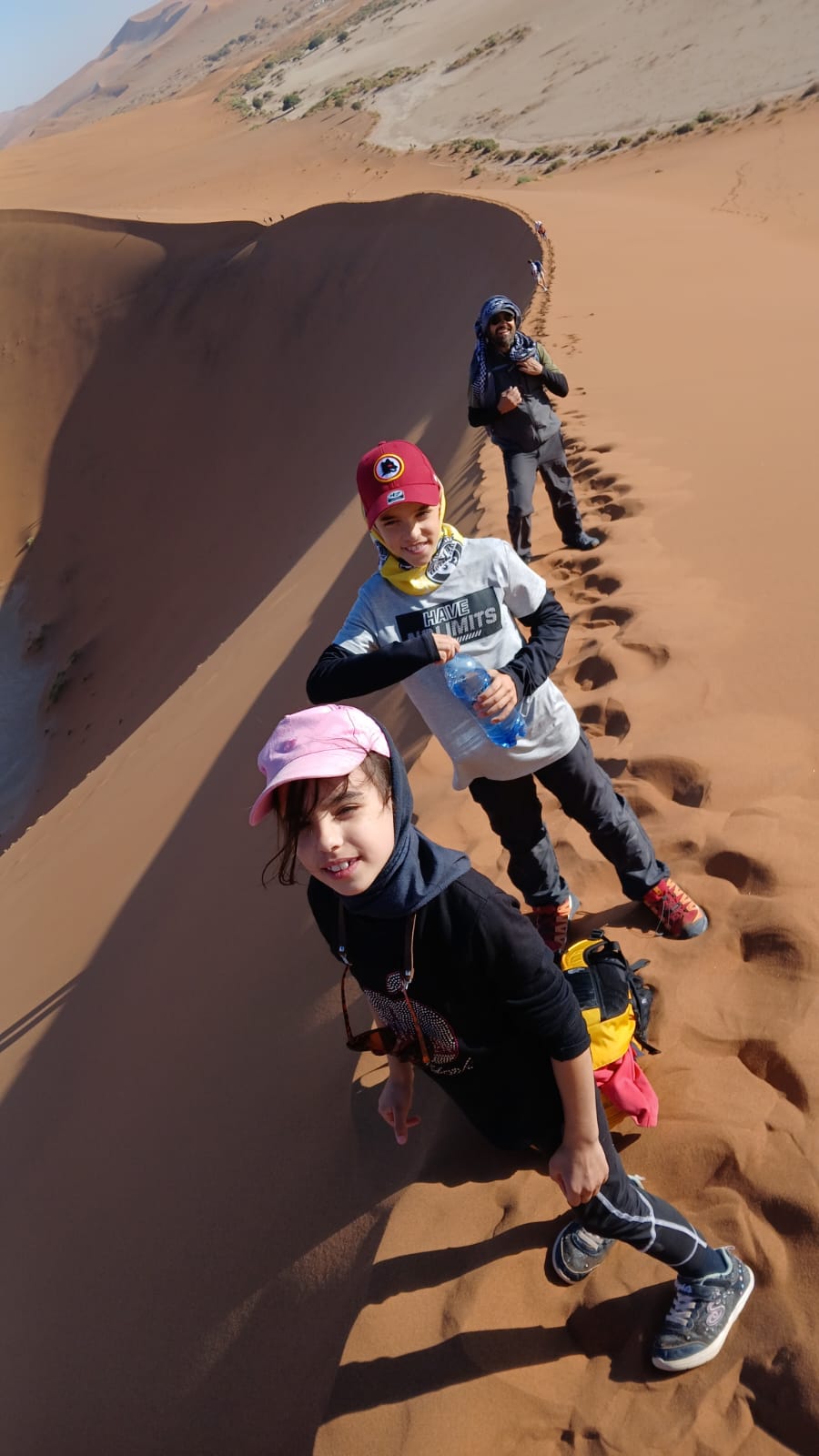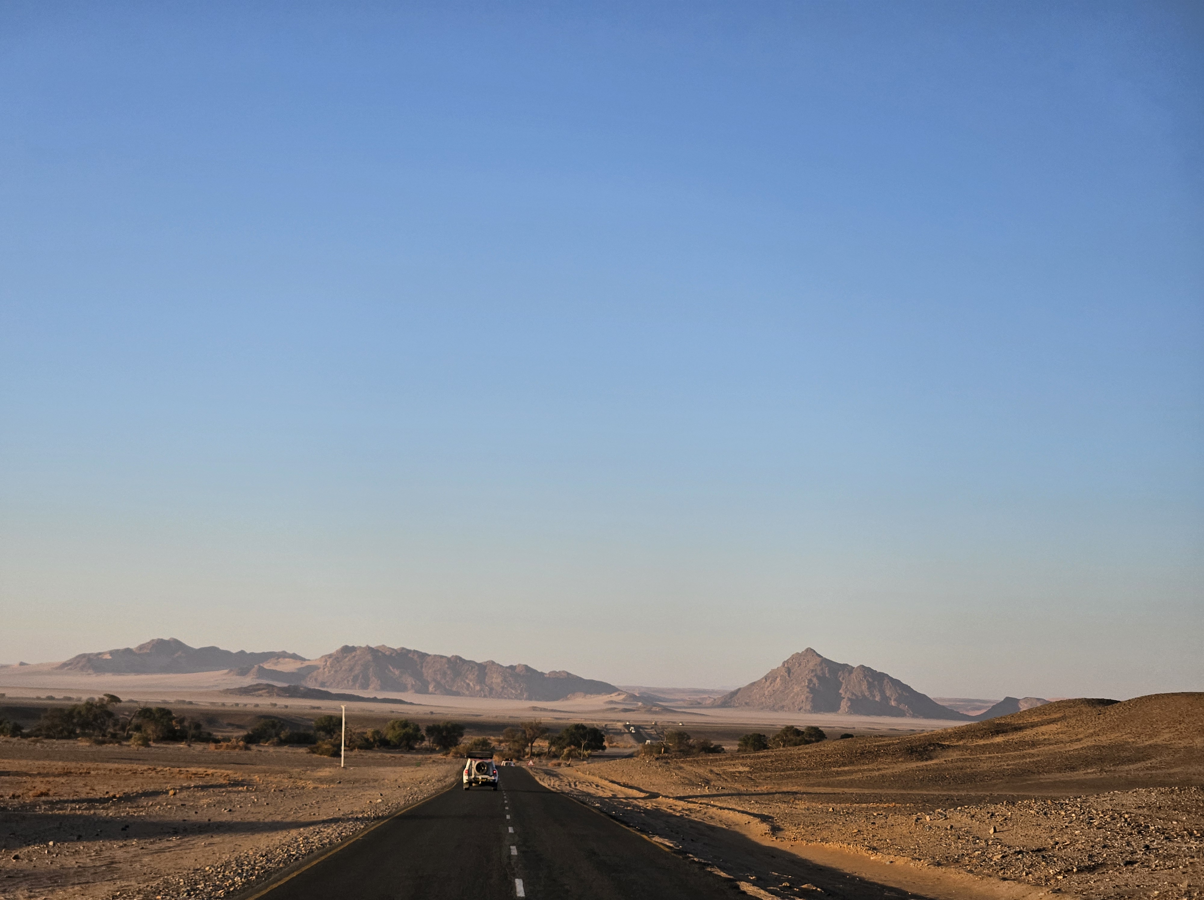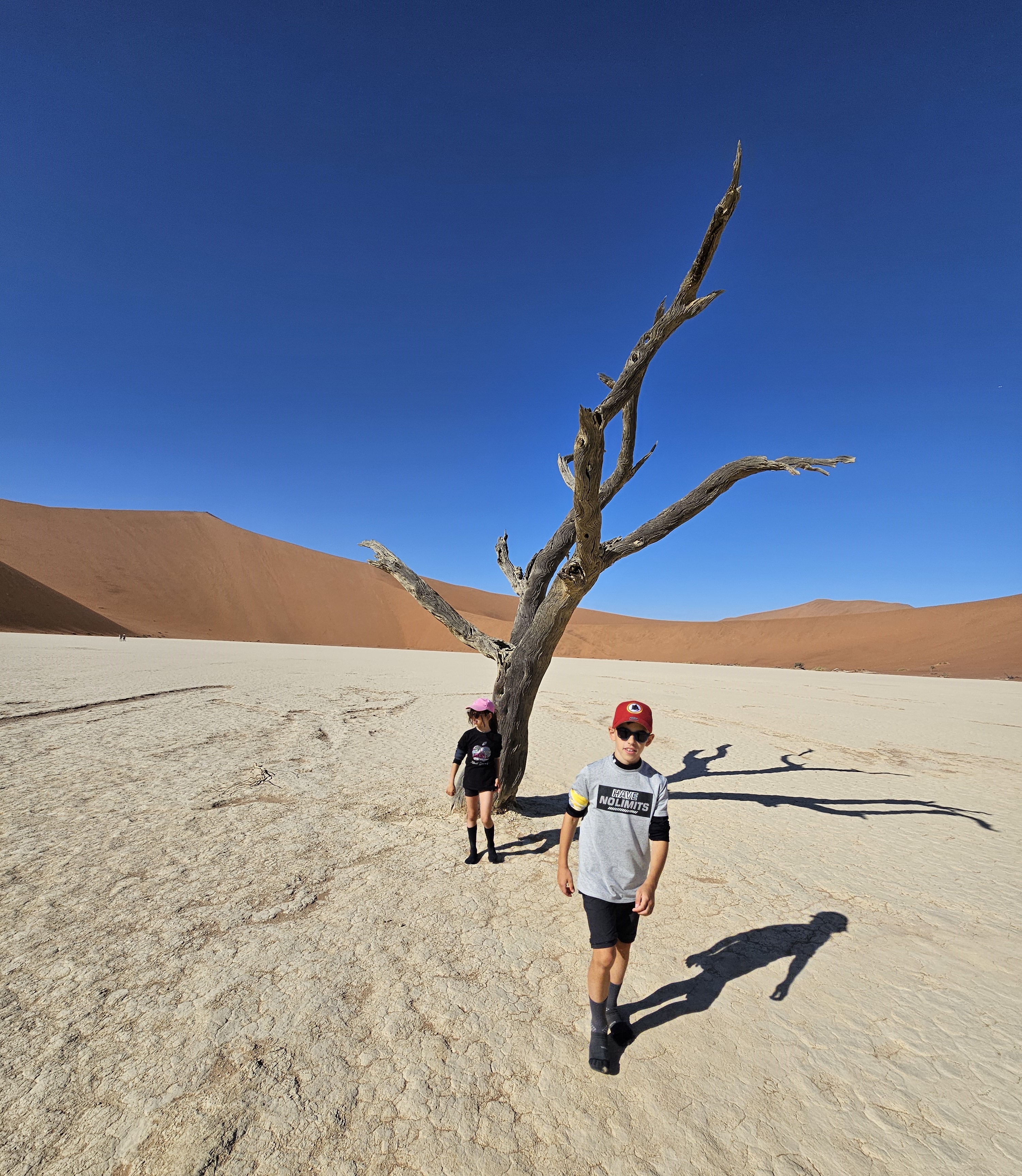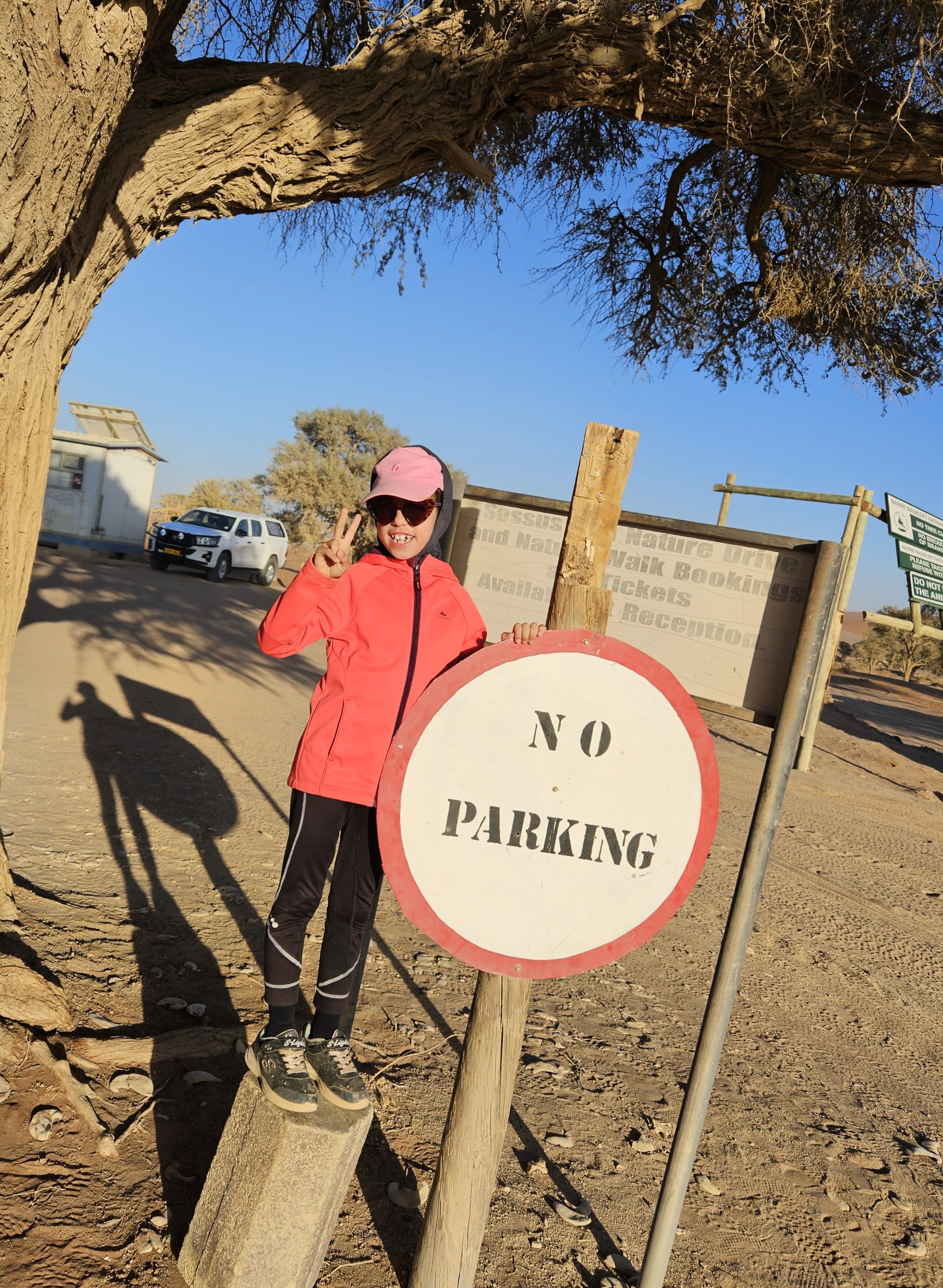Ci fermiamo in prossimità di un cartello di legno che sancisce l’ingresso al Namib Naukluft Park. Penso al fatto che il giorno prima eravamo nello stesso parco, a cavallo delle dune che si trovano nell’entroterra, a centinaia di km da lì, e a quanto sia esteso quel deserto immane. La sosta serve per bere una bibita e per adunarsi. Una graziosa bimba francese si avvicina ai miei e subito scatta l’intesa istintiva che spesso sboccia fra ragazzini: privi come sono delle sovrastrutture tipiche del mondo dei grandi, i bambini hanno una predisposizione naturale a instaurare una concordanza tale da vanificare ogni barriera linguistica.