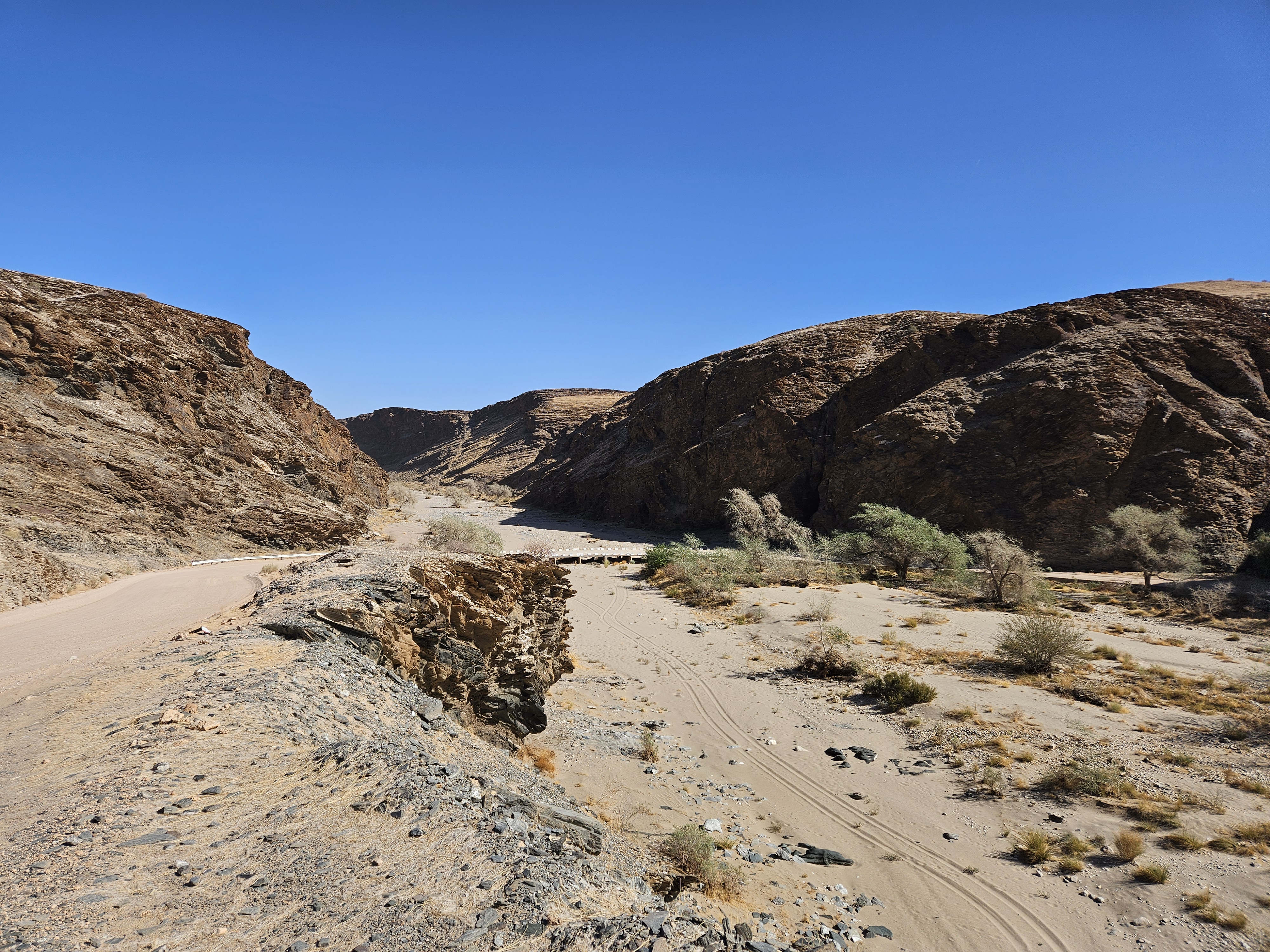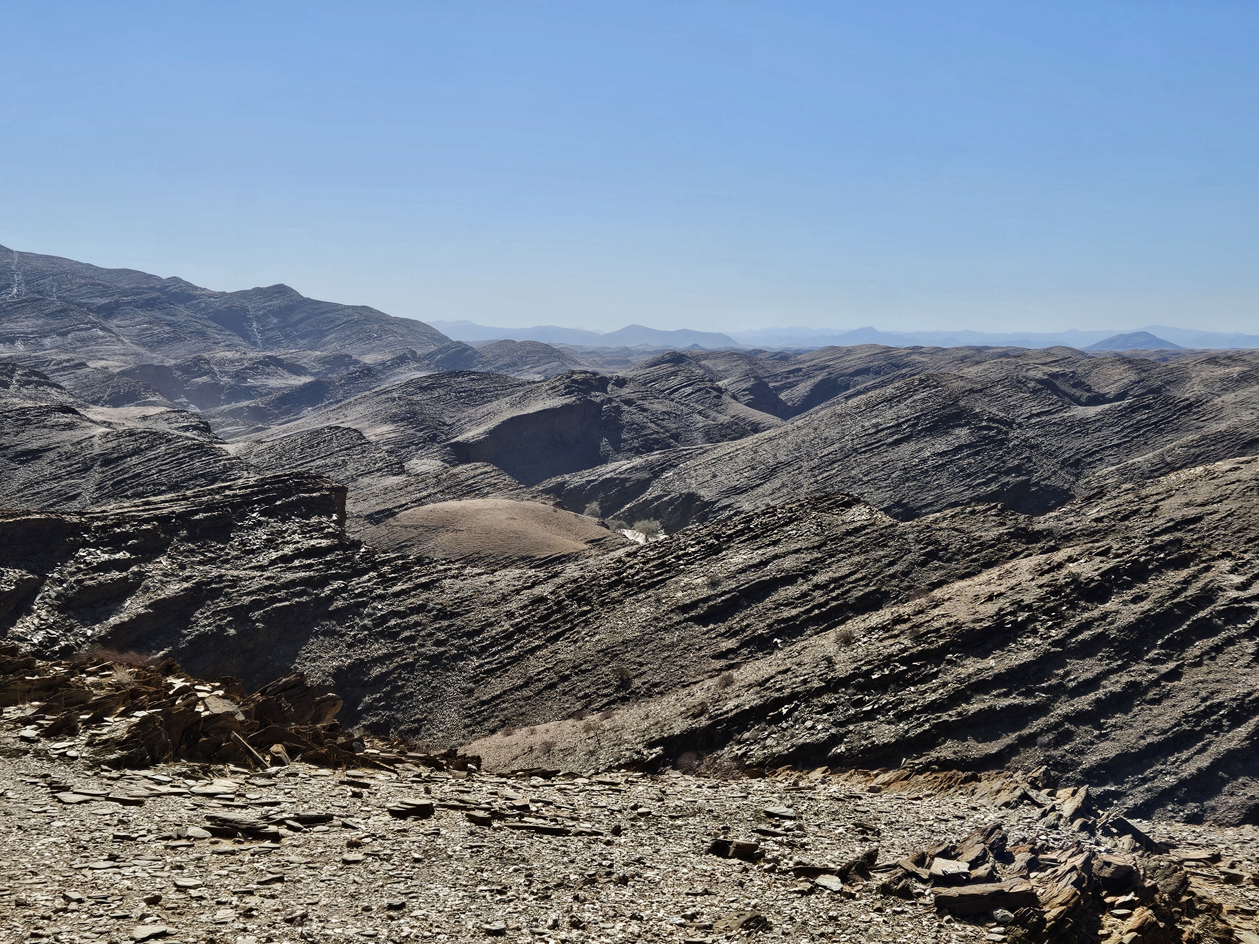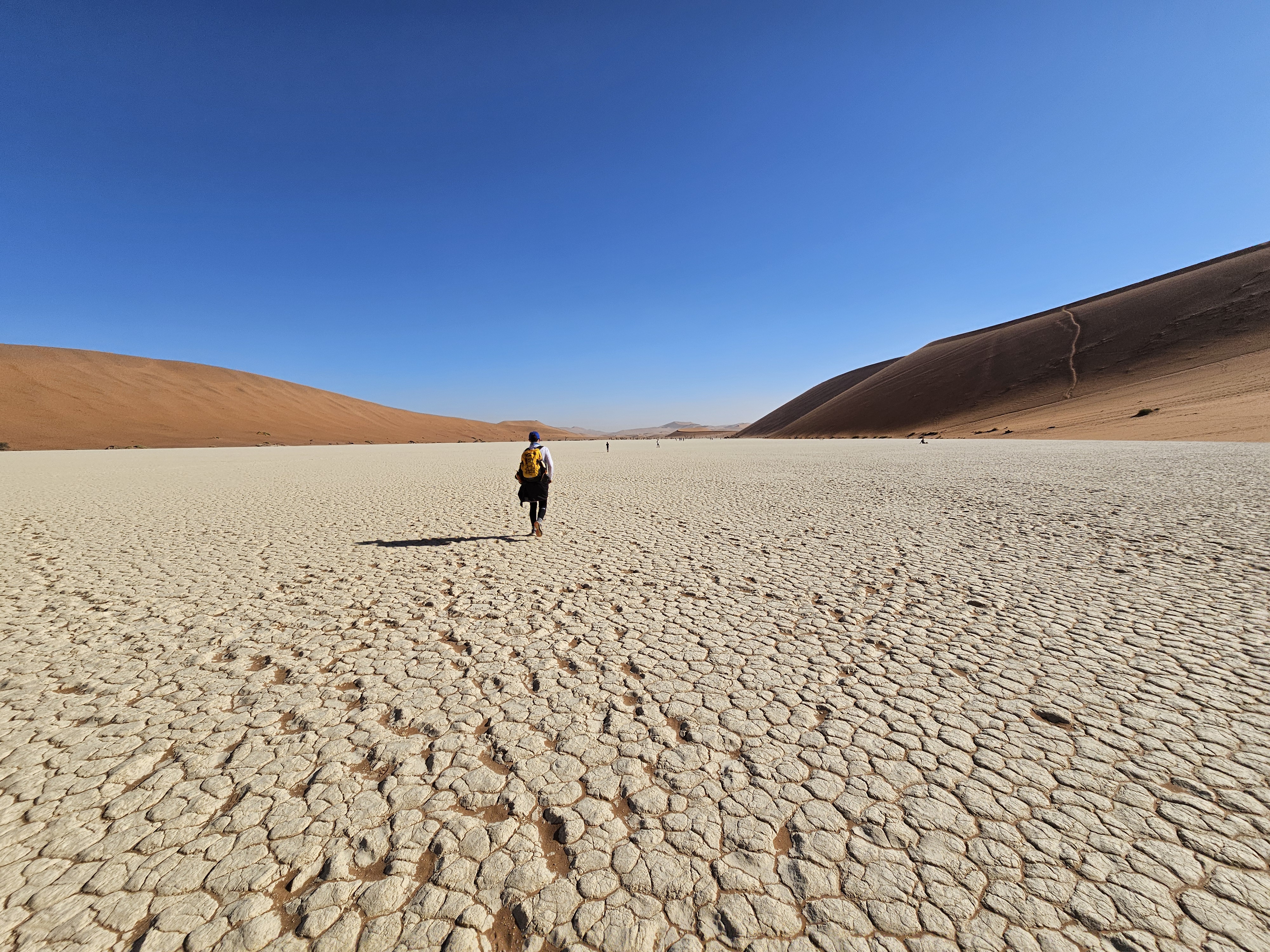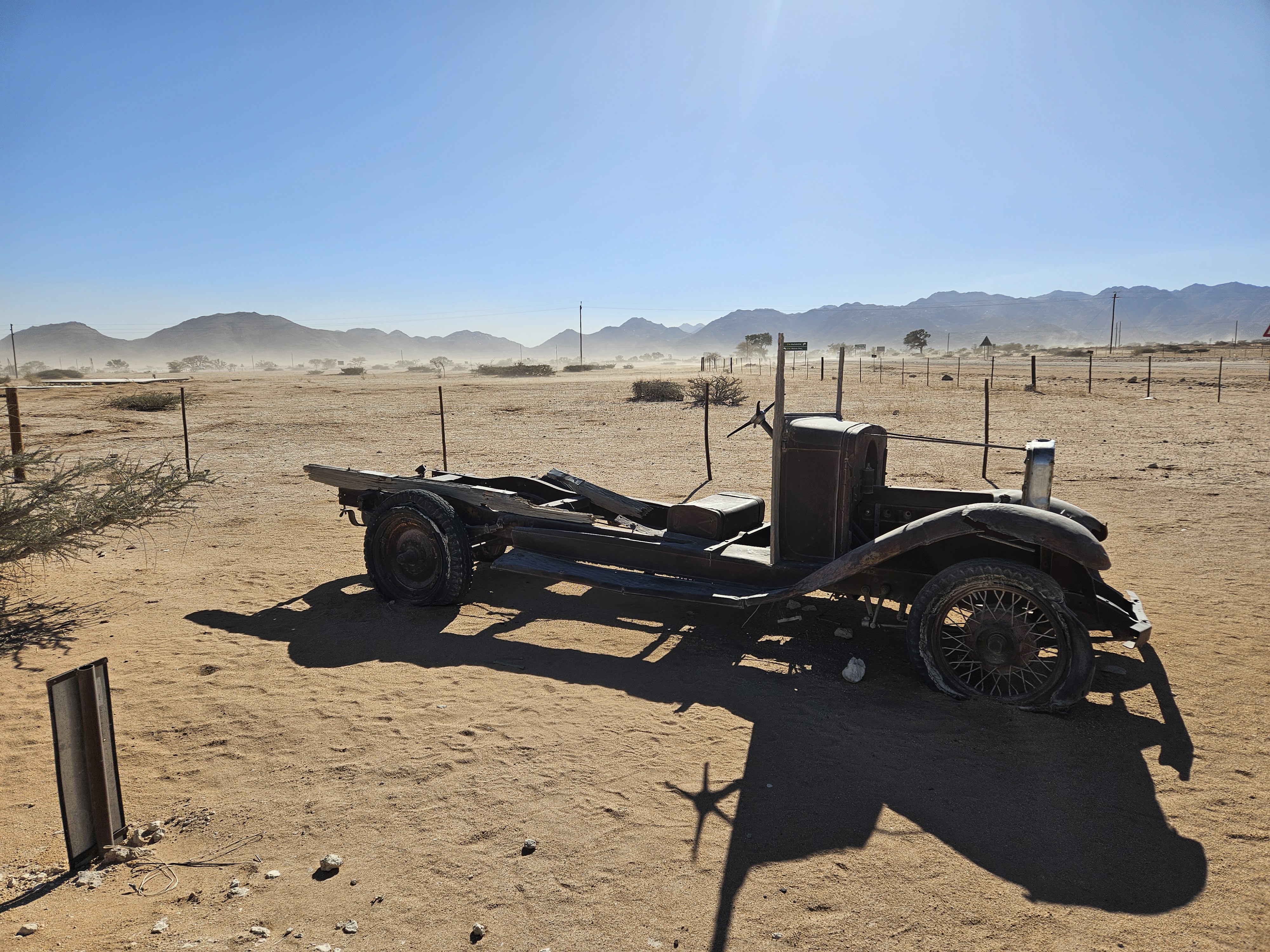 Ci fermiamo in prossimità di un cartello di legno che sancisce l’ingresso al Namib Naukluft Park. Penso al fatto che il giorno prima eravamo nello stesso parco, a cavallo delle dune che si trovano nell’entroterra, a centinaia di km da lì, e a quanto sia esteso quel deserto immane. La sosta serve per bere una bibita e per adunarsi. Una graziosa bimba francese si avvicina ai miei e subito scatta l’intesa istintiva che spesso sboccia fra ragazzini: privi come sono delle sovrastrutture tipiche del mondo dei grandi, i bambini hanno una predisposizione naturale a instaurare una concordanza tale da vanificare ogni barriera linguistica.
