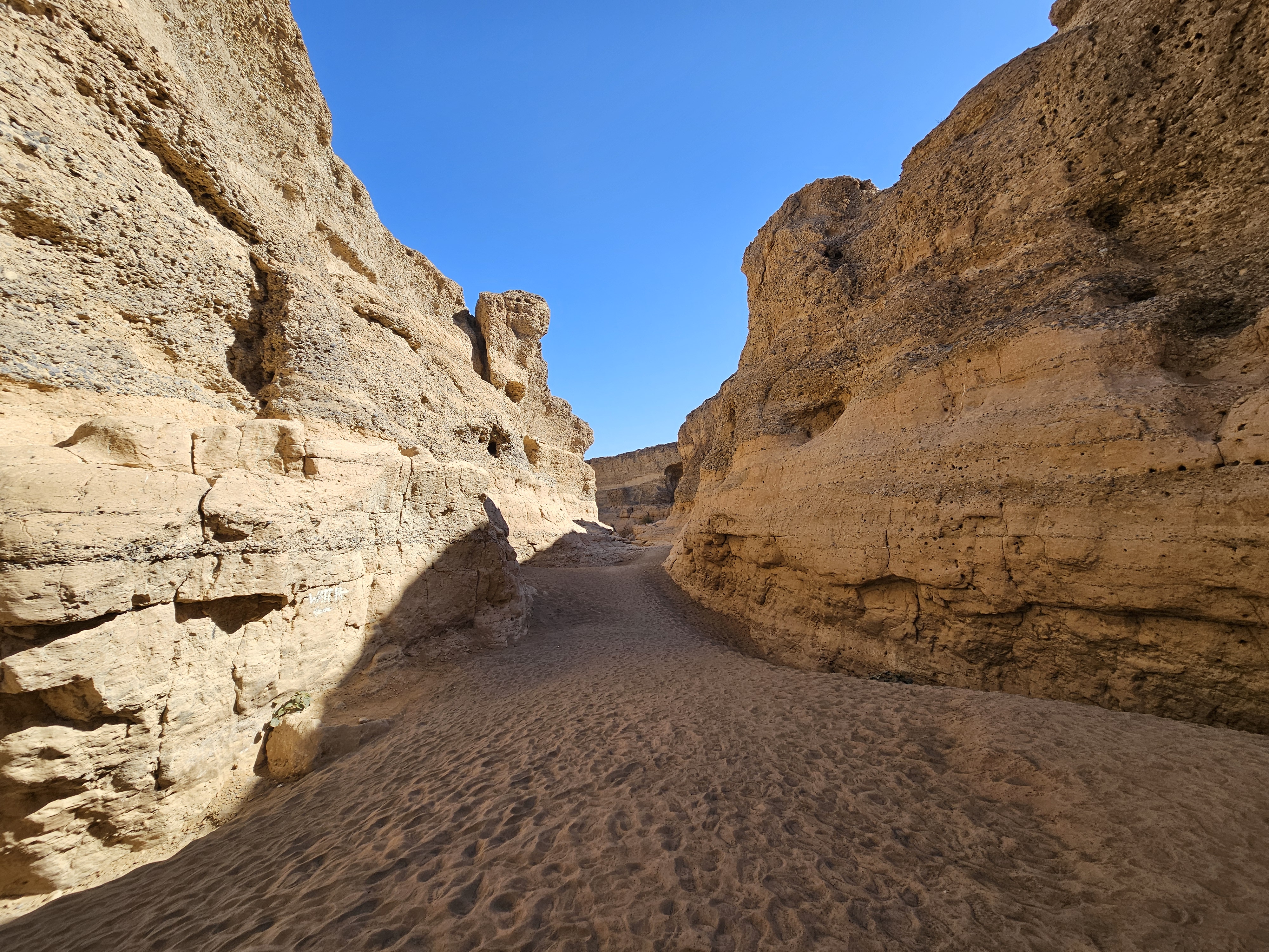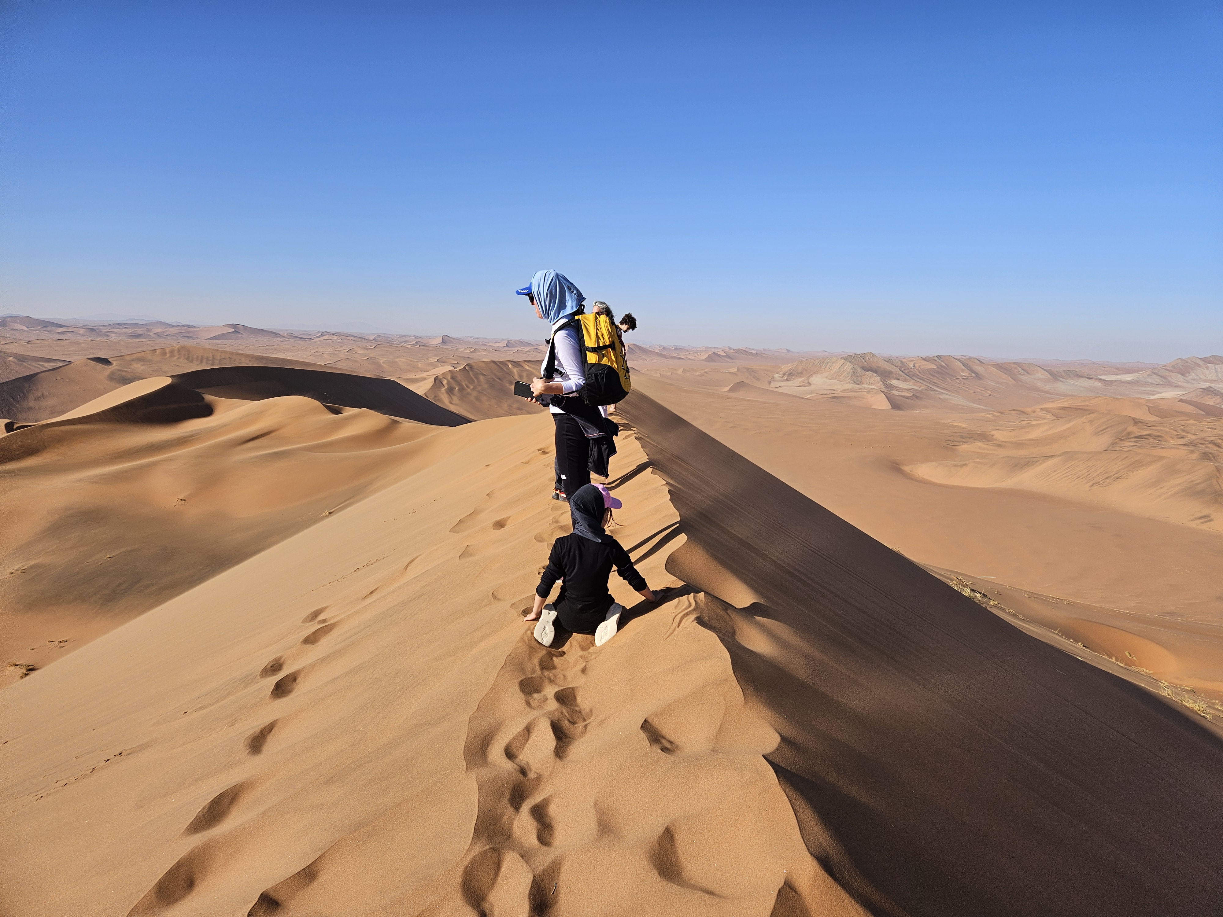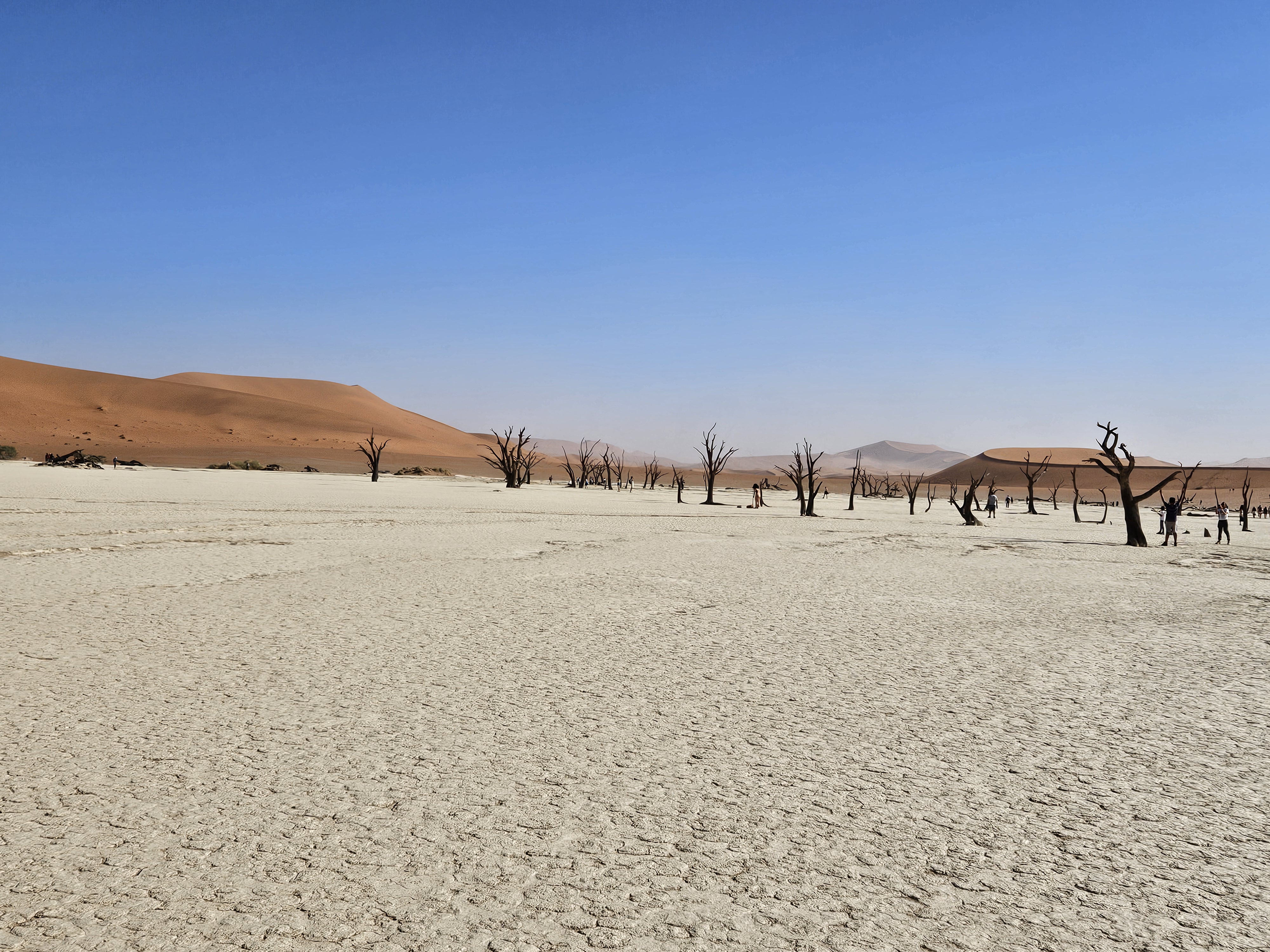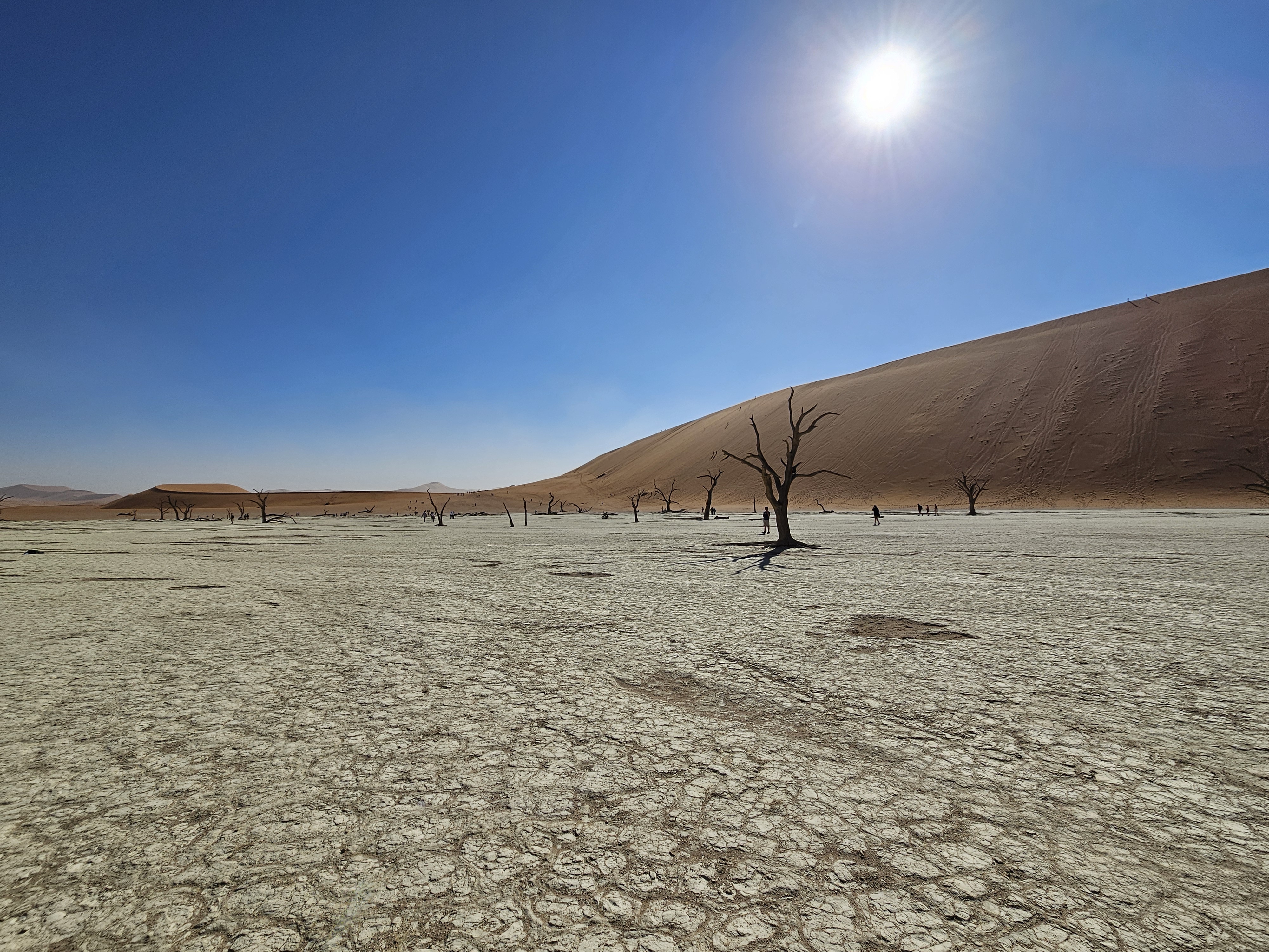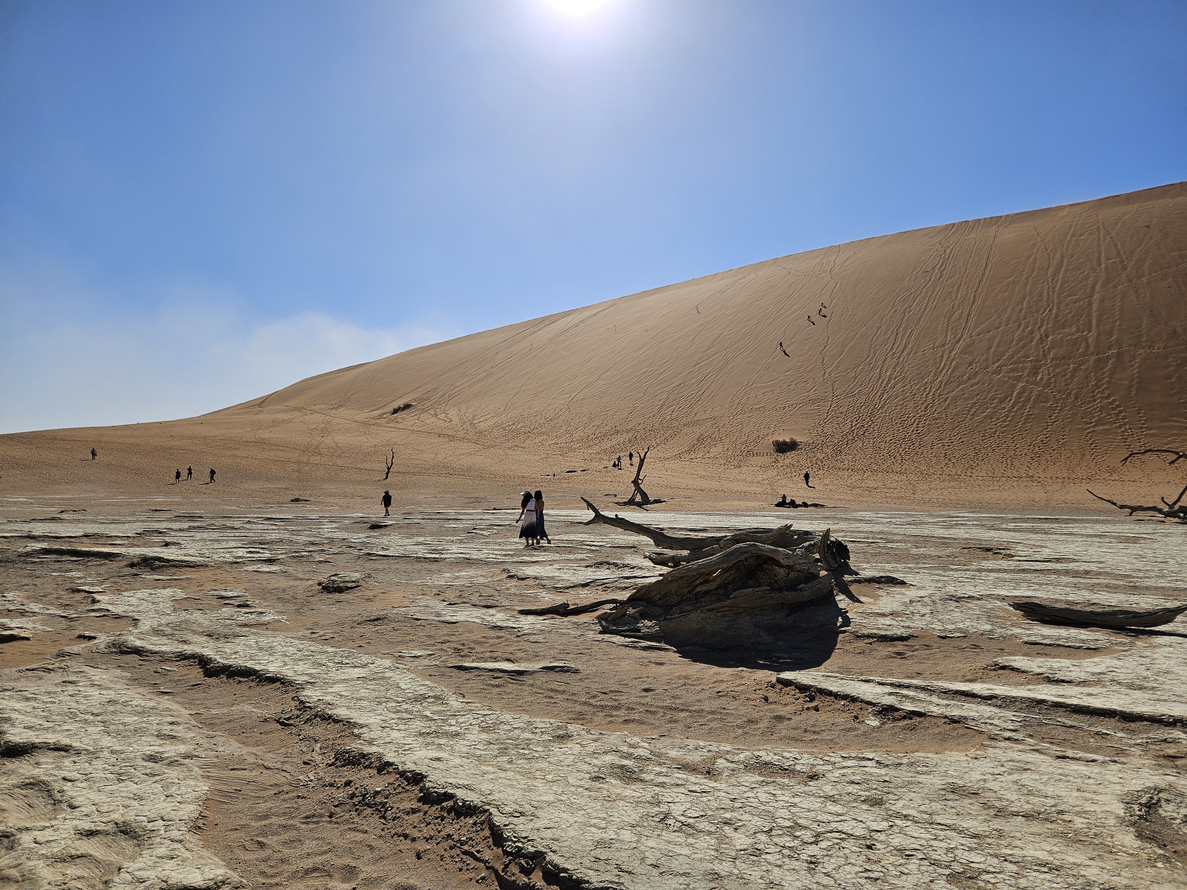 Torniamo al nostro appartamento e alle 12 l’addetta alla reception ci chiama. Un cowboy ci attende a bordo di un fuoristrada. Il suo nome è Andrew Strauss. Facciamo tappa nel punto esatto in cui eravamo stati pochi istanti prima. Le jeep sono tante. Una tizia si aggira fra i mezzi col pos. Non avevo mai visto un pos vagare fra i clienti in un parcheggio. Paghiamo mentre tutti gli autisti iniziano a sgonfiare gli pneumatici a pressioni mai viste. Andrew depressurizza fino a 0.7. Le gomme sono sostanzialmente a terra. Ci spiegano che è l’unico modo per arrampicarsi sulle dune, e non abbiamo ancora idea di quanto siano alte e di dove finiremo poi. I drivers eseguono dei test radio, per verificare se i walkie talkie di cui sono muniti funzionino bene. Scelgono la frequenza migliore e poi si parte a gruppi di 4-5 fuoristrada per volta.