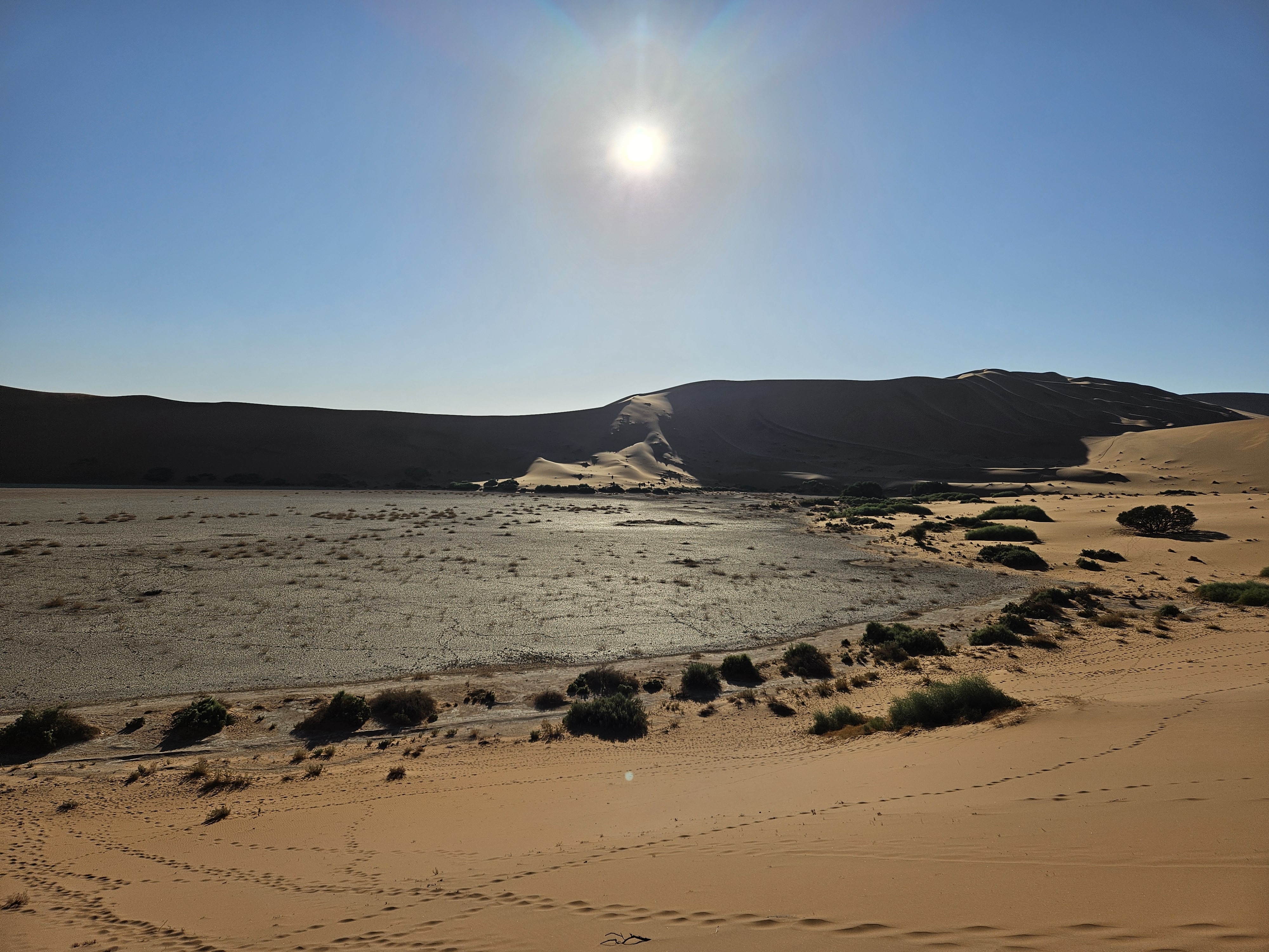 E’ un peccato ripartire ma spesso la transitorietà rende più preziose certe esperienze. E poi bisogna accettare quello che viene quando affidi il timone a un altro. Continuiamo il saliscendi fra le dune, ci addentriamo un po’ nell’entroterra. Qua e là una rada vegetazione punteggia il paesaggio. Avvistiamo alcuni springbok rilassati fra i cespugli.