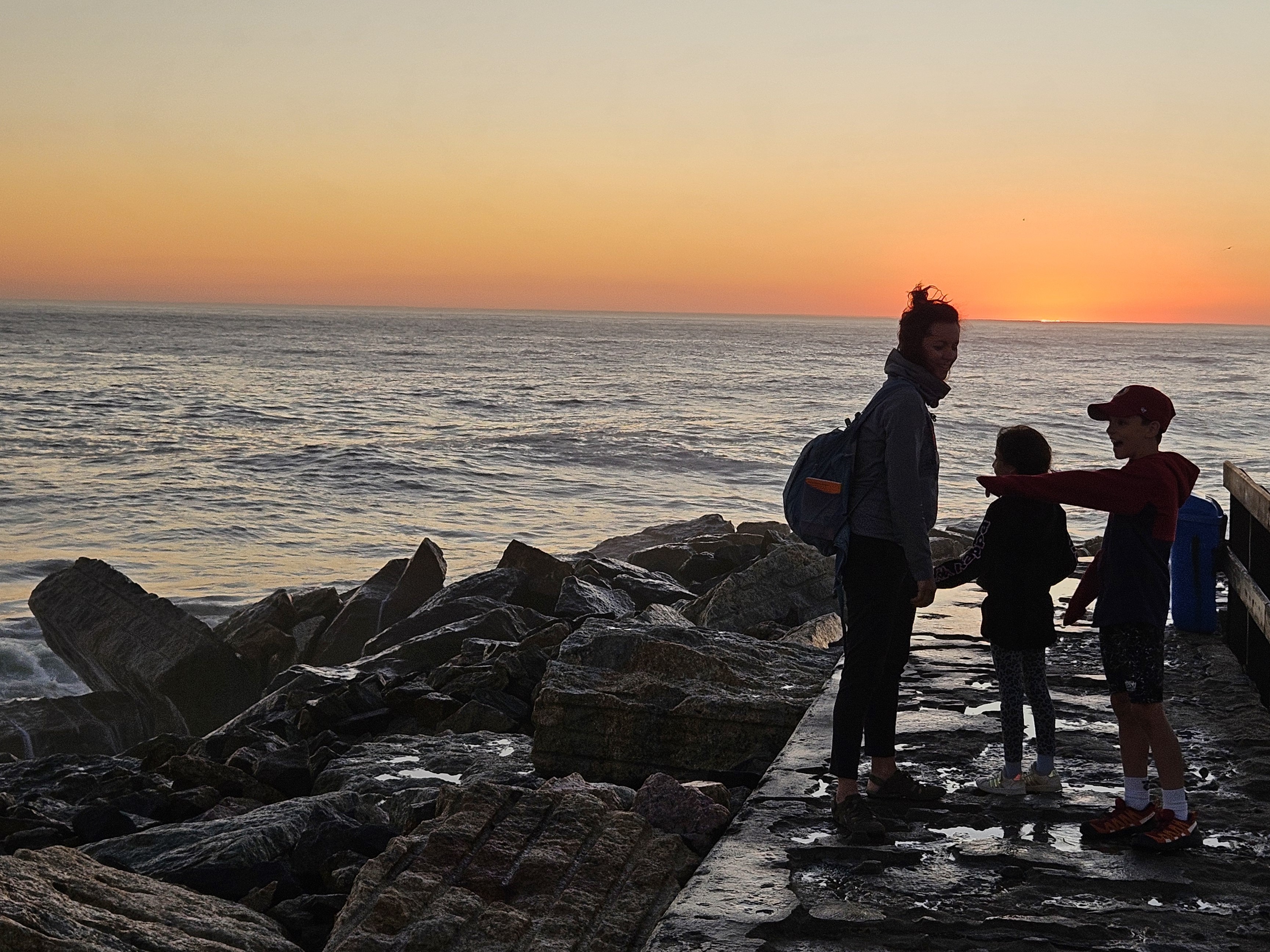 Mangiamo, beviamo, socializziamo un po’ con gli altri turisti, per lo più francesi. Poi smontiamo le tende, avendo cura di non lasciare traccia del nostro passaggio. Scendiamo di nuovo verso la spiaggia, dove notiamo che la striscia percorribile si è ristretta ulteriormente. E in effetti procediamo a passo spedito, probabilmente perché le maree conservano margini di imprevedibilità.